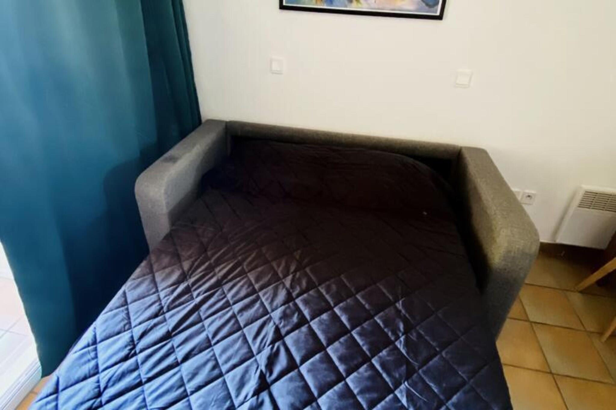 Denne charmerende lejlighed tilbyder et komfortabelt tilflugtssted for op til fem gæster, hvilket gør den til et ideelt valg for familier eller små grupper. Boligen har en lys opholdsstue med sovesofa og trilleseng, et hyggeligt soveværelse med dobbeltseng og en sydvendt overdækket terrasse til afslappende eftermiddage. Vigtige tjenester, herunder sengelinned og et velkomstsæt, er inkluderet for ekstra bekvemmelighed. Ejendommen er kæledyrsvenlig (ekstra gebyrer), og gæsterne har adgang til en fælles swimmingpool og parkeringsfaciliteter. Ejendommen er beliggende i hjertet af en livlig fodgængerlandsby, kun få skridt fra butikker, restauranter og en række rekreative aktiviteter. Udforsk den nærliggende 18-hullers golfbane, nyd familieunderholdning, eller lad børnene have det sjovt på klubber i alderen 3 måneder til 17 år. Områdets højdepunkter omfatter vandcentret Vallée des Loisirs, der tilbyder rutsjebaner, bølgebassiner og raftingoplevelser, alt sammen inden for kort gåafstand. Indvendigt er det halvåbne køkken fuldt udstyret med moderne apparater, perfekt til at tilberede måltider. Lejligheden har også et badeværelse med badekar, et separat toilet og gennemtænkte detaljer såsom en hårtørrer og rigelig opbevaringsplads. Med sin fremragende beliggenhed, kvalitetsfaciliteter og komfortable opsætning sikrer denne ejendom en afslappende og behagelig ferieoplevelse.