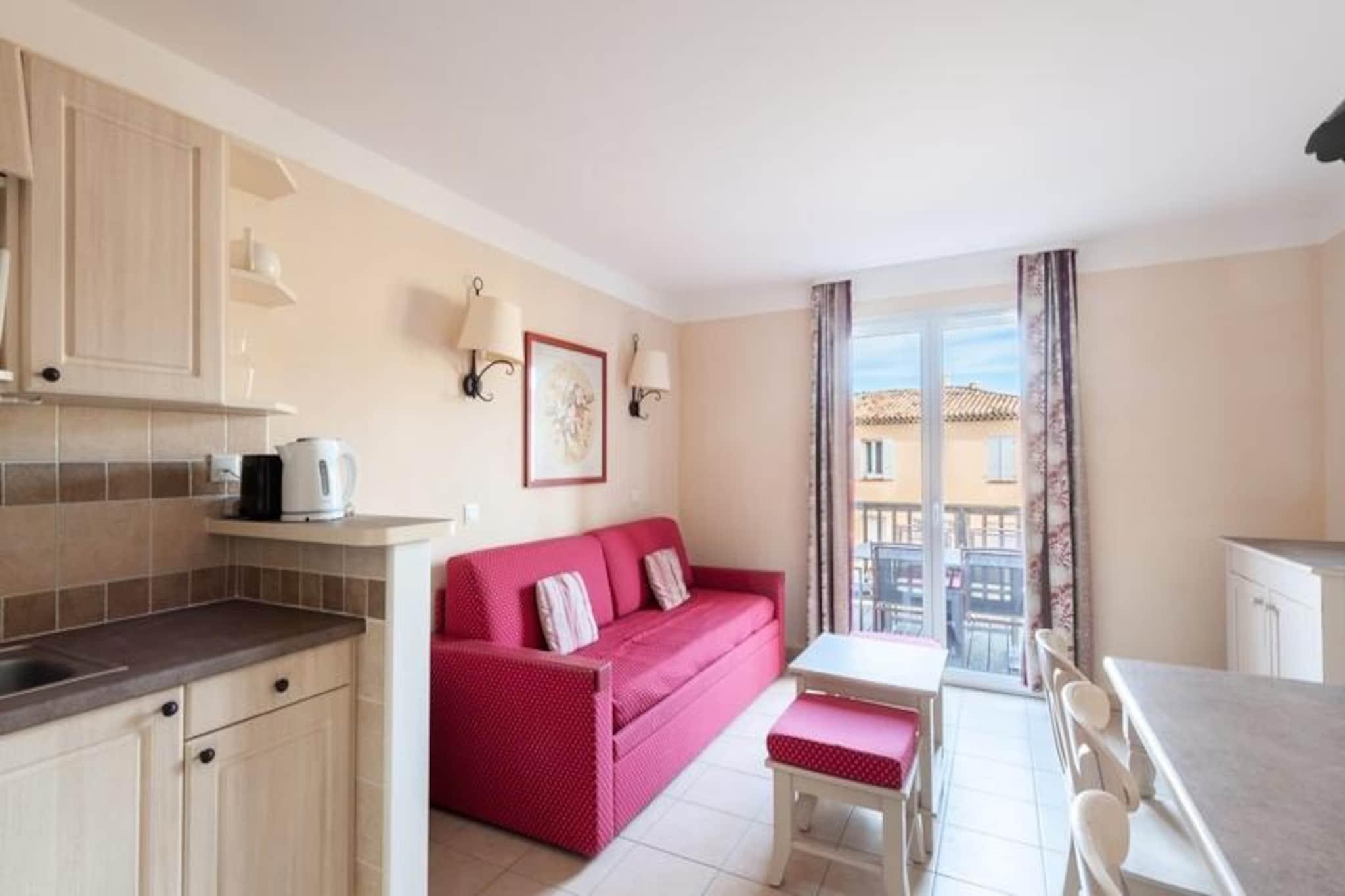 Midt i Provences bølgende landskaber tilbyder dette charmerende feriehus et roligt tilflugtssted på den prestigefyldte ejendom Pont-Royal-en-Provence. Residensen, der strækker sig over 180 hektar, er perfekt placeret til at fremvise den betagende udsigt over Luberon-massivet, der inviterer dig til at fordybe dig i den provencalske landskabs skønhed. Badet i sollys og omgivet af duftende lavendelmarker lover denne destination en ferie fyldt med ro og tidløs charme. Ejendommen har en gennemtænkt planløsning med to hyggelige soveværelser, to moderne badeværelser og en rummelig opholdsstue, der åbner op til en indbydende spiseplads. Det åbne køkken er fuldt udstyret, hvilket gør det nemt at tilberede lækre måltider med friske lokale ingredienser fra nærliggende markeder. Med en privat swimmingpool eksklusivt for Coteaux-gæster og adgang til yderligere pools, herunder en opvarmet bølgepool med rutsjebaner og en vild flod, er der ingen mangel på måder at slappe af og nyde de solrige dage. Uanset om du slapper af på dagsengen eller nyder komforten i dobbelt- og enkeltsengene, er hver eneste detalje blevet tænkt over for at sikre et behageligt ophold. Kun en kort gåtur fra boligen finder man landsbyens centrum med et pulserende udvalg af butikker, restauranter og aktiviteter. Golfentusiaster vil sætte pris på den nære beliggenhed til driving range og 6-hullers golfbane, mens naturelskere kan udforske de maleriske landsbyer på bakketoppe og naturskønne stier i regionen. Gå ikke glip af det lokale marked, hvor du kan nyde provencalsk gastronomi og opdage unikke håndværk. Med sine idylliske omgivelser og exceptionelle faciliteter er denne ejendom din port til hjertet af Provence, hvor uforglemmelige minder venter.