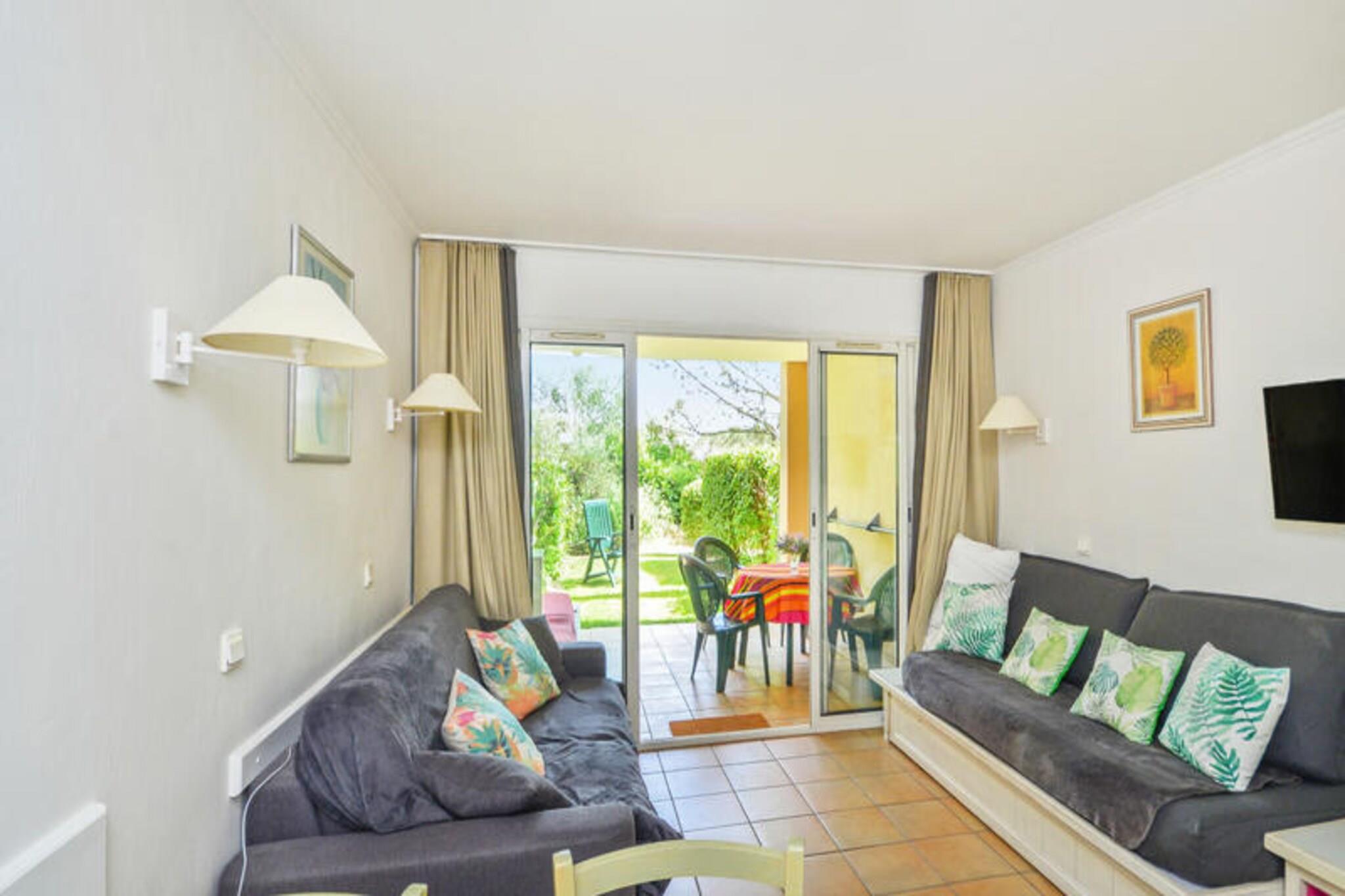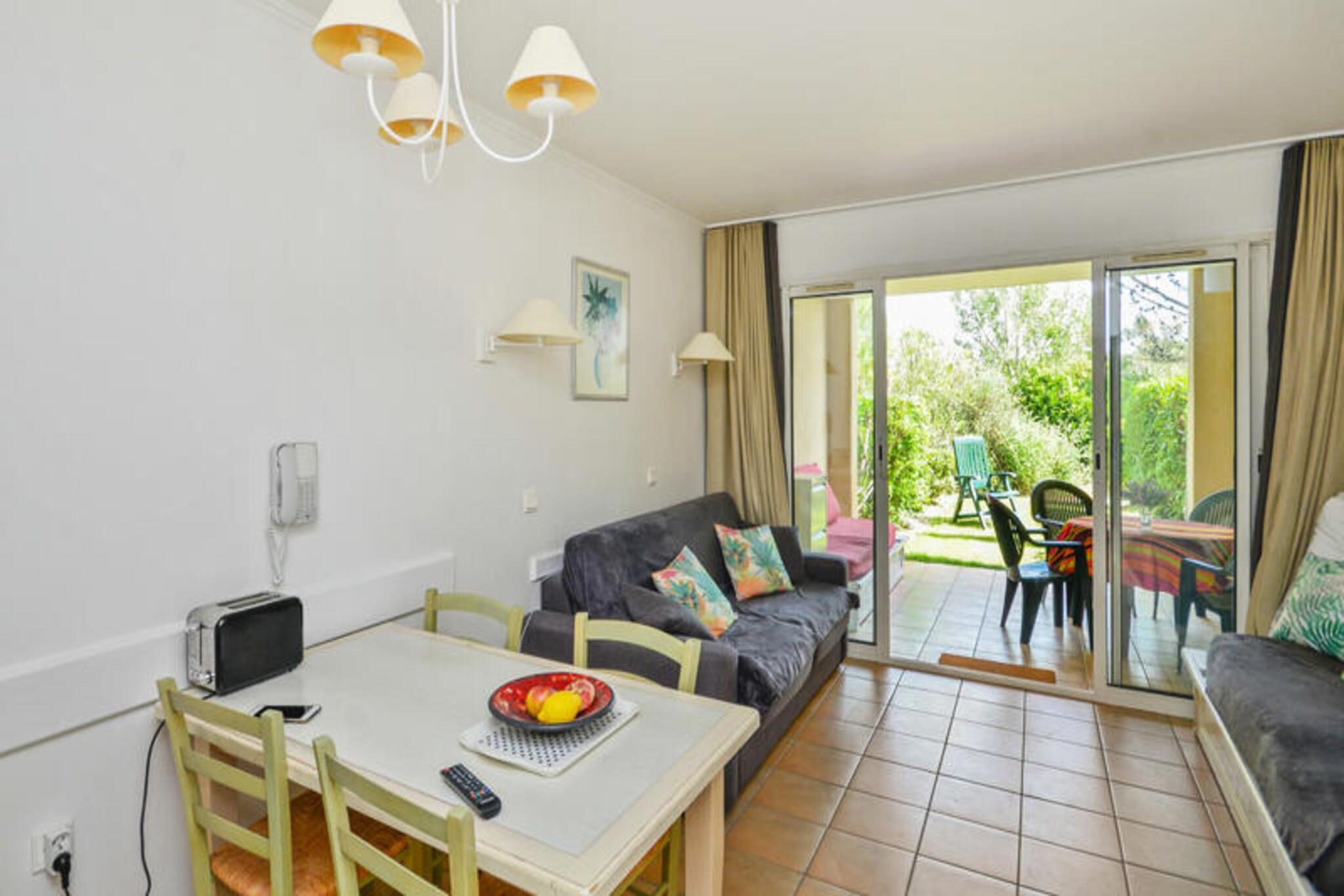 Denne charmerende feriebolig kan rumme op til 6 gæster med en sovesofa (sover 2) og en udtræksseng i opholdsområdet sammen med 2 enkeltkøjesenge i kabinen. Ejendommen er kæledyrsvenlig mod ekstra gebyrer og tilbyder sengetøj inkluderet i lejen. Gæsterne kan anmode om yderligere tjenester såsom daglig skift af sengetøj og rengøring mod et ekstra gebyr. En obligatorisk slutrengøring er også påkrævet. Parkering er tilgængelig på besøgende parkeringspladsen for dem uden en privat plads, og et depositum kræves ved check-in. Beliggende i hjertet af en fodgængerlandsby er boligen omgivet af en række aktiviteter, herunder en 18-hullers golfbane, familievenlig underholdning og en børneklub for alderen 3 til 17 år. Vallée des Loisirs har et vandområde med rutsjebaner, et bølgebassin og kunstig riverrafting. Landsbyen ligger inden for et stort 180 ha område og byder på butikker, restauranter og en afslappende atmosfære kun kort afstand fra Aix-en-Provence og Avignon. Lejligheden indeholder et fuldt udstyret køkken, en åben opholdsstue og et badeværelse med bruser og toilet. Gæsterne kan også nyde en privat terrasse udstyret med havemøbler. Yderligere faciliteter som internetadgang, betaling af turistskat og valgfri rengøring er tilgængelige for nemheds skyld, hvilket gør det til et ideelt sted for en afslappet og behagelig ferie.