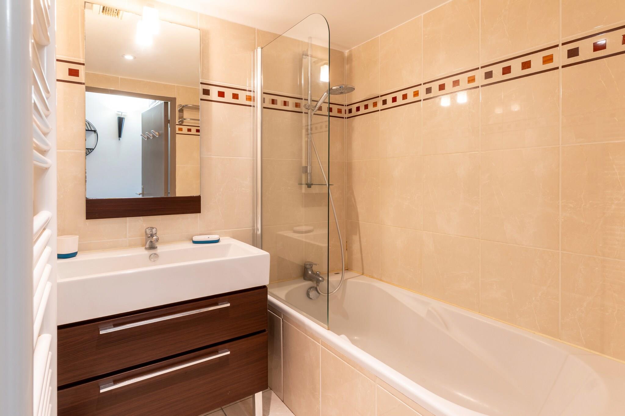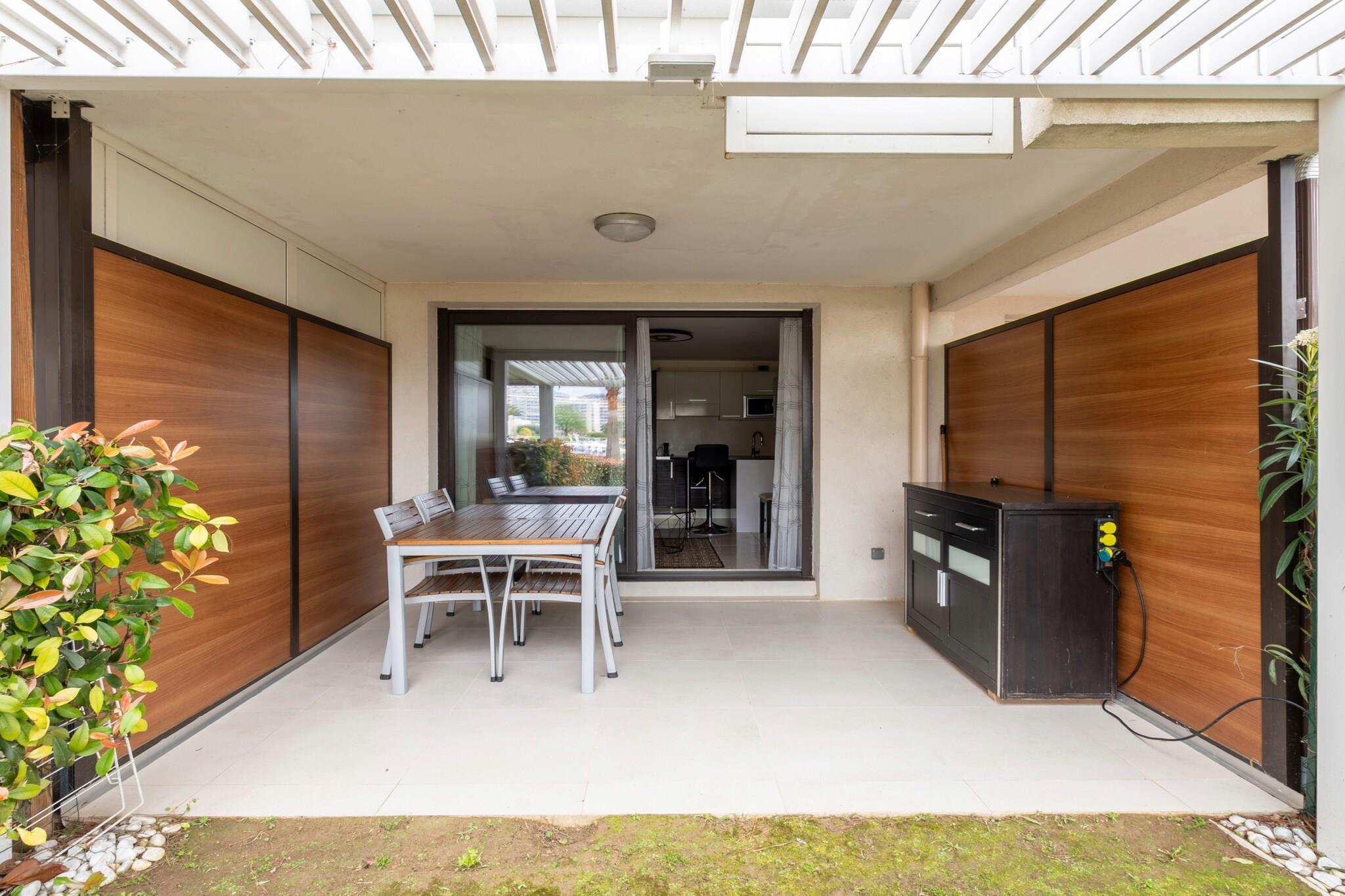 Dette hyggelige feriehus beliggende nær den franske riviera er ideelt for par eller små familier og tilbyder et soveværelse og et opholdsrum, der er egnet til op til fire gæster. Ejendommen har en privat terrasse med havemøbler og adgang til en fælles have og marina, hvilket giver en afslappende kystatmosfære. Aircondition og elektrisk opvarmning sikrer komfort året rundt. Gæsterne kan nyde en fælles opvarmet swimmingpool, og der er udendørs parkering på stedet uden ekstra omkostninger. Selvom kæledyr ikke er tilladt, er der Wi-Fi og et tv til rådighed for et behageligt ophold. Lejligheden er perfekt beliggende i et familievenligt kystområde i Mandelieu-la-Napoule, kun 950 meter fra en sandstrand og kun 300 meter fra den populære restaurant "Le Lagon". Der ligger et supermarked 2 kilometer væk, hvilket giver nem adgang til daglige fornødenheder. Beliggenheden nær havet gør den ideel for strandelskere og dem, der ønsker at udforske den franske rivieras kystskønhed. Selvom specifikke offentlige transportmuligheder ikke er detaljeret, gør den centrale beliggenhed det nemt og behageligt at gå til lokale attraktioner og spisesteder. Lejligheden har et fuldt udstyret åbent køkken med elektrisk udstyr, køleskab, mikrobølgeovn, opvaskemaskine, kaffemaskine, brødrister, elkedel og komplet køkkenudstyr. Yderligere faciliteter inkluderer vaskemaskine, strygejern, elevatoradgang og eget badeværelse, hvilket gør den til en veludstyret base for et afslappende ophold ved kysten.