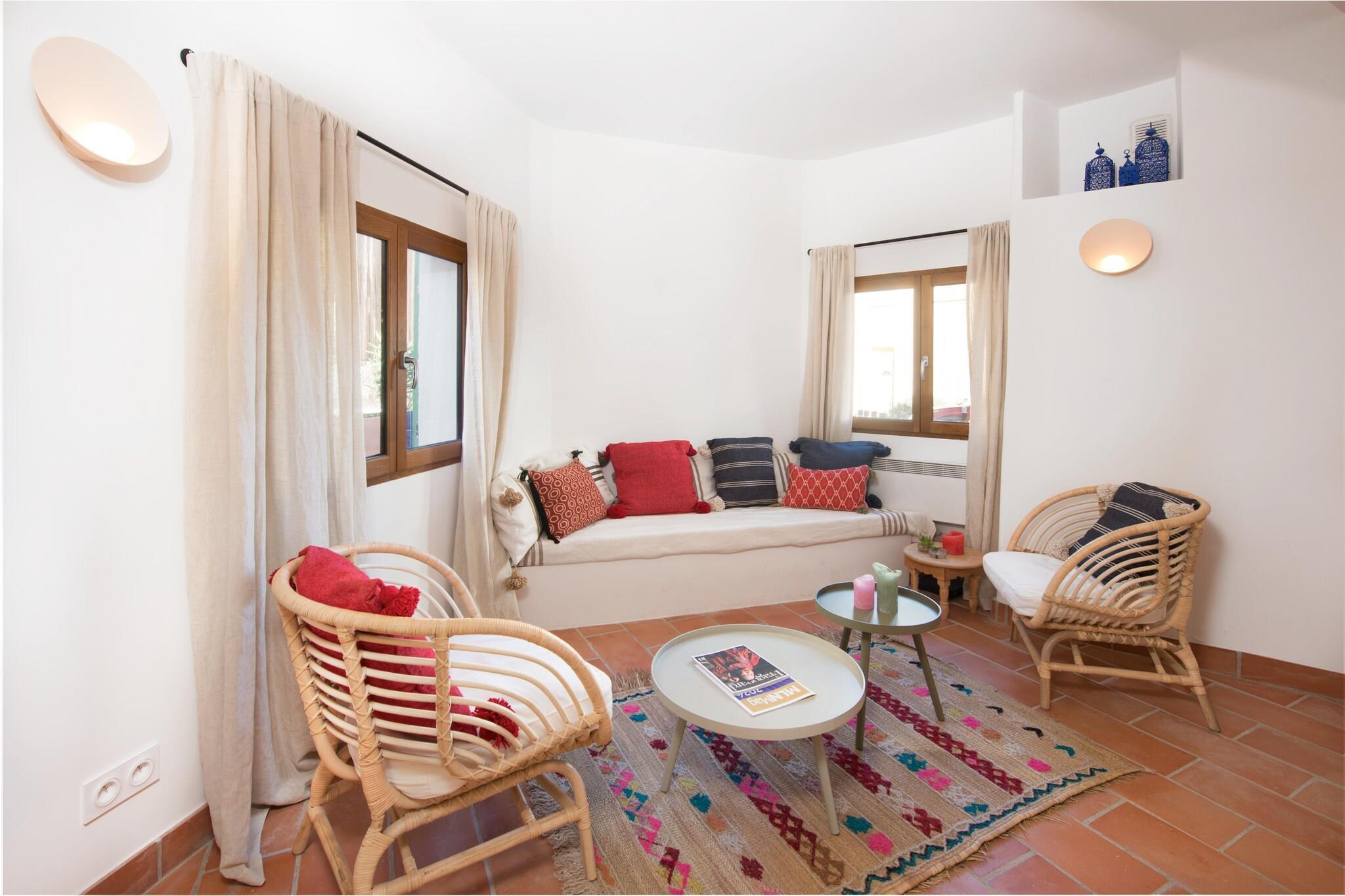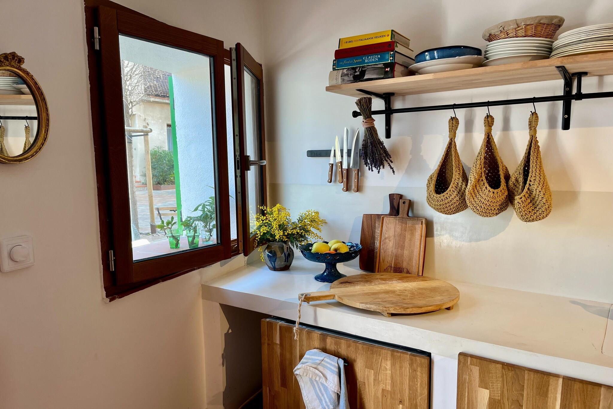 Der er tale om en unik bolig, bestående af 2 gamle fiskerhuse, der blev totalrenoveret i 2023 med al den ønskede moderne komfort. Den autentiske karakter er bevaret, især i stueetagen med køkken og stue. Du har følelsen af at bo midt i landsbyen med terrassen foran huset for enden af denne blindgyde overfor slottet La Napoule. Det er ved siden af den stille jernbanelinje fra Cannes, togene kører ikke efter kl. 22 om aftenen - bageriet er på den anden side af stationen, hvor du kan gå under. Restauranter, strand, butikker: alt er inden for gåafstand. Ideel også for familier med små børn, da stranden ligger 50 meter væk. En virkelig unik beliggenhed! Det store soveværelse med badeværelse ligger på første sal, de 2 andre soveværelser er på 2. sal og deler badeværelse. Der er fans i alle soveværelser. Parkeringsmuligheden er også tilgængelig her. Huset er ikke særlig velegnet til småbørn på grund af trapperne.