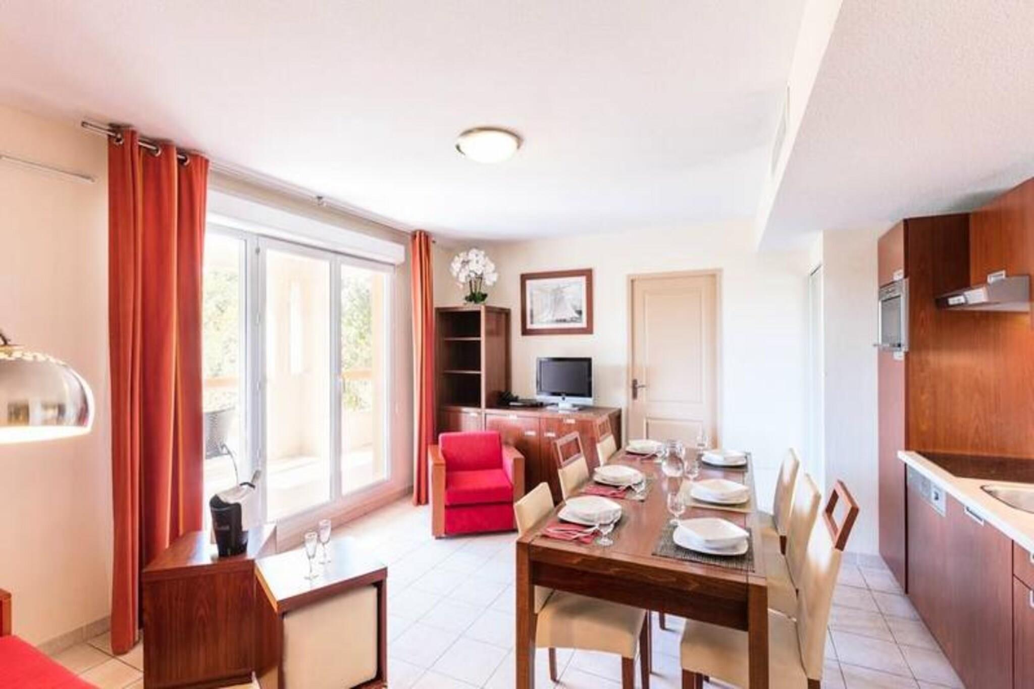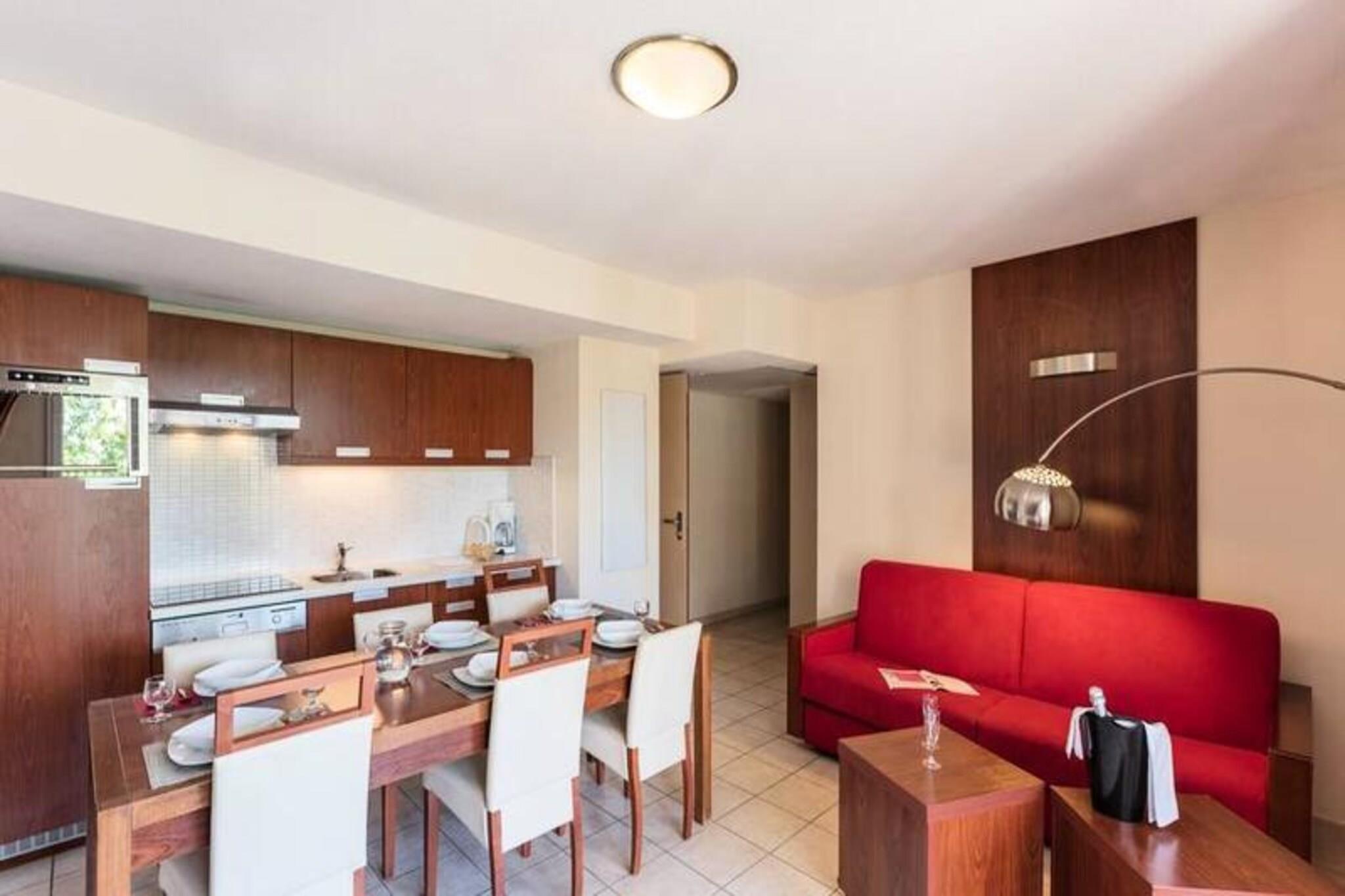 Denne charmerende lejlighed i resort-stil tilbyder et afslappende ophold med moderne bekvemmeligheder. Det har en hyggelig stue med en sovesofa (sover 2) og et separat sovev?relse med to enkeltsenge. Lejligheden har et badev?relse og et separat toilet for ekstra bekvemmelighed. Den rummelige terrasse er udstyret med havem?bler, perfekt til at nyde de solrige omgivelser. K?ledyr er velkomne mod et ekstra gebyr, og ejendommen er familievenlig med tilg?ngelige babys?t. Wifi er tilg?ngeligt i receptionen med en 30-minutters dagpenge pr. voksen. Ejendommen ligger kun f? minutter fra sandstrandene i Mandelieu og La Napoule, og kun 1,5 km fra feriestedets centrum, hvor du kan finde butikker, caf?er og restauranter. G?sterne kan nyde nem adgang til den ber?mte Golf Old Course Cannes Mandelieu og Croisette i Cannes. N?rliggende attraktioner omfatter ogs? et pulserende lokalt marked, der tilbyder friske r?varer og regionale specialiteter, hvilket g?r denne beliggenhed ideel for dem, der ?nsker at udforske den lokale kultur og k?kken. Lejligheden har et fuldt udstyret k?kken, s? du nemt kan tilberede m?ltider. Yderligere faciliteter inkluderer en 600 m² udend?rs swimmingpool (s?sonbestemt), en b?rnepool, vandstr?ler og en solariumterrasse med liggestole. Til afslapning er der et wellness-omr?de med sauna, boblebad og hydromassagebruser. Sportsentusiaster kan nyde tennisbanen og multisportsbanen, mens yngre g?ster vil s?tte pris p? legeomr?det.