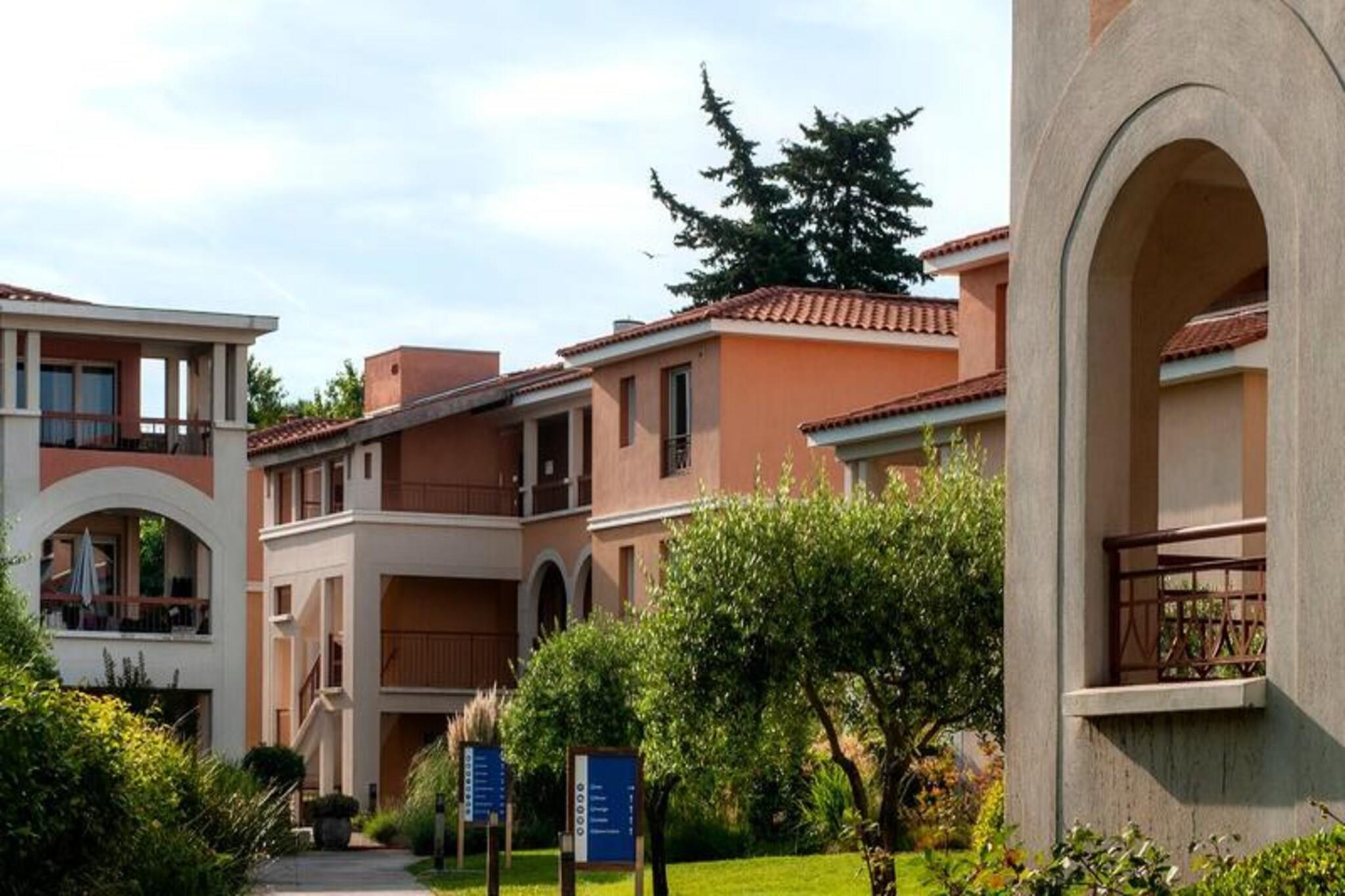 Denne hyggelige studiolejlighed er beliggende i Residence "La Frégate" i Plage Sud-distriktet, kun 250 meter fra havet og 200 meter fra stranden. Lejligheden har et boligareal på 32 m², en dobbelt sovesofa (140 cm), et fladskærms-tv og en sydvendt terrasse. En kahyt med dobbeltseng (140 cm) giver ekstra komfort. Køkkenet er fuldt udstyret med opvaskemaskine, 4 keramiske kogeplader, elektrisk kaffemaskine og mikroovn. Lejligheden har også aircondition, vaskemaskine og Wi-Fi (mod ekstra gebyr). Ejendommen ligger i gåafstand fra butikker, en købmand og et indkøbscenter (400 meter), samt restauranter og sandstranden "Plage Sud". Nærliggende attraktioner omfatter Flamingo Casino (2,5 km), Seaquarium (2,5 km) og Aigues Mortes (10 km). For udendørsentusiaster er naturreservatet Camargue ideel til vandreture. Lystbådehavnen ligger kun 20 meter væk, og sejlerskolen ligger 3 km fra lejligheden. Tennisbaner og ridestalde er også i nærheden. Parkering er tilgængelig, og lejlighedens nøgleafhentning er hos Interhome-bureauet i Port Camargue, 2 km derfra. Slutrengøring og turistskat er inkluderet i prisen.