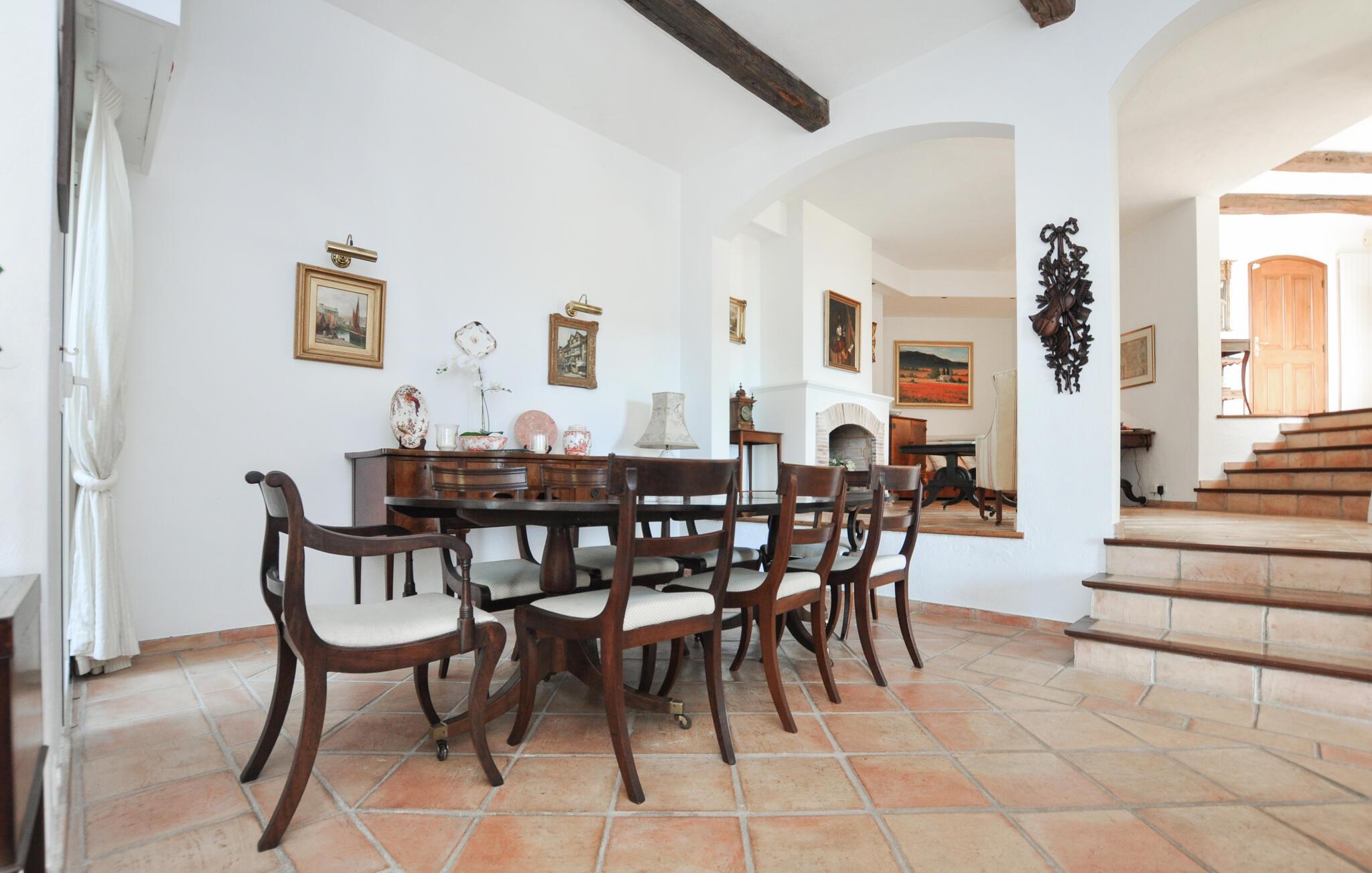 Dette unikke hus med store, lyse rum er det perfekte sted for romantik, sol og ferie. Denne pragtfulde bolig er meget stilfuldt og antikt indrettet, hvor du finder nogle hyggelige retreater, hvor du kan slappe af med en fængslende roman eller spille brætspil sammen på det store spisebord. Klinkegulvene, der løber gennem hele huset, giver dig de kølige temperaturer, du har brug for i varme sommertemperaturer. Dette ædle, vidunderlige hus tilbyder dig også et stort område, hvor du kan lade blikket vandre over det omkringliggende bakkelandskab og vandet.