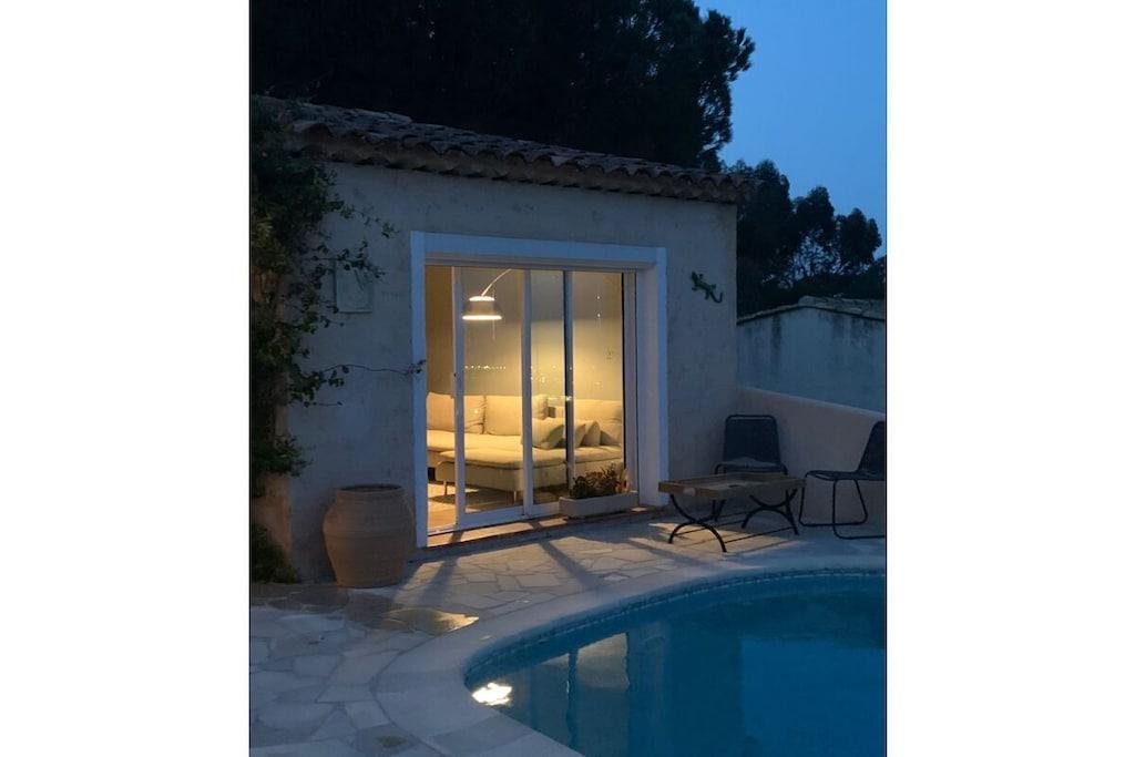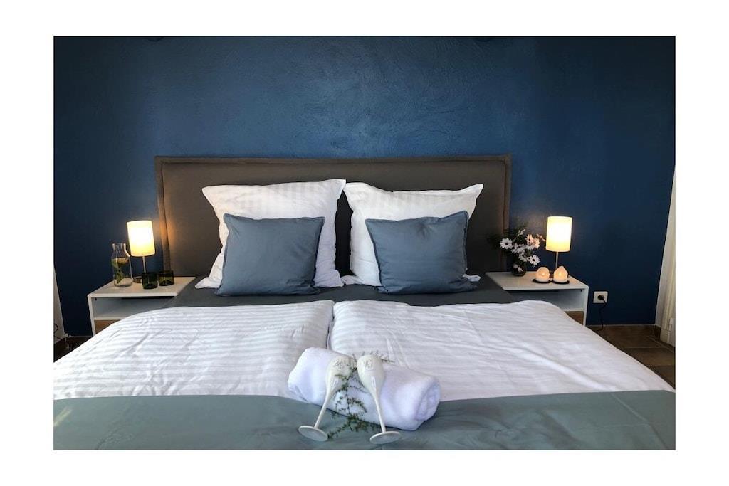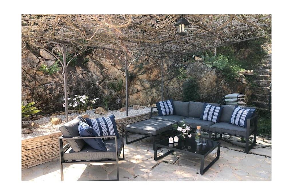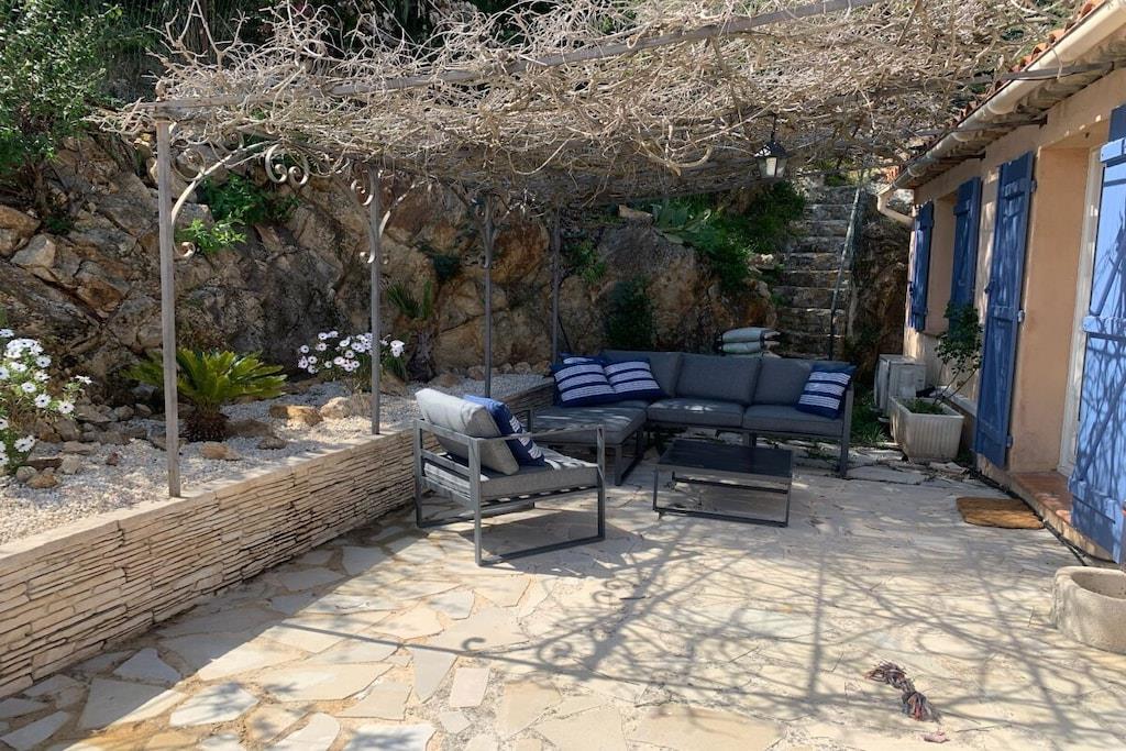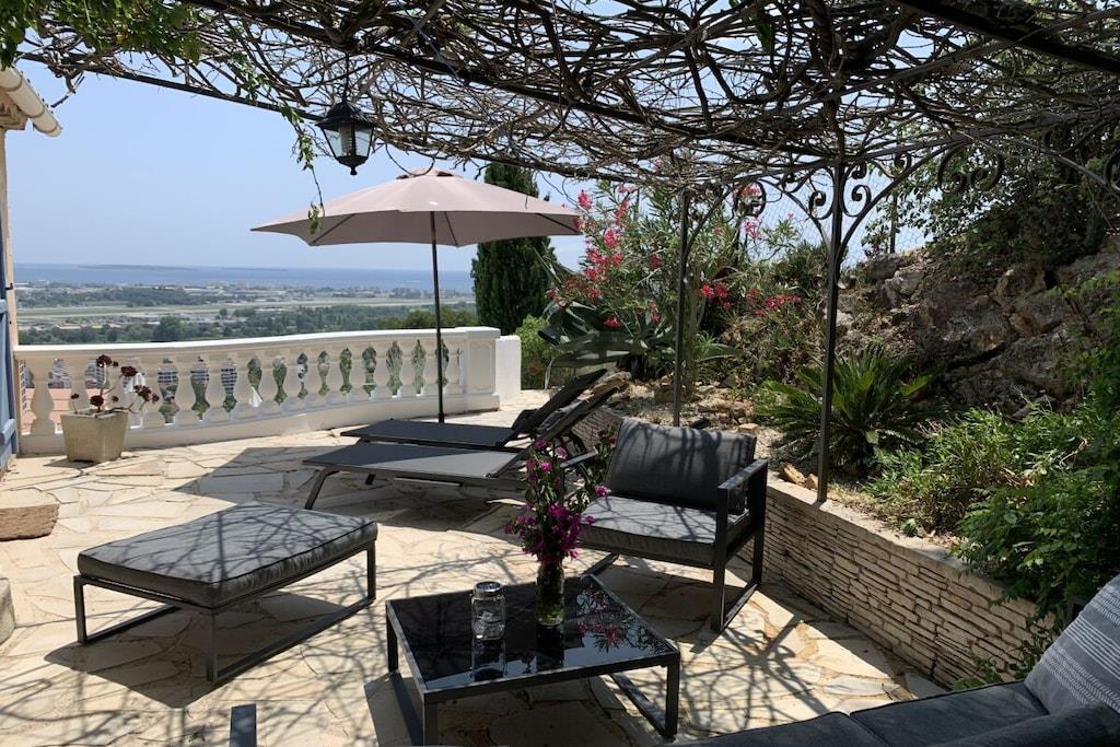 Villa La Roche er en absolut perle på Frankrigs sydkyst, lige i nærheden af Cannes. Uanset om du slapper af i stuen, nyder franske delikatesser i den indendørs eller udendørs spiseplads, eller slapper af på den øverste terrasse, vil dit blik altid være trukket mod infinity-poolen og den smukke udsigt over havet og Cannes-bugten. Det rummelige hus er ideelt til en stor familie, to par og deres børn, eller en generationsrejse med bedstemor og bedstefar. Huset er perfekt beliggende i bakkerne i Mandelieu-La Napoule. Det er fem minutters kørsel eller 15 minutters gang fra landsbyen Capitou, hvor du kan købe din baguette fra bageriet, nyde en dejlig frokost eller middag på Bistro Joseph, eller blot købe et par nødvendige varer i supermarkedet eller på apoteket. Yderligere fem minutters kørsel, og du er på stranden, hvor du kan vælge mellem et stort udvalg af restauranter nær stranden eller lige på stranden. Du har et stort udvalg af højdepunkter i nærheden, herunder St. Tropez, Monaco, Cannes og Nice. Alternativt kan du bare slappe af i huset, svømme, læse eller bare se din Netflix-serie på smart-tv'et. Der er også smukke vandreture oven for huset i skoven/naturreservatet.