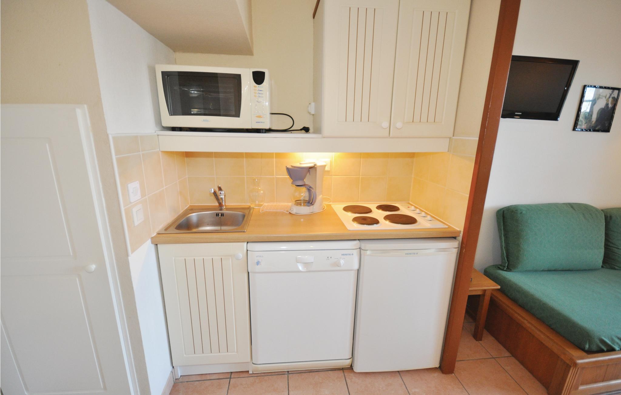 Brug jeres ferielejlighed som base for afslappende dage i landlige omgivelser. Sæt jer til rette i den enkle opholdsstue med et lille tekøkken, spisebord og siddepladser. Brug sofaen til afslappende aftener, eller åbn dørene til terrassen for at lukke frisk luft ind.