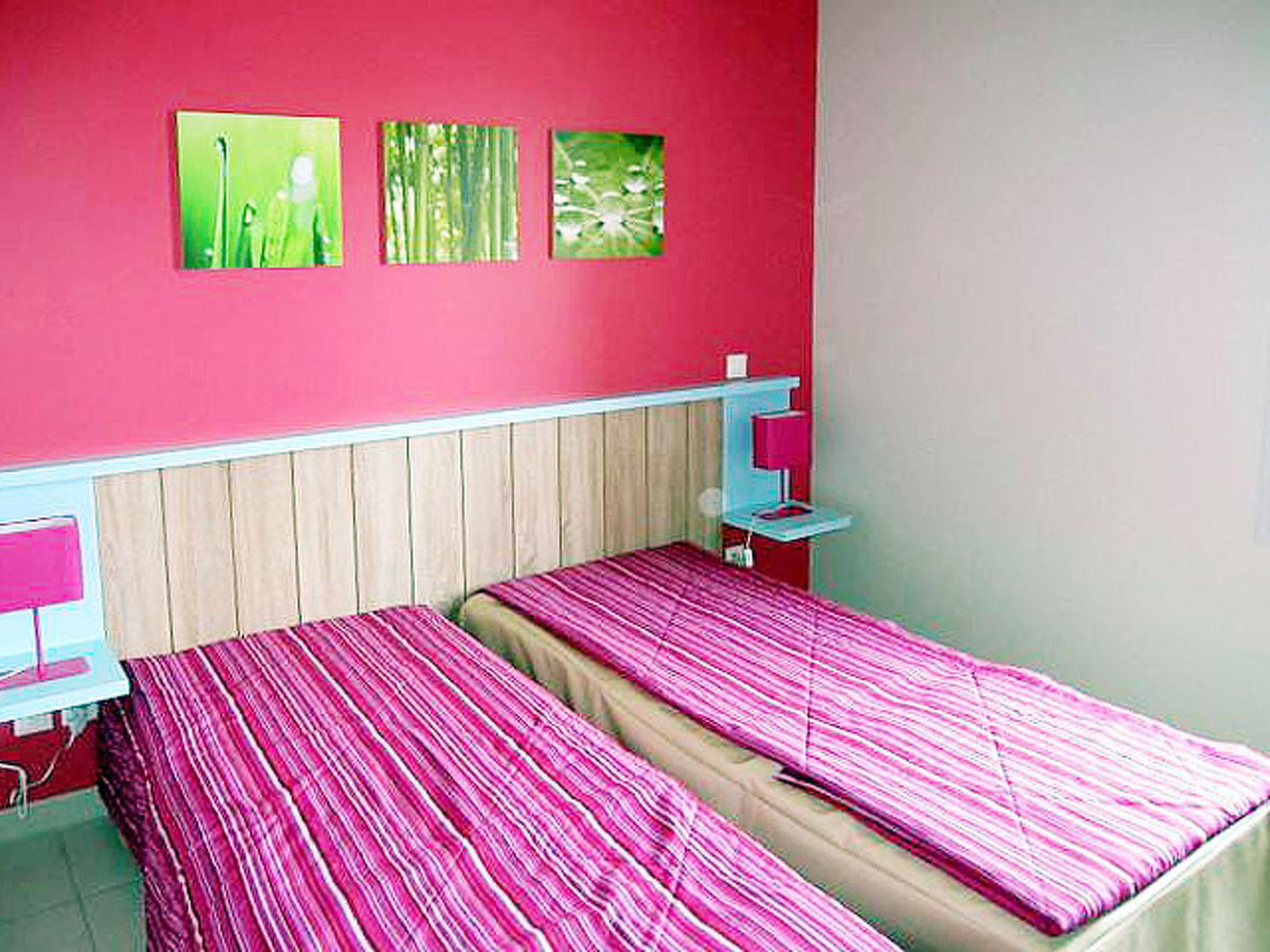 "La Grenadine", 3-room terraced house 43 m2 on 2 levels. Practical and modern furnishings: living/sleeping room with 1 double sofabed, dining table, TV can be hired and air conditioning. Kitchenette (dishwasher, 4 ceramic glass hob hotplates, toaster, kettle, microwave, freezer, electric coffee machine). Shower/WC. Upper floor: 1 room with 1 french bed. 1 room with 2 beds (80 cm). Sep. WC. Electric heating. Terrace roofed. Terrace furniture. Facilities: children's high chair, baby cot (extra). Internet (WiFi, extra). Please note: non-smokers only. Maximum 2 pets/ dogs allowed. Smoke alarm.