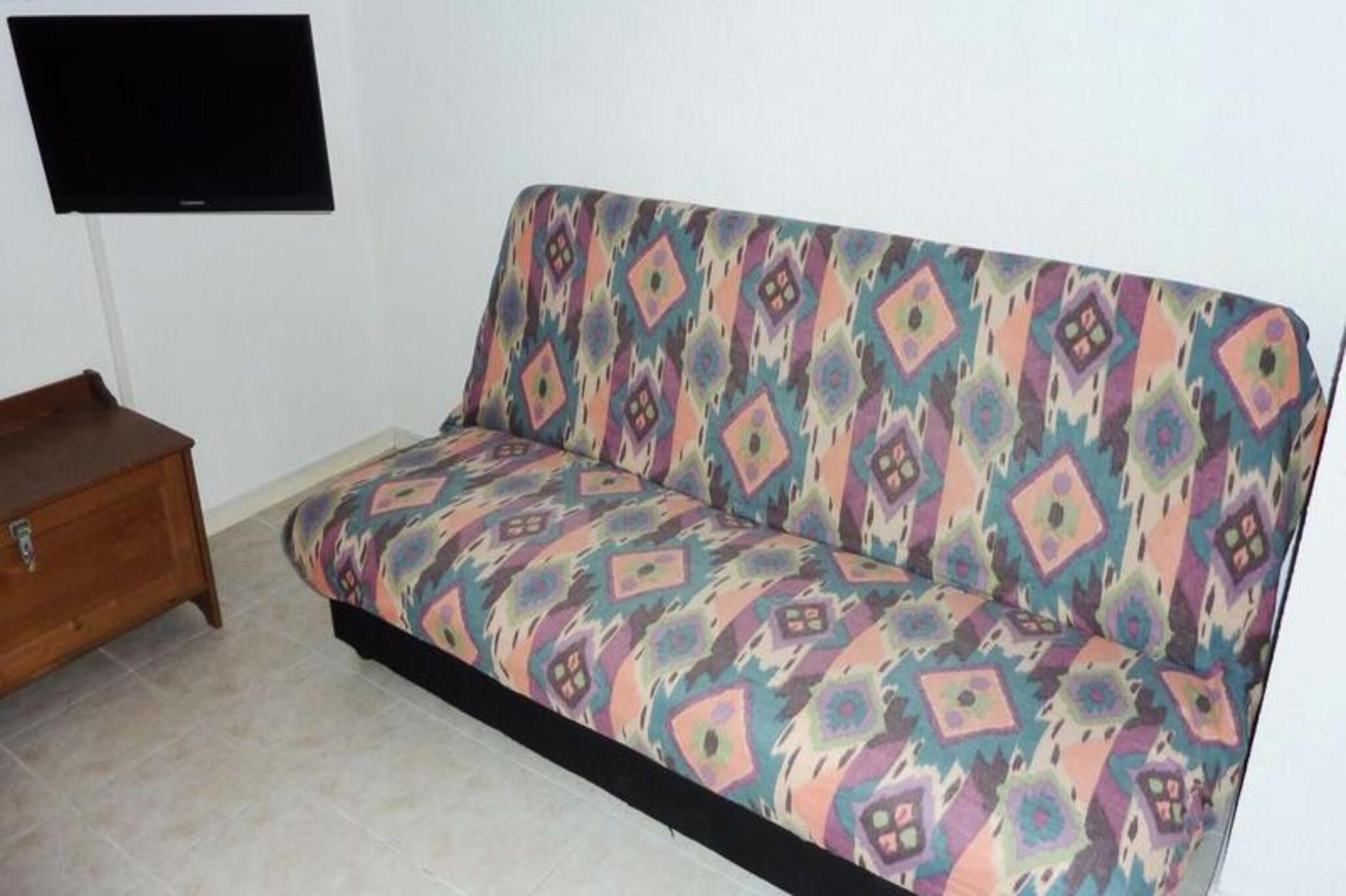Denne hyggelige 2-v?relses mezzaninlejlighed ligger i en indhegnet bolig og kan rumme op til 6 g?ster. Det har en stue med tv, spisebord og stole samt et sovev?relse med en stor seng. Mezzaninomr?det byder p? endnu en stor seng, en sovesofa og et tv. Badev?relset har bruser og separat toilet, og lejligheden har terrasse med havem?bler. En parkeringsplads er ogs? tilg?ngelig. K?ledyr er ikke tilladt. Boligen er ideelt placeret i n?rheden af ??forskellige attraktioner, caf?er og markeder. G?sterne kan udforske de lokale butikker, restauranter og nyde den pulserende atmosf?re i omr?det. Stranden er ogs? inden for g?afstand og tilbyder et perfekt sted til afslapning og fritidsaktiviteter. Lejligheden har ?bent k?kken udstyret med k?leskab/fryser, keramisk kogeplade, mikroovn, elektrisk kaffemaskine og vaskemaskine. Internetadgang er tilg?ngelig mod et ekstra gebyr. Boligen tilbyder ogs? en swimmingpool (?ben fra midten af ??juni til midten af ??september). Yderligere tjenester som reng?ring, lagner, h?ndkl?der og en barneseng er ikke inkluderet i lejeprisen.