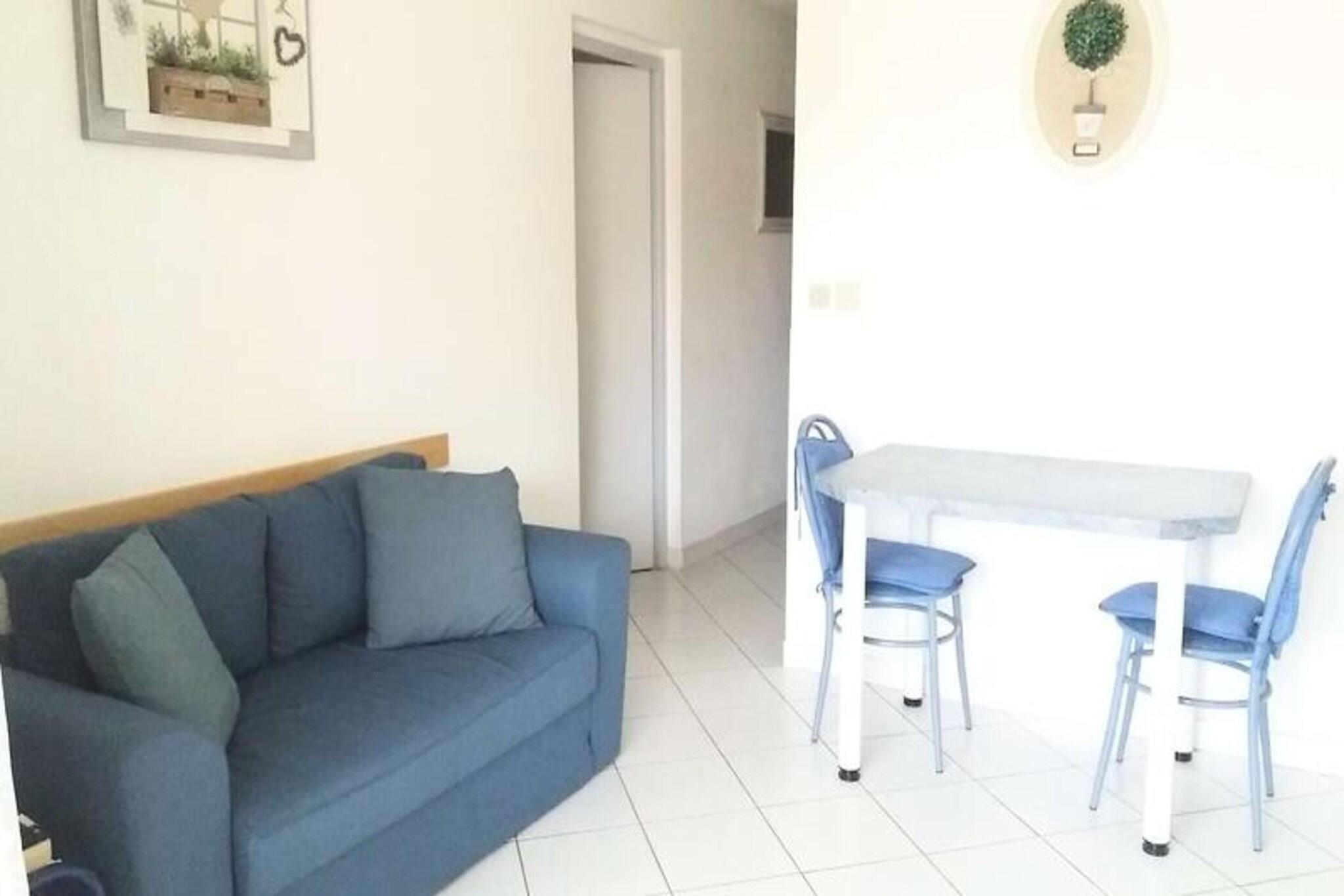 Denne hyggelige ferielejlighed er designet til et behageligt ophold med plads til op til fire personer. Stuen er udstyret med en sofa, bord, stole, tv og aircondition for din bekvemmelighed. Lejligheden indeholder to soveværelser: et med dobbeltseng og kommode, og det andet med to køjesenge og en kommode. Ejendommen er kæledyrsfri for at opretholde et fredeligt miljø. Beliggende i en bolig med gode faciliteter, finder du en swimmingpool (tilgængelig fra midten af ??juni til midten af ??september), en tennisbane og en petanquebane. Det omkringliggende område byder på nem adgang til butikker og restauranter, hvilket gør det til en førsteklasses beliggenhed for både afslapning og udforskning. Du vil være i stand til at nyde alle de nærliggende attraktioner og fritidsaktiviteter. Inde i lejligheden er det åbne køkken fuldt udstyret med keramisk kogeplade, mikroovn, køleskab/fryser, opvaskemaskine og elektrisk kaffemaskine. Badeværelset har bruser, håndvask og vaskemaskine, og der er separat toilet. En terrasse med fortelt og havemøbler giver en perfekt plads til udendørs afslapning. Privat parkering er tilgængelig for gæster.