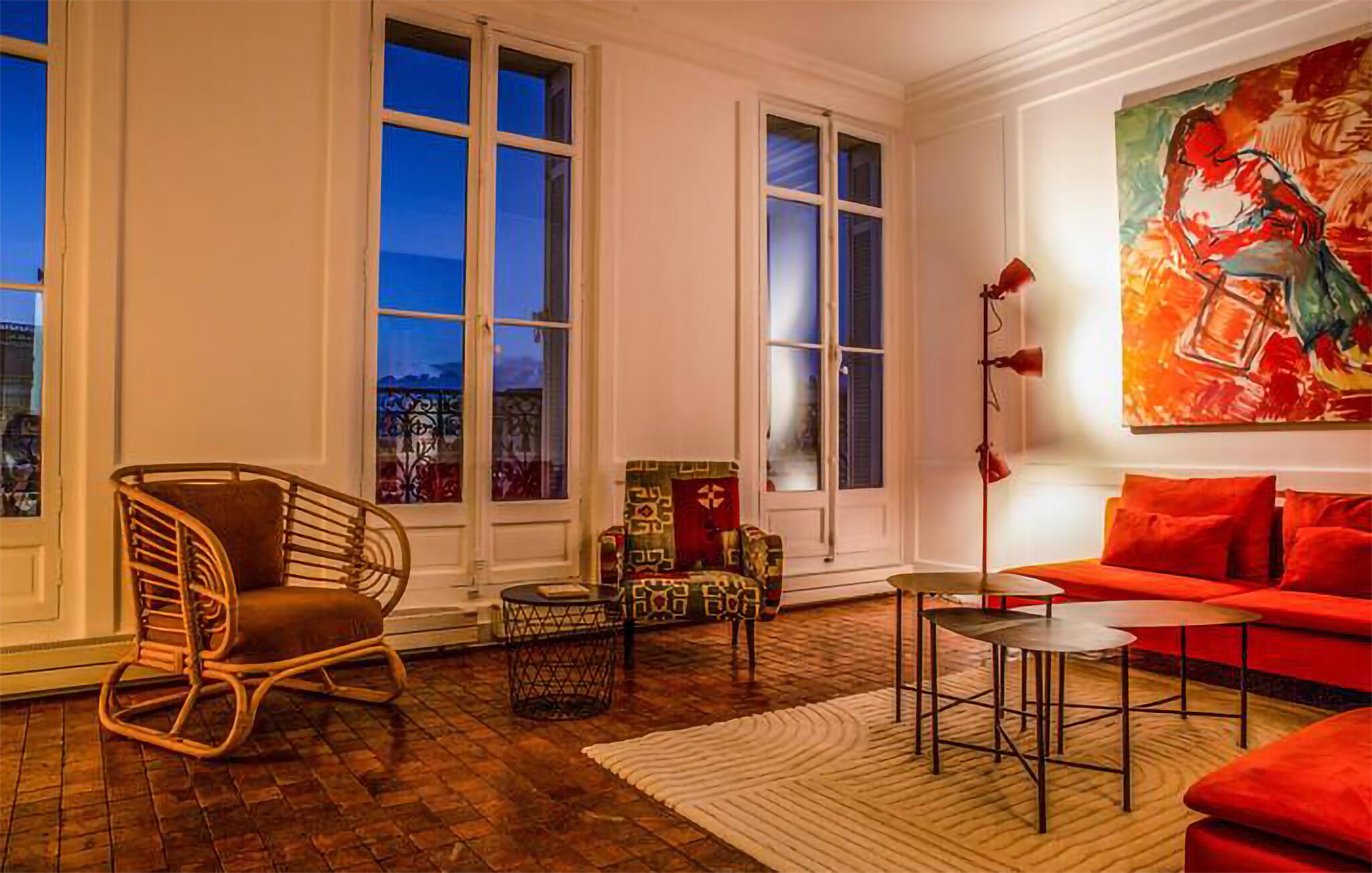 Denne rummelige og udsøgt møblerede lejlighed ligger i en klassisk bygning fra 1800-tallet og tilbyder jer et stilfuldt midlertidigt hjem i hjertet af Marseille. Uanset om I er med venner eller familie, kan I nyde privatlivets fred takket være den gennemtænkte planløsning, og takket være høje franske vinduer fra gulv til loft kan I nyde masser af naturligt lys og en fortryllende udsigt over byen. Skab kulinariske lækkerier, spis i en unik atmosfære, og snak over et glas vin i den elegante stue, der er dekoreret med originale malerier.
