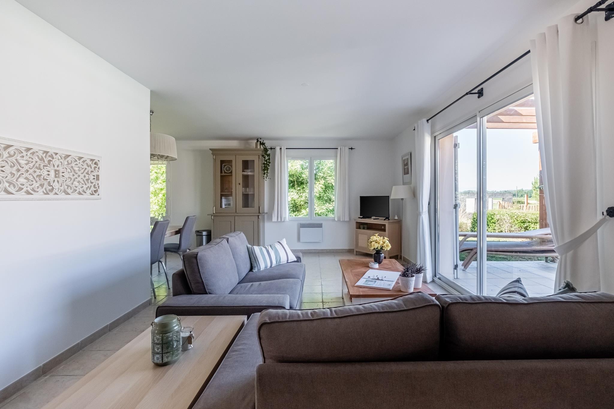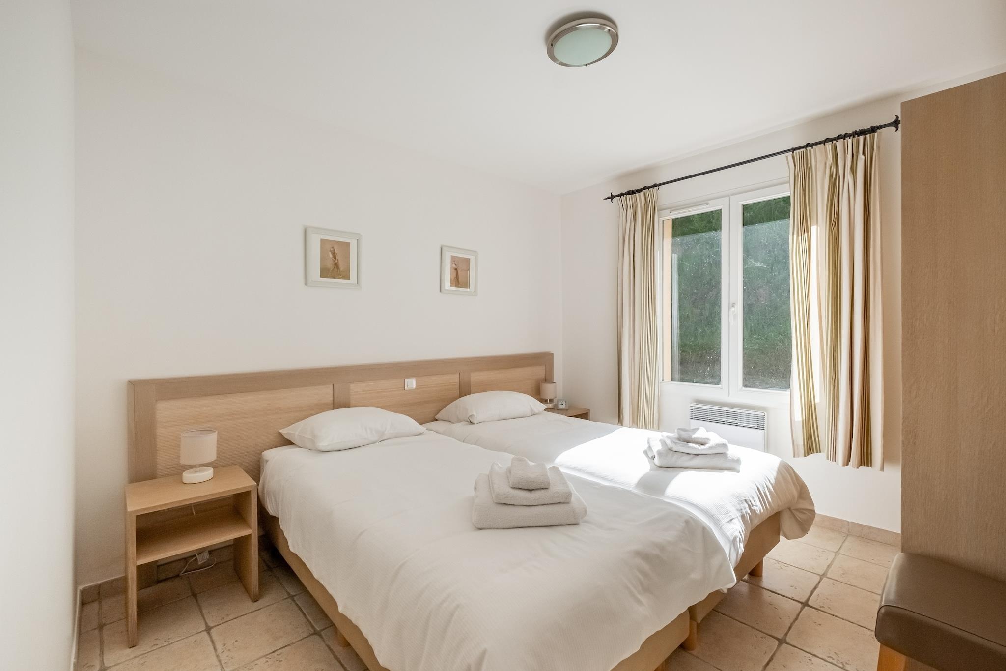 Stueetage: (åbent køkken(kogeplade(glaskeramisk), elkedel, emhætte, kaffemaskine, ovn, mikrobølgeovn, opvaskemaskine , køle-fryseskab), stue / spisestue(Fjernsyn(parabol, Hollandske TV-kanaler), spisebord(4 personer), sofahjørne), soveværelse(dobbeltseng eller 2 enkeltsenge Senge(90 x 200 cm)), soveværelse(dobbeltseng eller 2 enkeltsenge Senge(90 x 200 cm)), badeværelse(badekar med bruser, håndvask), toilet(toilet), pulterkammer(tørretumbler, vaskemaskine)) sofastue(deles med andre gæster), carport, terrasse(privat), swimmingpool(deles med andre gæster, 17 x 12 m.)