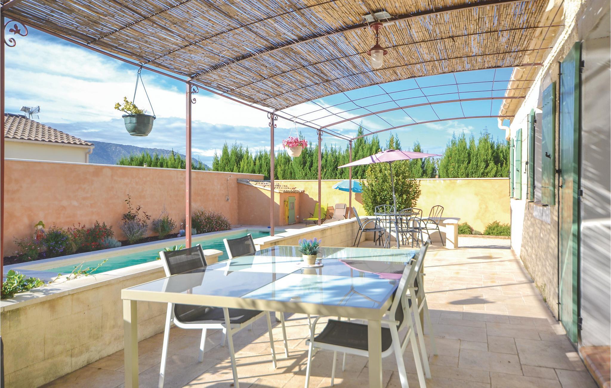 Smukt feriehus med privat pool, beliggende i hjertet af Provence, 12 km fra Gordes. Huset er meget fredeligt, og tæt på den smukke landsby Maubec. Det har en have, en petanquebane, en stor terrasse og en saltvandspool. Huset er ideelt beliggende nær Coustellet, hvor Lavendelmuseet ligger, og har en smuk udsigt over Monts de Vaucluse. Huset er moderne og har et veludstyret køkken med amerikansk køleskab. Det kan rumme op til 9 personer og har 4 smukke soveværelser. Stuen er klimatiseret og har et stort 3D-tv (152cm), en Wii-konsol og et bordtennisbord, og desuden er her en grill med plancha-stegeplade. På mindre end 20 km er I i Ménerbes, Bonnieux, Roussillon, Lacoste, nogle af de smukkeste landsbyer i Frankrig. Ikke langt fra L'Isle sur la Sorgue, kendt for sine mange butikker og antikvitetsforretninger og vandkanaler. Maubec vil inspirere jer! Det er en lille landsby med et slot, og omgivet af vinstokke. Murene omkring huset er beskyttende mod at andre kigger ind til jer. Markedet i Coustellet finder sted hver søndag morgen og byder på de bedste frugter og grøntsager, vin og ost. Huset har en garage.