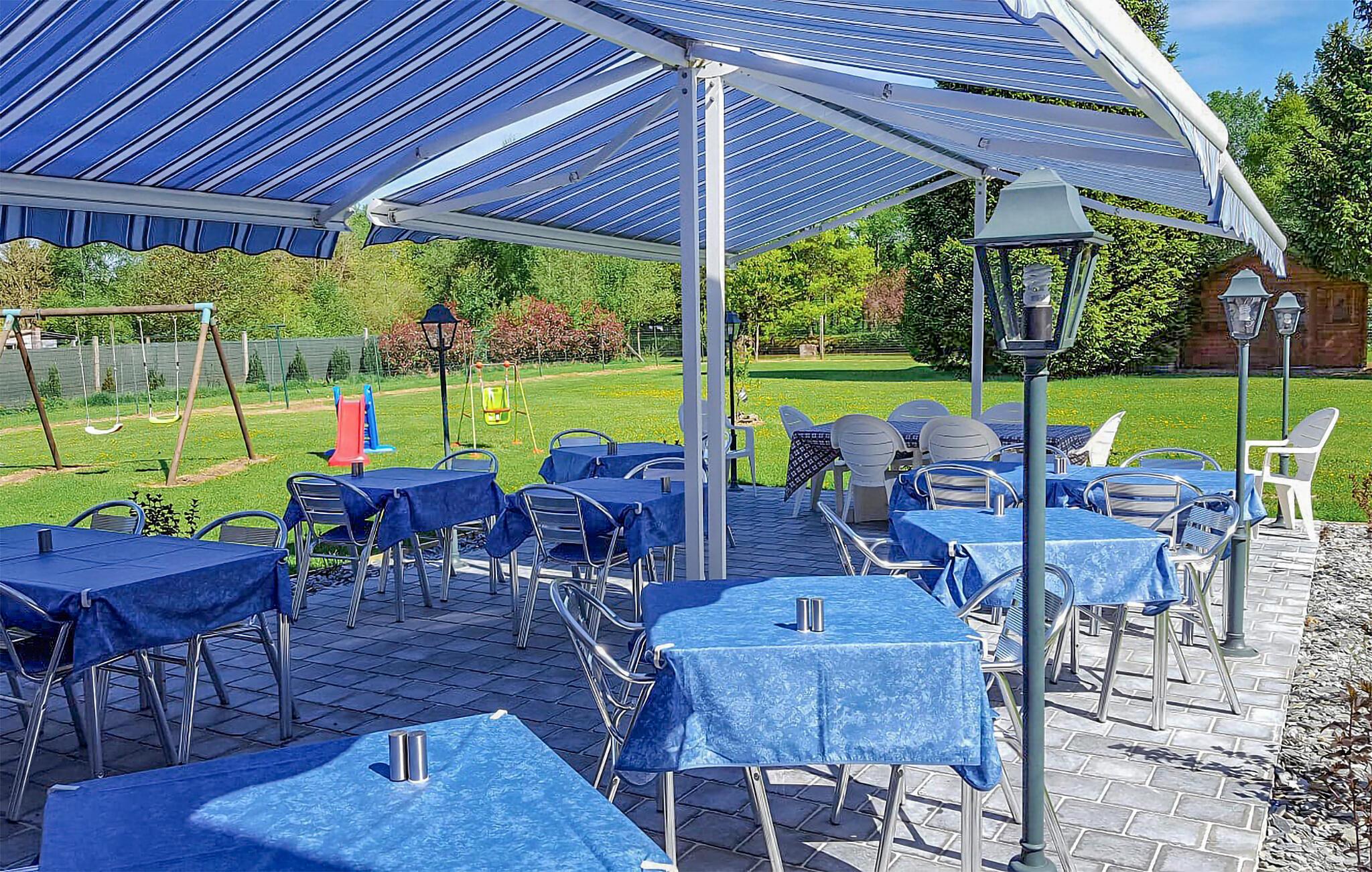 Udenfor kan I nyde solen i den store park med terrasse, mens den hyggelige bar med billard, bordfodbold og dart indbyder til hyggelige dueller. Der er mange gode legeredskaber til børnene, og omgivelserne er så fredelige og rolige, at I som familie virkelig kan hygge jer sammen og nyde mange timers kvalitetstid i fredelige omgivelser.