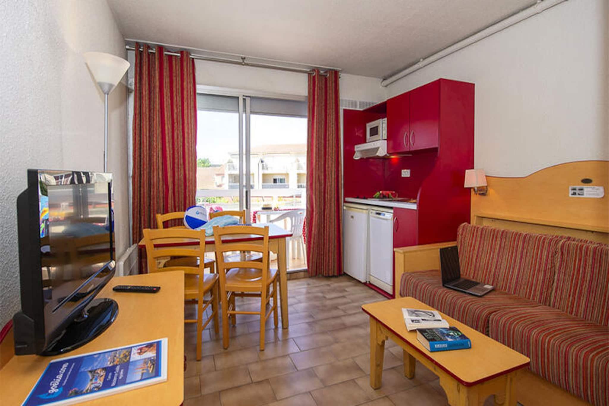 Nyd den fredfyldte charme i Carnon, hvor Goélia Aguylène*** Residence tilbyder en rolig oase kun 10 minutter fra den pulserende by Montpellier. Beliggende mellem den maleriske lystbådehavn og en glitrende swimmingpool er denne residens et paradis for både afslapning og eventyrlystne. Med sandstranden kun 100 meter væk og lokale butikker en kort gåtur på 400 meter, er alt hvad du behøver inden for rækkevidde. Residensen har omhyggeligt designede studiolejligheder med plads til 2 til 4 gæster, hver med en privat balkon eller terrasse, hvoraf mange har en fantastisk udsigt over poolen eller lystbådehavnen. Indenfor finder du en hyggelig stue med en sovesofa, en alkove med køjesenge og et fuldt udstyret tekøkken til at tilberede dine yndlingsmåltider. Moderne faciliteter såsom WiFi, tv og valgfrie babysæt sikrer et behageligt ophold for familier og par. Den store udendørs pool og solterrassen inviterer dig til at slappe af under middelhavssolen, mens den nærliggende strand tilbyder uendelige muligheder for vandsport som sejlads, kitesurfing og jetski. Carnons livlige lystbådehavn ligger kun få skridt væk, hvor du kan nyde bådture eller spise på charmerende restauranter ved vandet. I sommermånederne sejler en gratis shuttlebåd i nærheden, hvilket gør dine udflugter endnu mere behagelige. Uanset om du søger afslapning ved poolen, spændende vandale eller kulturelle udflugter til Montpellier, er Goélia Aguylène*** Residence den perfekte base for en uforglemmelig ferie. Lad den blide havbrise og den varme middelhavsatmosfære skabe minder, du vil værdsætte for evigt.