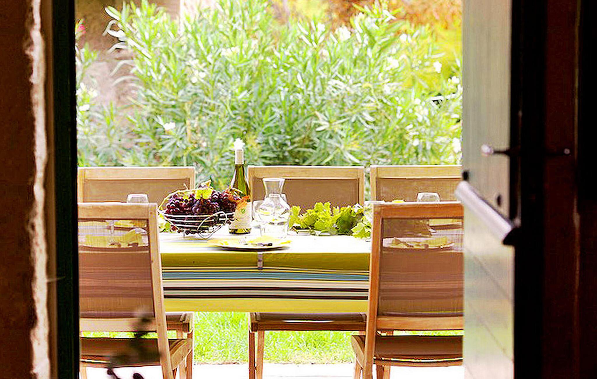 Provencalsk bondegård med privat pool i hjertet af Alpilles, ideel til ferie med familie eller venner. Denne traditionelle bondegård er blevet nænsomt restaureret for at skabe et afslappende miljø, hvor du kan nyde din ferie. Den rummelige ejendom byder på fem generøse soveværelser; tre suiter med aircondition i hovedbygningen og yderligere to soveværelser, som er tilgængelige via en ekstern trappe til venstre side af stuehuset. Udenfor er de brolagte terrasser foret med hundrede år gamle vinstokke, der giver skygge for det varme sommersolskin. Der er en privat swimmingpool på 10m x 5m omgivet af smukt velplejede haver. Særlig opmærksomhed er påkrævet for yngre børn vedrørende Canal des Alpilles, som går nord for lejemålet og er let tilgængelig. Denne vandingskanal er fyldt med vand hele sommeren med en høj strømningshastighed. Stuehuset er beliggende på landet i Maussane-les-Alpilles, ca. 2 km fra de nærmeste butikker. Kom og nyd et feriehus i Bouches-du-Rhône i Provence.