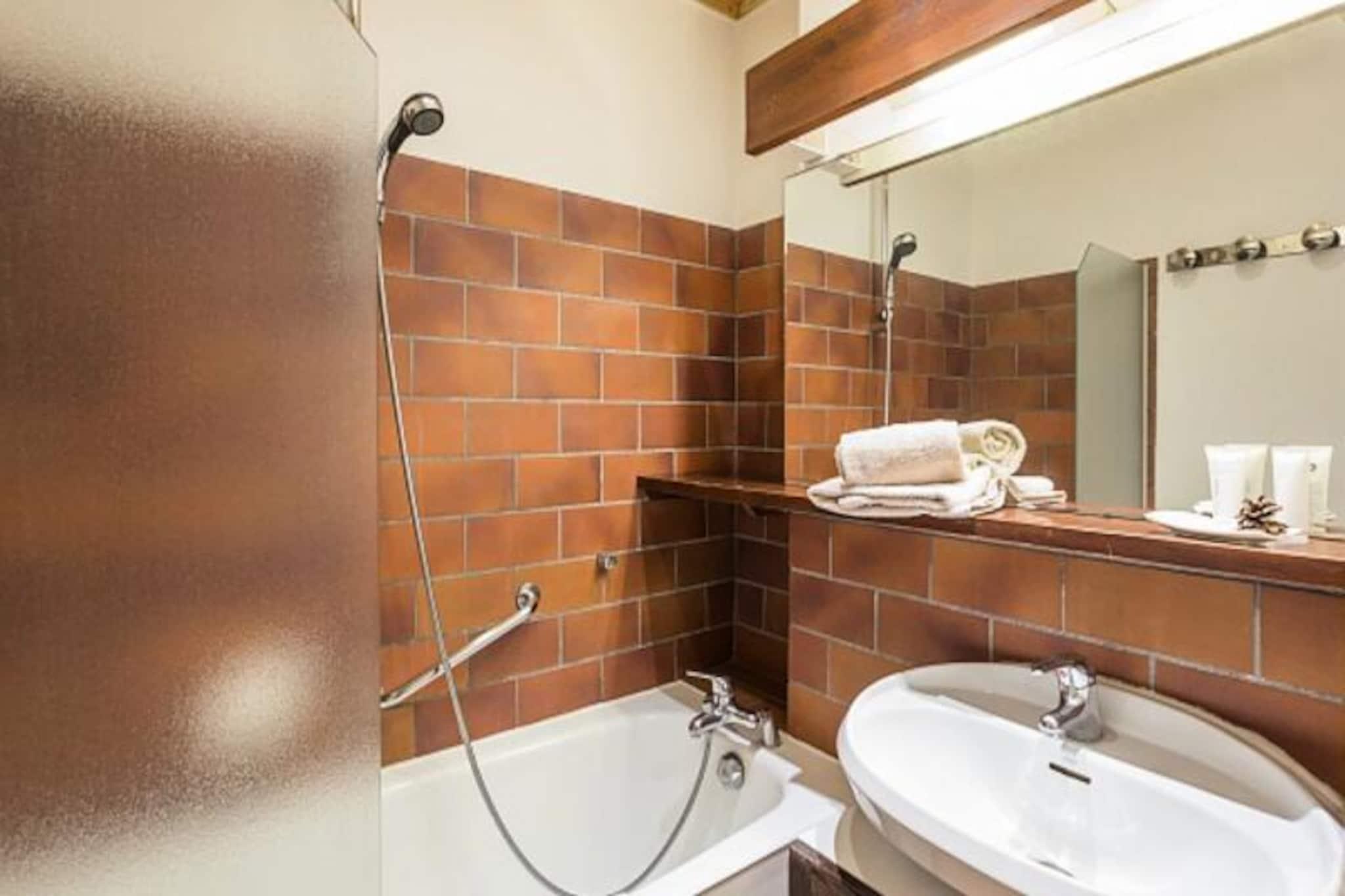 Denne hyggelige hytte kan rumme op til 8 gæster med en rummelig stue med en dobbelt sovesofa, samt to sæt 2x2 køjesenge og en sovesofa til to. Det er perfekt til familier eller grupper, der ønsker at nyde en ferie i bjergene. Kæledyr er velkomne med forudgående godkendelse, og hytten er familievenlig og tilbyder et babysæt efter anmodning. Sengelinned og håndklæder er til rådighed for din bekvemmelighed. Denne ejendom ligger kun 4 km fra Megèves livlige landsbycentrum og tilbyder nem adgang til lokale caféer, markeder og butikker. Det omkringliggende område er perfekt til udendørsentusiaster, med muligheder for skiløb, vandreture og mountainbike i nærheden. Uanset om du foretrækker at udforske byen eller slappe af i hytten, er den pulserende atmosfære i Megève aldrig langt væk. Hytten har et veludstyret køkken, perfekt til at tilberede måltider derhjemme. Badeværelset og separat toilet giver komfort og bekvemmelighed for alle gæster. Yderligere faciliteter omfatter en indendørs opvarmet swimmingpool med panoramavinduer, et wellness-område med to saunaer og et fitnessrum, hvor du kan holde dig aktiv. Overdækket parkering og TV er også inkluderet.