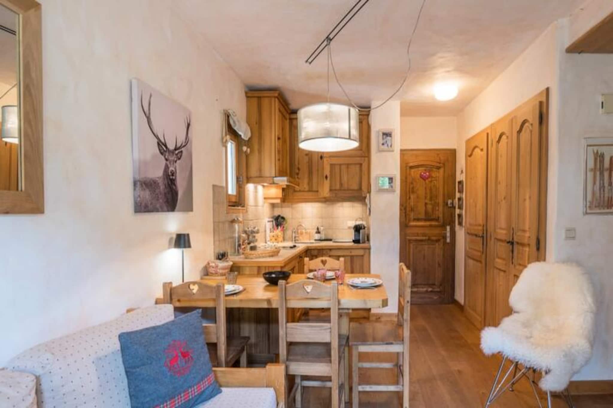 Midt i Megèves fortryllende skønhed tilbyder dette hyggelige 22 m² store studie på Plateau du Calvaire en fredfyldt oase med betagende udsigt over grantræer, charmerende hytter og den ikoniske Rochebrune Olympic-skibakke. Kun 300 meter fra gågaden er dette alpine tilflugtssted perfekt til par eller små familier, der søger en rolig, men bekvemt beliggende oase. \n\nTræd ind i et gennemtænkt designet rum, der kombinerer komfort og praktisk anvendelighed. Studiet har et hovedrum med en blød 180x200 cm sovesofa og en køjeseng, hvilket gør det ideelt til to voksne og et barn. Spiseområdet og det veludstyrede køkken, komplet med moderne apparater såsom opvaskemaskine, ovn og kaffemaskine, sikrer, at du har alt, hvad du behøver for et dejligt ophold. En privat balkon inviterer dig til at slappe af med en fantastisk udsigt over bjergene, mens faciliteter som vaskemaskine, tørretumbler og skiboks bidrager til bekvemmeligheden. \n\nBeliggenheden er uovertruffen, med Megèves pulserende gågade kun en kort gåtur væk. Udforsk charmerende butikker, nyd lokal mad på kendte restauranter som Amore Hibou og Sauvageonne, eller nyd den nærliggende skøjtebane. For skientusiaster tilbyder ejendommen ski-in/ski-out-adgang, når sneforholdene tillader det, og der ligger et skibusstoppested kun 200 meter væk. Om sommeren giver Chemin du Calvaire direkte adgang til Mont d'Arbois, perfekt til vandreture og naturture. \n\nUanset om du er her for vintersport eller sommereventyr, tilbyder dette studie en problemfri blanding af komfort, bekvemmelighed og alpin charme. Med privat parkeringskælder og skræddersyede tjenester som private kokke eller lokale aktivitetsarrangementer lover dit ophold at være lige så ubesværet, som det er mindeværdigt.