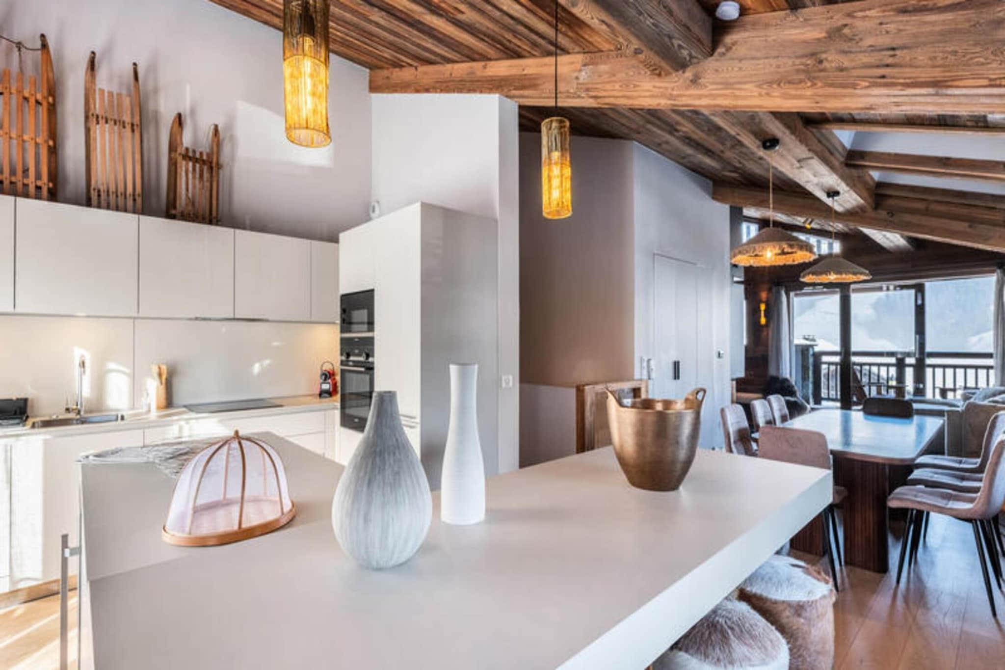 Denne rummelige lejlighed på 143 m² i Rochebrune-området i Megève tilbyder et luksuriøst alpint tilflugtssted for op til 11 gæster. Fordelt på to etager kombinerer Stallion F01-lejligheden moderne design med bjergcharme, hvilket skaber en afslappende atmosfære, som alle kan nyde. Lejligheden har fire soveværelser, herunder et børneværelse med køjesenge, to soveværelser med dobbeltsenge med en-suite bruserum og et biografrum med en sovesofa. Det overordnede niveau omfatter en stor stue med pejs, en spiseplads og et køkken i åbent plan, der alt sammen fører til en terrasse, hvor du kan nyde bjergudsigten og solskin. For vintersportsentusiaster er Rochebrune-skiområdet i nærheden, og feriestedets centrum ligger i kort afstand, og det byder på butikker, restauranter og afterski-aktiviteter. Faciliteterne på stedet inkluderer et afslapningsområde i bygning D med en swimmingpool, fitnesscenter, sauna og hammam, alt sammen tilgængeligt på bestemte årstider. Lejligheden er bekvemt placeret 150 m fra MegBus shuttlestoppestedet, hvilket giver nem adgang til resortet. Lejligheden tilbyder også garageparkering, et vaskerum og yderligere tjenester såsom linned, slutrengøring og regelmæssig rengøring. Husdyr er tilladt, og lejligheden er ikke-ryger.