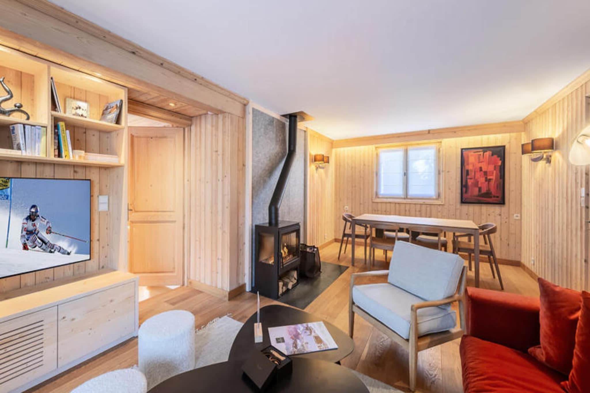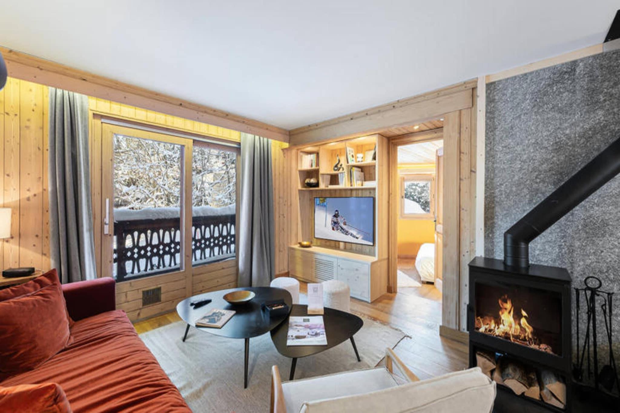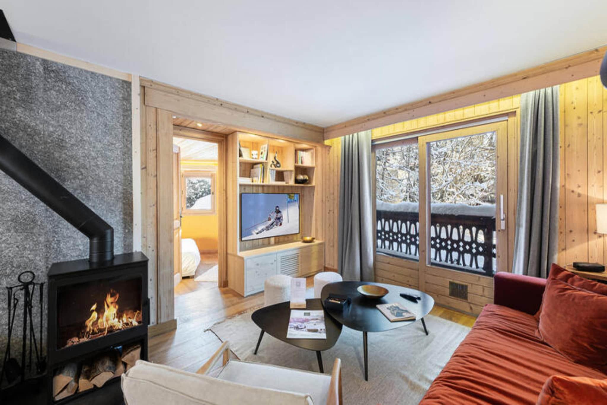 Ejendommen tilbyder sammen med sin moderne charme en rummelig lejlighed på 65 m², der komfortabelt kan rumme op til fire gæster. Det har to en-suite soveværelser, hvoraf det ene tilbyder en dobbeltseng (160x200) og det andet to enkeltsenge (90x200). Opholdsstuen omfatter en hyggelig opholdsstue med tv, spiseplads og balkon med naturskøn udsigt. En brændeovn tilføjer varme og stemning til rummet og forbedrer dit ophold. Til lejligheden hører også en privat udækket parkeringsplads. Kæledyr er ikke tilladt, og rygning er forbudt. Sengelinned og håndklæder er inkluderet, og senge er rede ved ankomst. Selvom der ikke tilbydes gratis aktiviteter, er yderligere tjenester såsom concierge-muligheder og rengøring tilgængelige mod et ekstra gebyr. Ideelt beliggende mindre end fem minutters gang fra landsbyens centrum tilbyder lejligheden nem adgang til lokale faciliteter og attraktioner. Chamois-skiliften er kun en kort afstand, hvilket gør den til en perfekt base for vintersportsentusiaster. Den centrale beliggenhed sikrer, at gæsterne nemt kan udforske Megèves charmerende landsby, som er kendt for sine eksklusive shoppingmuligheder, spisesteder og pulserende afterski-scene. Offentlige transportmuligheder, herunder busser, er let tilgængelige, og Genève Lufthavn ligger cirka 1,5 time væk i bil, hvilket sikrer glatte forbindelser for internationale rejsende. Lejligheden har et fuldt udstyret uafhængigt køkken, så gæsterne kan tilberede måltider i komfort. Køkkenet inkluderer alle de nødvendige apparater, men ejendommen tilbyder ikke daglig rengøring, selvom regelmæssig rengøring kan arrangeres efter anmodning. Yderligere tjenester såsom en concierge til at reservere liftkort eller arrangere personlige oplevelser er tilgængelige mod et gebyr. Ejendommen tilbyder private, sikre omgivelser med uafhængige faciliteter, hvilket gør det til et fremragende valg for en afslappende ferie i hjertet af Megève.