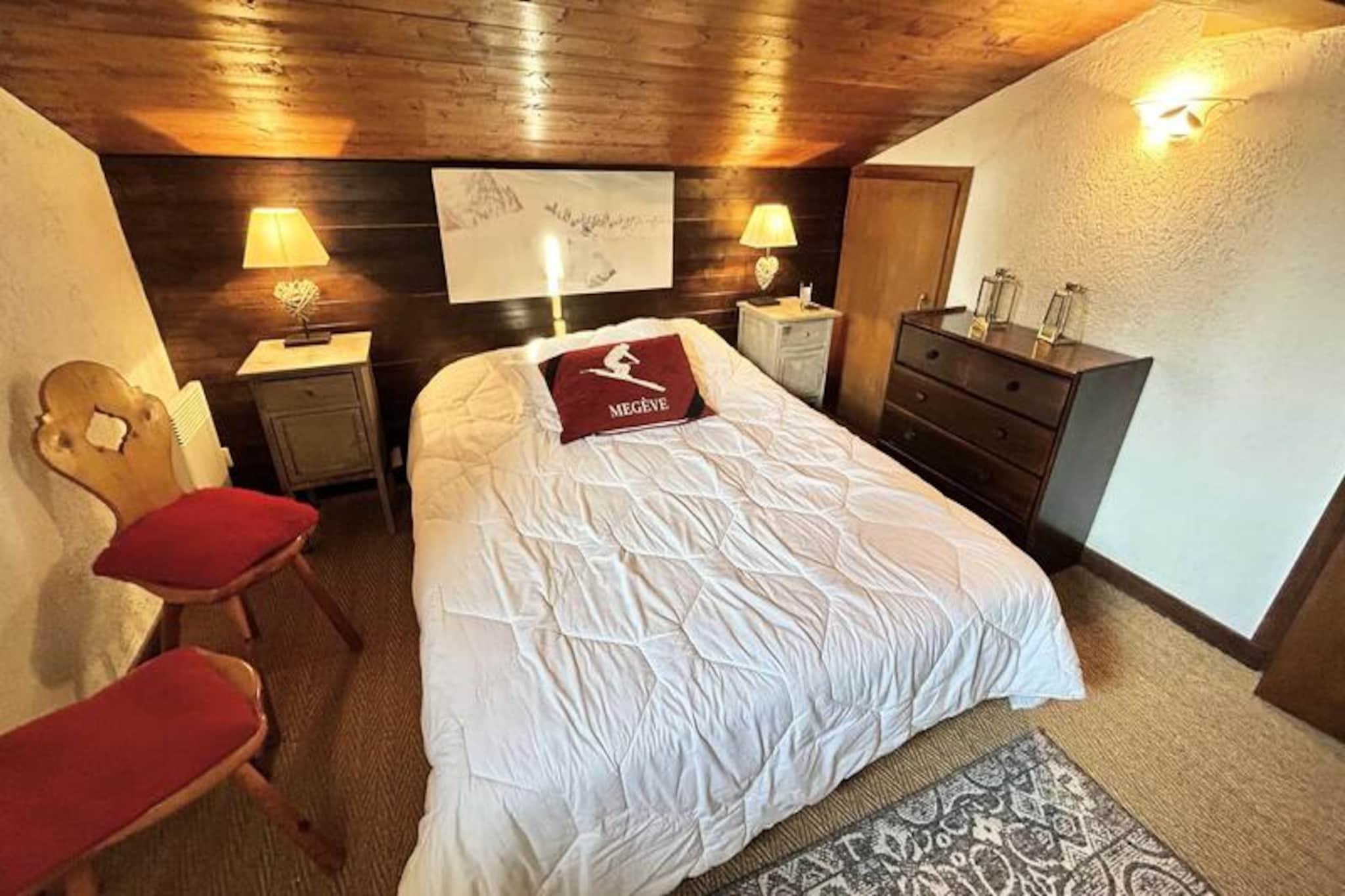 På kanten af ??de fortryllende Mont d'Arbois-pister inviterer denne charmerende duplex dig til at fordybe dig i de franske alpers skønhed. Uanset om du er her for spændende vintersport eller rolige sommereventyr, kunne beliggenheden ikke være mere perfekt. Kun 3 minutters gang fra Mont d'Arbois-skiliften og få skridt fra et bekvemt skibusstoppested sikrer denne ejendom problemfri adgang til regionens berømte aktiviteter og betagende landskaber. Den vestvendte balkon tilbyder et roligt sted at slappe af med udsigt, der indfanger den alpine magi på alle tider af dagen. \n\nIndenfor er duplexen omhyggeligt designet til at kombinere komfort og praktisk anvendelighed. Entréhallen fører til en hyggelig åben stue med et udstyret køkken, tv, dvd-afspiller og en dekorativ pejs, der tilføjer et strejf af rustik charme. Ovenpå tilbyder mezzaninen med to enkeltsenge et legende tilflugtssted, mens to soveværelser på loftet - et med en dobbeltseng og det andet med en større dobbeltseng - tilbyder afslappende oaser til din alpine flugt. Ejendommen har også to badeværelser, et med separat toilet, hvilket sikrer bekvemmelighed for familier eller små grupper. Moderne faciliteter som et skirum og sikker parkeringsplads forbedrer dit ophold yderligere. \n\nUd over ejendommen er det omkringliggende område et paradis for friluftsentusiaster. Fra skiløb og snowboarding om vinteren til vandreture og mountainbiking om sommeren tilbyder Mont d'Arbois uendelige muligheder for at udforske. I nærheden finder du charmerende landsbyer, lokale restauranter og kulturelle vartegn, der fremviser regionens rige kulturarv. For familier gør skibusstoppestedet og yderligere tjenester som babysæt og udlejning af sengetøj det nemt at rejse med de små. \n\nUanset om du søger eventyr eller afslapning, er denne duplex din indgang til uforglemmelige alpine oplevelser. Lad de majestætiske tinder og den uberørte luft inspirere din næste ferie i hjertet af de franske alper.