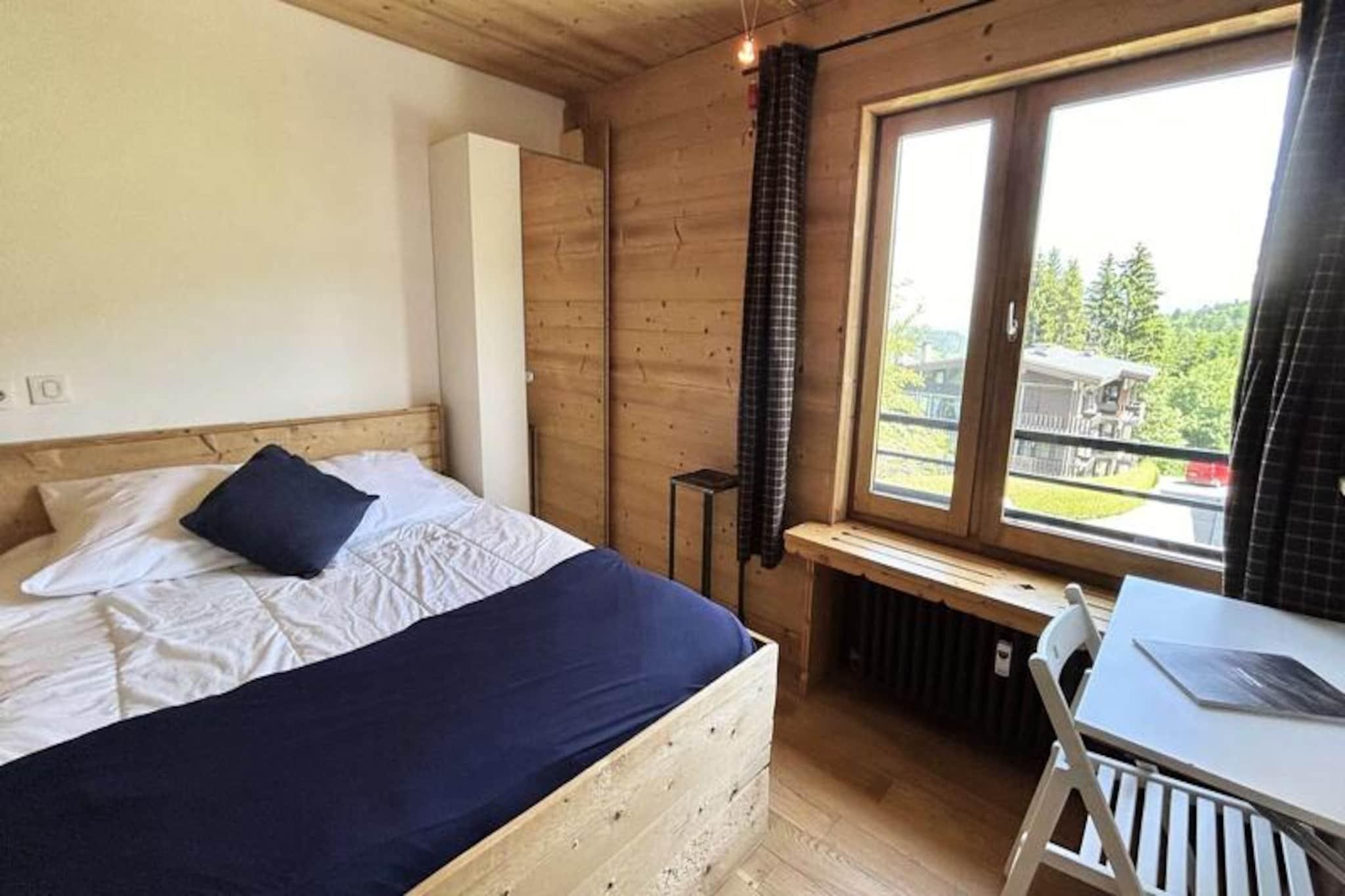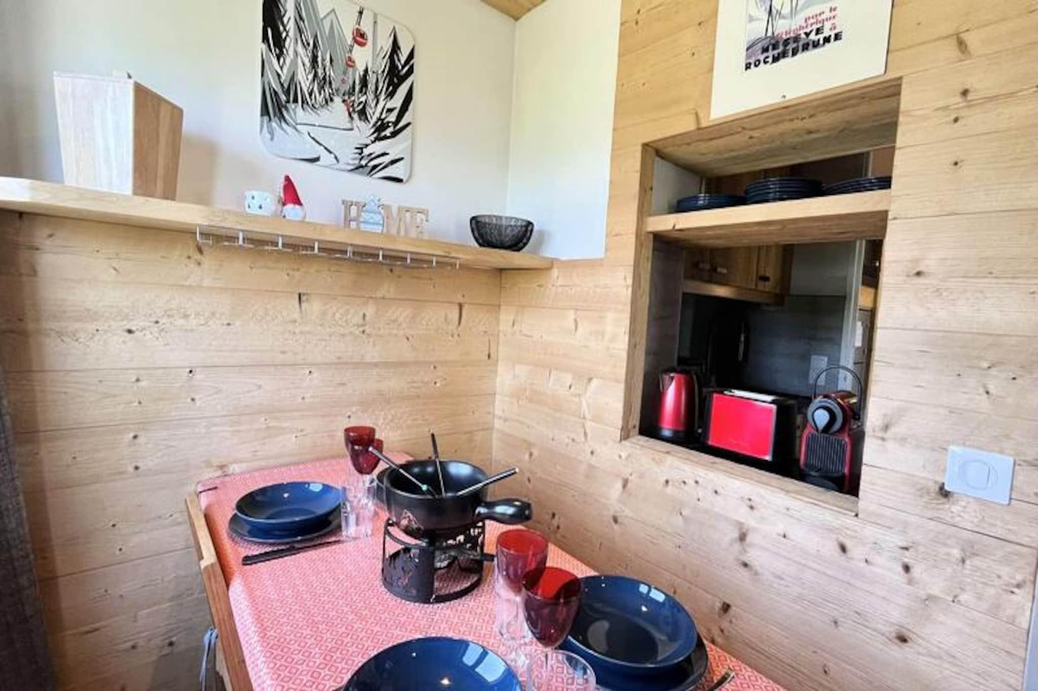 Højt over den charmerende landsby Megève tilbyder denne dejlige lejlighed et roligt tilflugtssted med betagende udsigt over alperne. Kun 1 km fra landsbyens centrum og i gåafstand fra Rochebrune-svævebanen (800 m) og de første stolelifte (700 m) er den perfekt beliggende for både vintersportsentusiaster og dem, der søger en rolig bjergflugt. Den sydvestvendte balkon inviterer dig til at nyde solskinnet, mens du beundrer de majestætiske tinder og den tidløse skønhed i de franske alper. \n\nIndvendigt er lejligheden omhyggeligt designet til at kombinere komfort og funktionalitet. Beliggende på 2. og øverste sal i en bygning uden elevator, har den en indbydende entré med rigelig opbevaringsplads, en hyggelig stue/spisestue med pejs og tv samt et fuldt udstyret tekøkken til at tilberede solide måltider efter en dag på pisterne. Sovepladserne omfatter et soveværelse med dobbeltseng, garderobeskabe og balkonadgang, et andet soveværelse med en dobbeltseng og en hytte med køjesenge - ideelt for familier eller grupper på op til seks gæster. Det moderne brusebad har en vaskemaskine, og der er et separat toilet for ekstra bekvemmelighed.\n\nYderligere faciliteter inkluderer et skirum og en privat underjordisk parkeringsplads, der sikrer, at dit udstyr og køretøj er sikkert og trygt. Gæsterne kan også nyde valgfrie tjenester såsom sengelinned, håndklæder og slutrengøring for en problemfri ferie.\n\nMed sin nærhed til den pulserende landsby Megève, kendt for sine gourmetrestauranter, butikker og livlige afterski-scene, er denne lejlighed en ideel base for at udforske regionen. Uanset om du cykler gennem frisk puddersne, vandrer på naturskønne stier eller blot slapper af ved pejsen, lover dette alpine tilflugtssted en uforglemmelig ferie i hjertet af de franske alper.