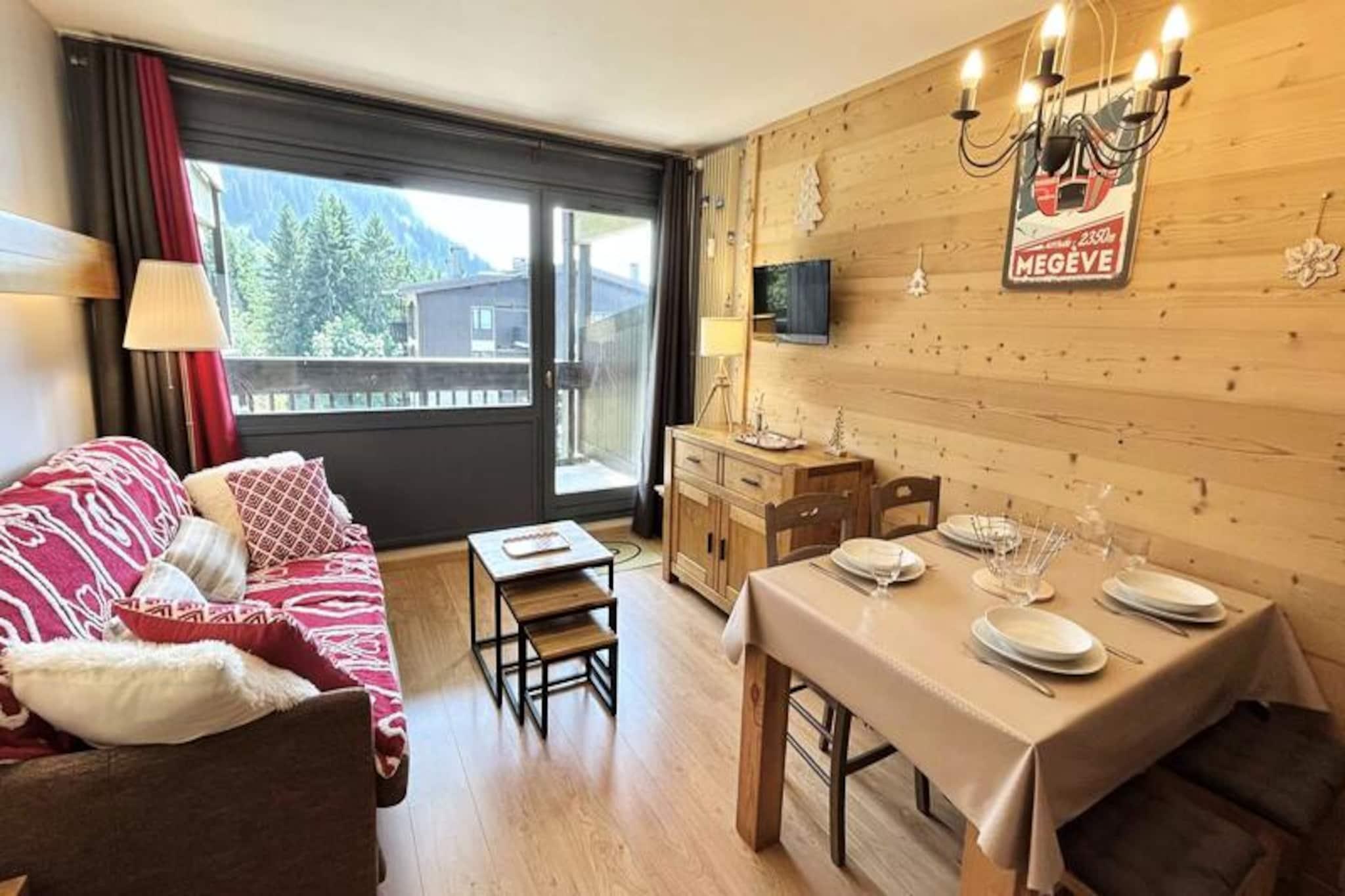 Højt over den maleriske landsby Megève tilbyder dette charmerende alpine tilflugtssted en rolig oase med betagende, uhindret udsigt over de omkringliggende bjerge. Kun 1 km fra landsbyens centrum og en kort gåtur fra Rochebrune-svævebanen (800 m) og skilifterne (700 m) er denne bolig perfekt beliggende til både eventyr og afslapning. Uanset om du er her for at slentre gennem uberørte pister eller blot nyde den rolige alpine atmosfære, lover denne ejendom et uforglemmeligt ophold. Lejligheden, der ligger på anden sal, er omhyggeligt designet til at rumme op til fire gæster. Entréen har to hyggelige køjesenge (bemærk: den øverste køjeseng er ikke egnet til børn under seks år), mens den primære opholdsstue har en komfortabel dobbeltsovesofa. Et fuldt udstyret køkken åbner ud til stuen, hvilket skaber et indbydende rum til at tilberede måltider og slappe af efter en dag med udforskning. Gå ud på den sydvestvendte balkon for at nyde fantastiske solnedgange og frisk bjergluft. Moderne faciliteter som et tv, skiboks og en dedikeret underjordisk parkeringsplads (nummer 16) sikrer et problemfrit og behageligt ophold. Megèves charme ligger i den perfekte blanding af traditionel alpin karakter og moderne luksus. Gå en tur gennem landsbyens brostensbelagte gader, oplev gourmetrestauranter og udforsk butikker. For friluftsentusiaster giver de nærliggende skilifte og Rochebrune-svævebanen nem adgang til ski- og vandrestier i verdensklasse. Om sommeren forvandles regionen til et paradis for naturelskere med frodige, grønne enge og naturskønne stier. Uanset om du planlægger en vinterferie eller et sommerophold, tilbyder denne bolig den ideelle base for at opleve de franske alpers skønhed og tiltrækningskraft. Lad Megèves magi fortrylle dig og skabe minder, der vil vare hele livet.