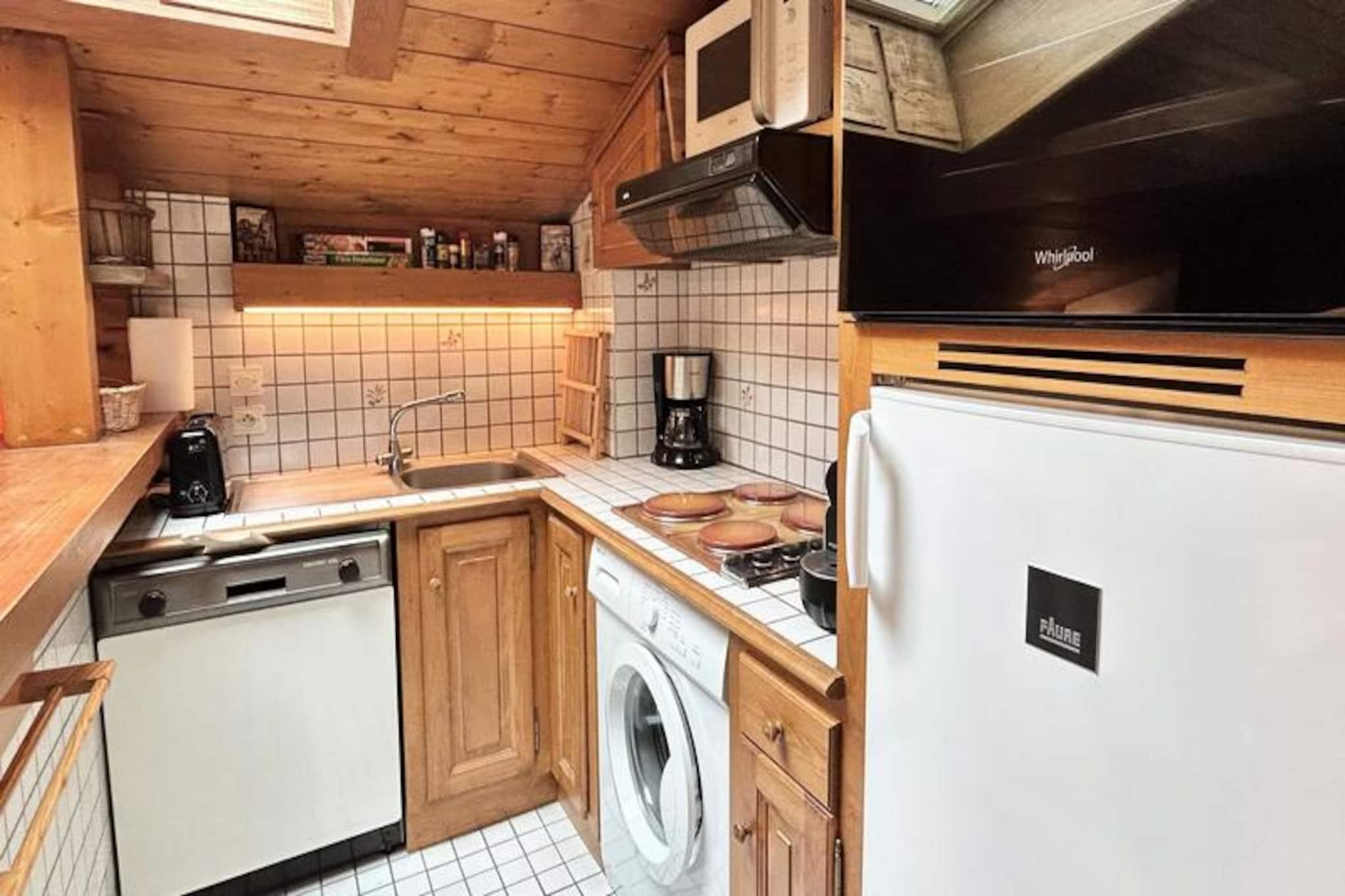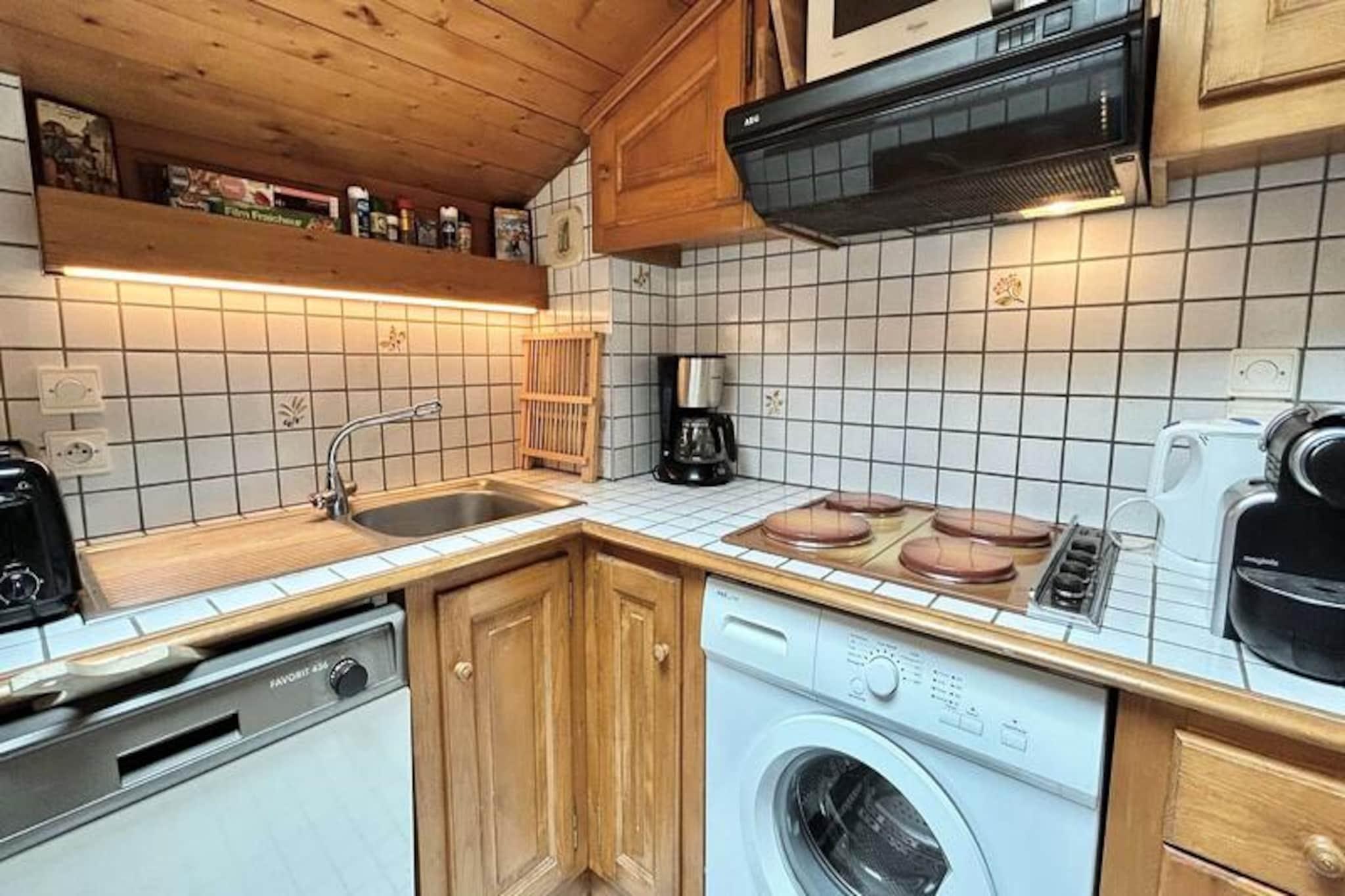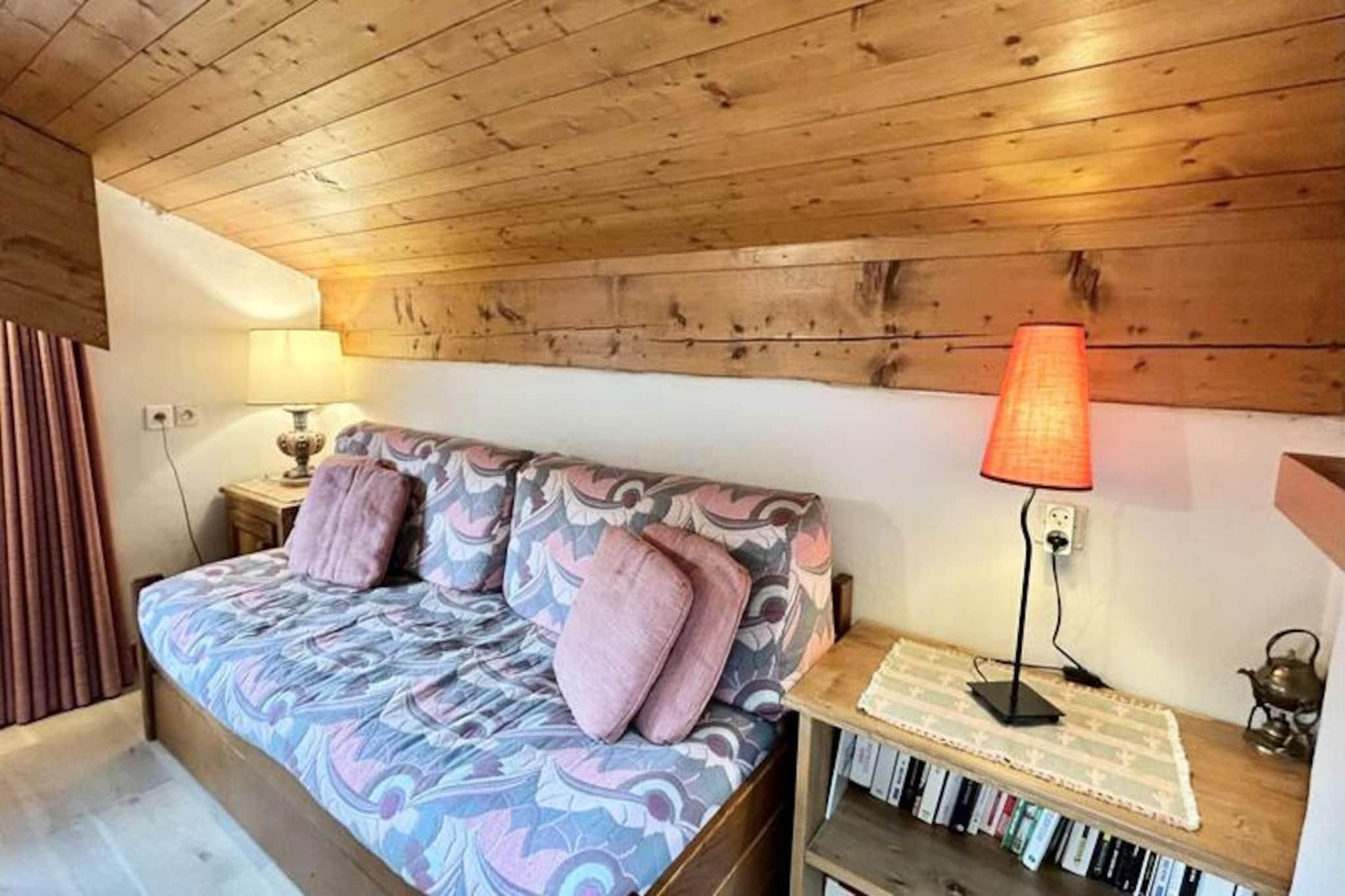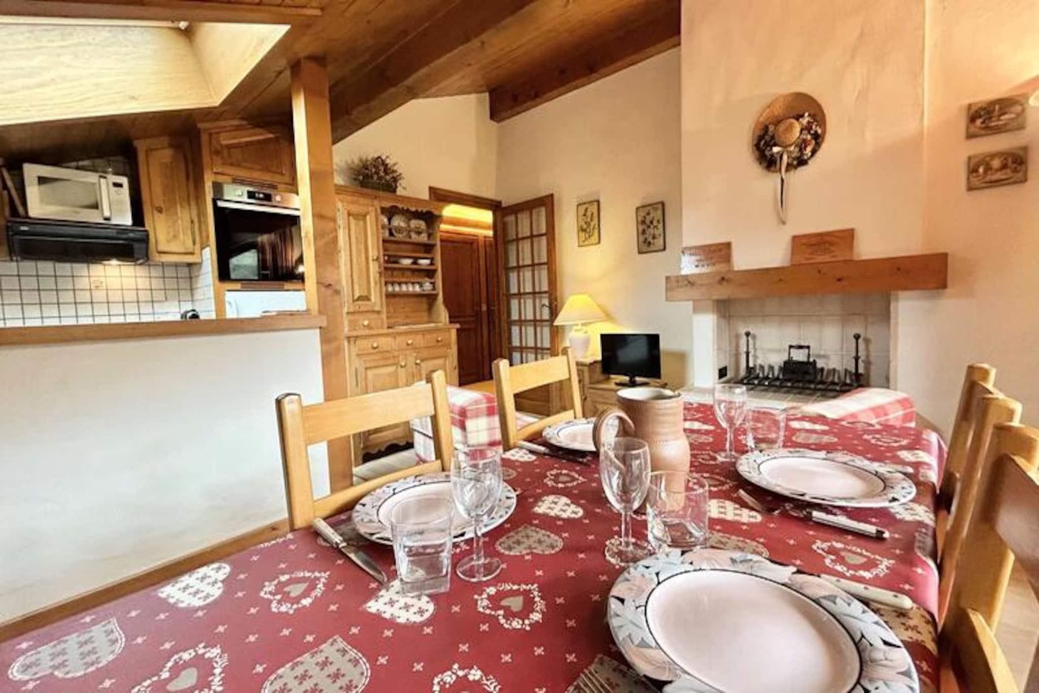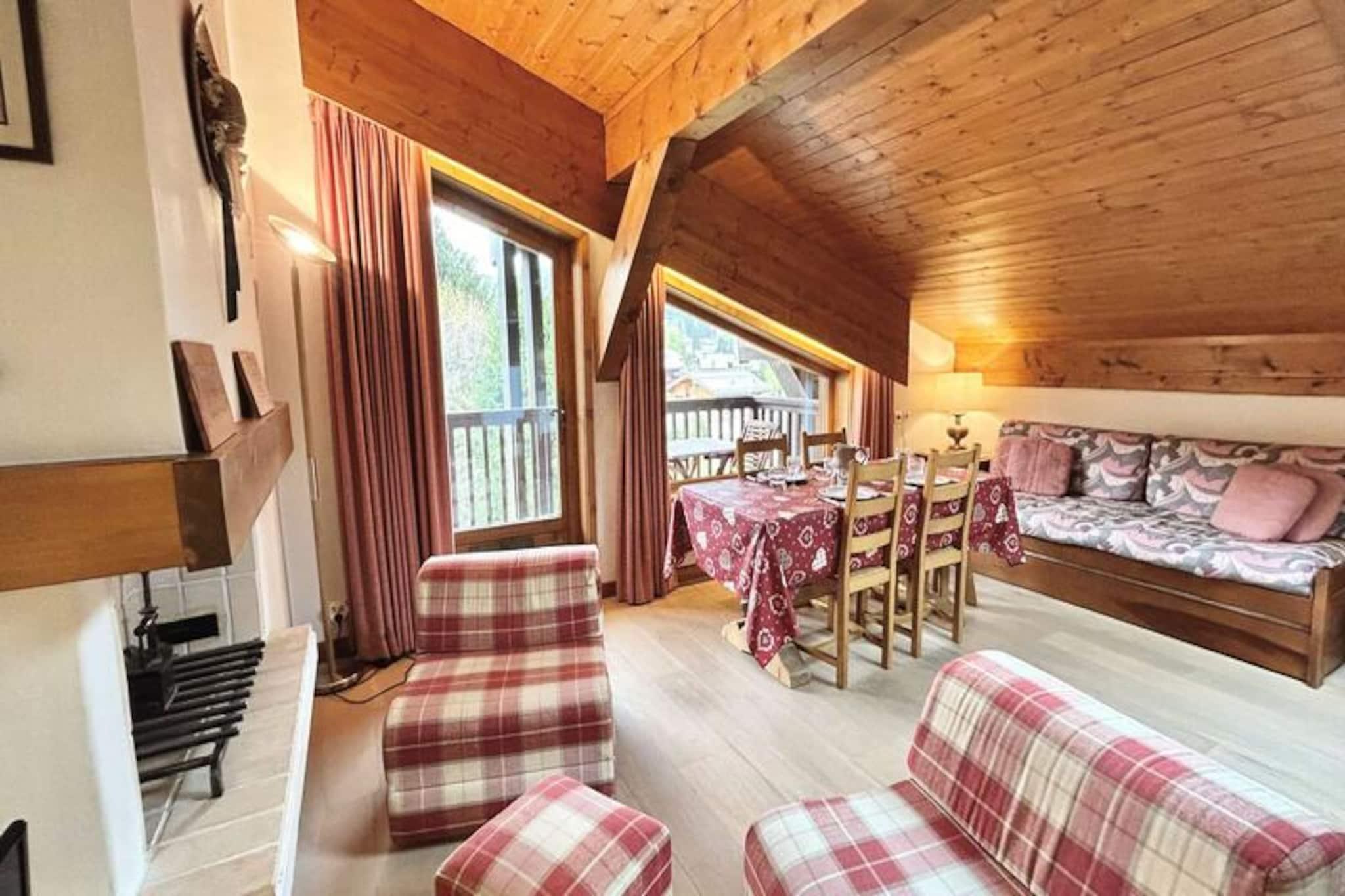 Højt over Megèves charmerende gader tilbyder denne hyggelige bjerglejlighed et roligt tilflugtssted med betagende udsigt og nem adgang til regionens mest eftertragtede attraktioner. Forestil dig at vågne op til den friske alpeluft, træde ud på din sydvendte balkon og planlægge en dag fyldt med skiløb, sport eller blot at nyde de franske alpers skønhed. Uanset om du er her for vintereventyr eller sommerferier, placerer denne bolig dig i hjertet af det hele. \n\nLejligheden ligger på anden sal i en rolig bolig og har komfortabel plads til op til seks gæster. Den gennemtænkte planløsning inkluderer en entré med to enkeltkøjesenge, en sovealkove med to ekstra køjesenge og et privat soveværelse med to enkeltsenge og rigelig opbevaringsplads. Det fuldt udstyrede køkken åbner ud til en varm og indbydende stue/spisestue med en dekorativ pejs, der tilføjer et strejf af rustik charme. Efter en dag på pisterne eller på udforskning af landsbyen kan du slappe af i dette hyggelige rum eller nyde den fantastiske udsigt fra balkonen. \n\nBare 450 meter fra Jaillet-svævebanen og skiskolen, og en kort gåtur på 850 meter til landsbyens centrum, er beliggenheden ideel til både bekvemmelighed og udforskning. Det nærliggende Palais des Sports, kun seks minutter væk, tilbyder en række aktiviteter for alle aldre, hvilket gør denne lejlighed perfekt til familier og grupper. Med en privat garage og skiboks er dit udstyr altid sikkert og let tilgængeligt. \n\nUanset om du er tiltrukket af Megèves verdensklasse skiløb, pulserende landsbyliv eller rolige sommervandreture, er denne lejlighed den perfekte base for uforglemmelige alpine minder. Lad charmen ved de franske alper inspirere dit næste eventyr.