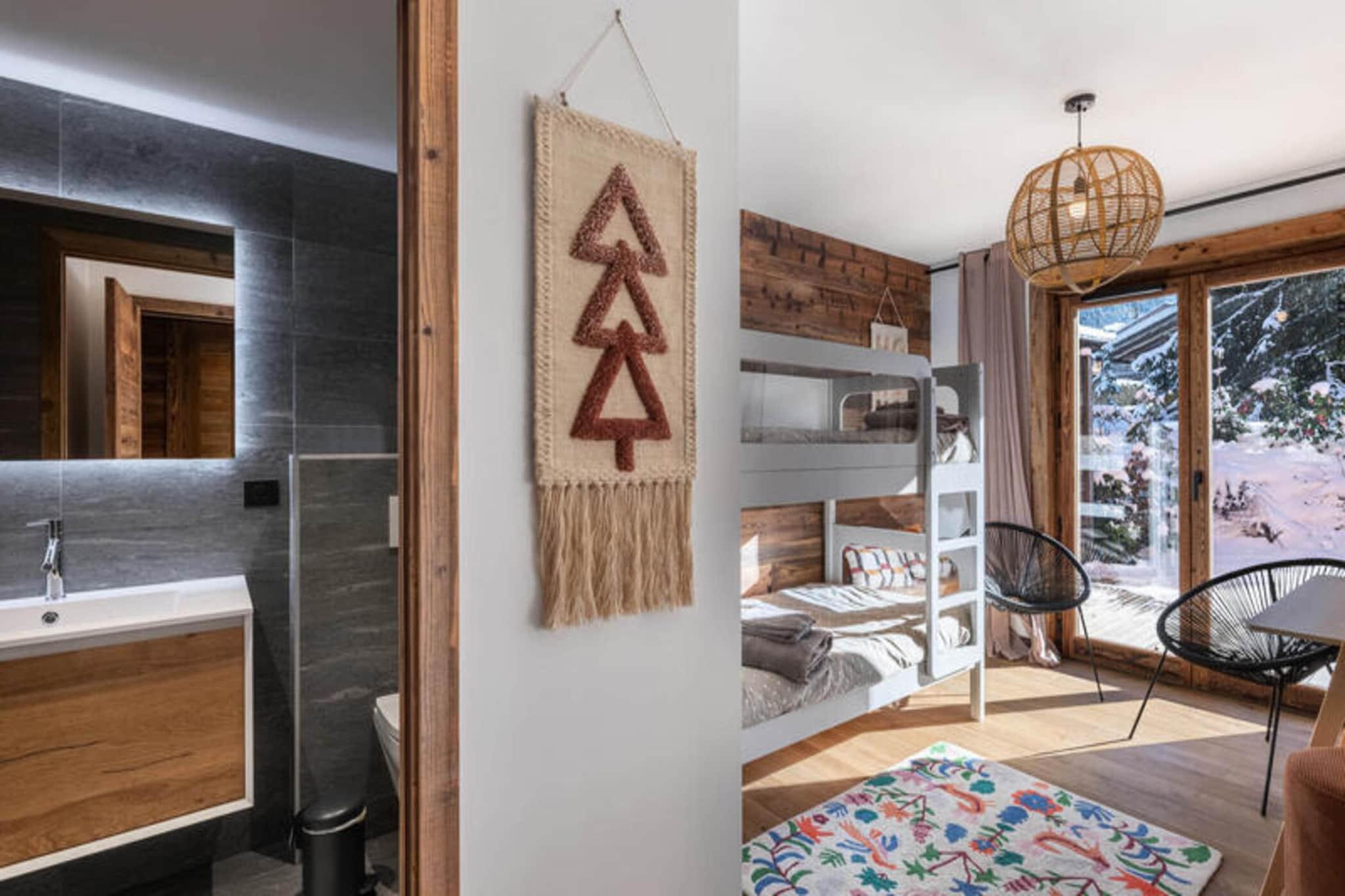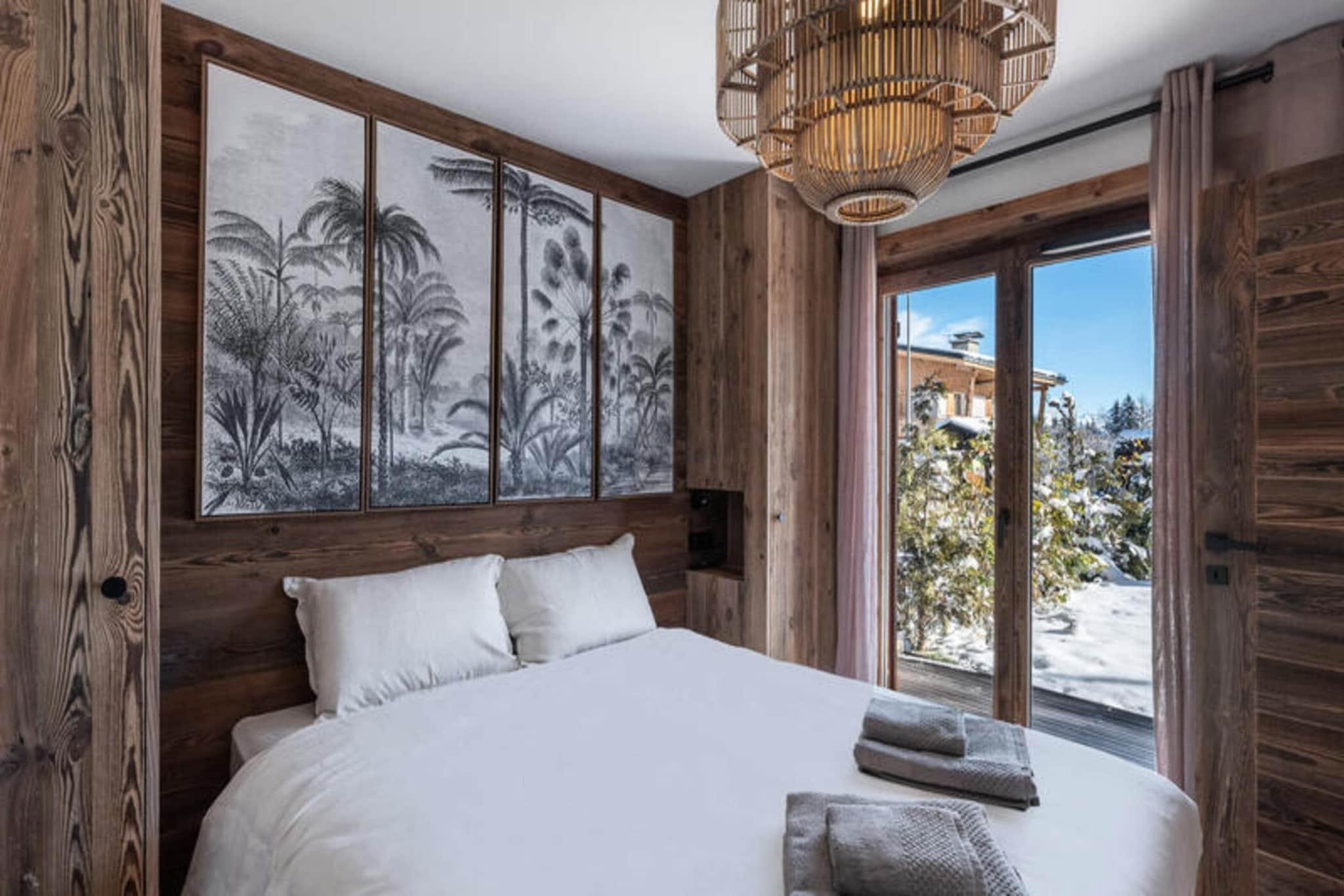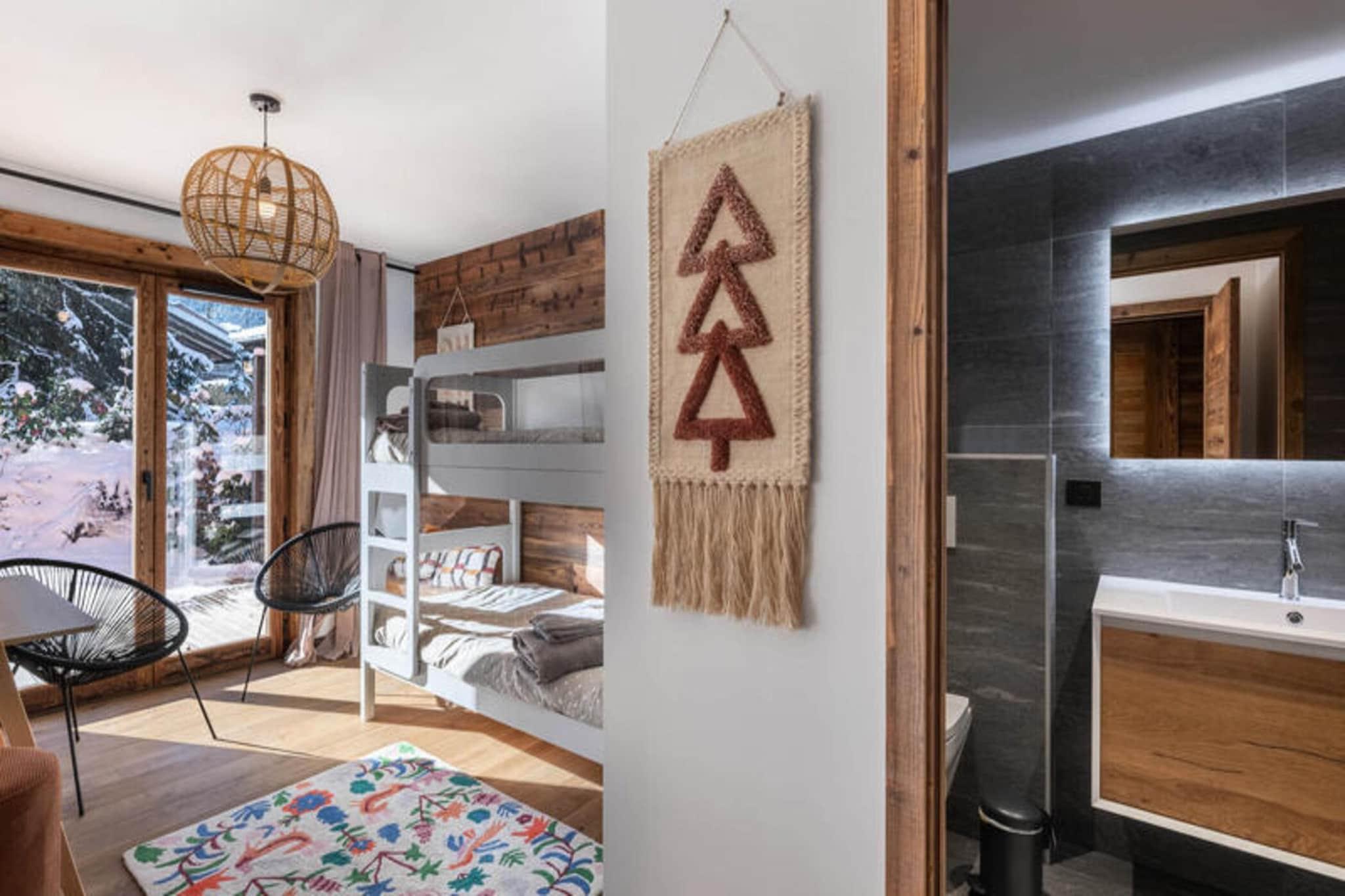 Beliggende kun få minutter fra Mont d'Arbois-svævebanen, tilbyder den prestigefyldte Ksar-residens en enestående alpeoplevelse i hjertet af Megève. Denne lejlighed på 80 m² er designet i stil med traditionelle Megève-hytter og kombinerer komfort og luksus med moderne bekvemmeligheder. Boligen er ideelt beliggende med nem adgang til Mont d'Arbois skilifter og et busstoppested kun 50 m væk, hvilket giver bekvem transport til centrum af Megève. Megève, der er kendt for sin charmerende landsbyatmosfære, er berømt for sin livlige bymidte, fine restauranter, kulturelle begivenheder og vintersport. Landsbyen er også hjemsted for en golfbane, der tilbyder rekreation året rundt. Med et skiskab, støvletørrere og en dedikeret parkeringsplads sikrer Ksar A01-lejligheden et problemfrit ophold for gæsterne. Kæledyr er velkomne, og ikke-rygere foretrækkes. Det har to soveværelser med dobbeltsenge og et kabineværelse med køjesenge, der komfortabelt kan rumme op til 6 gæster. Den rummelige opholdsstue omfatter en hyggelig lounge med tv og ethanol pejs, en spiseplads til op til 6 gæster og et fuldt udstyret køkken. Gæsterne kan slappe af i wellness-området, som omfatter sauna, hammam og fitnessrum.