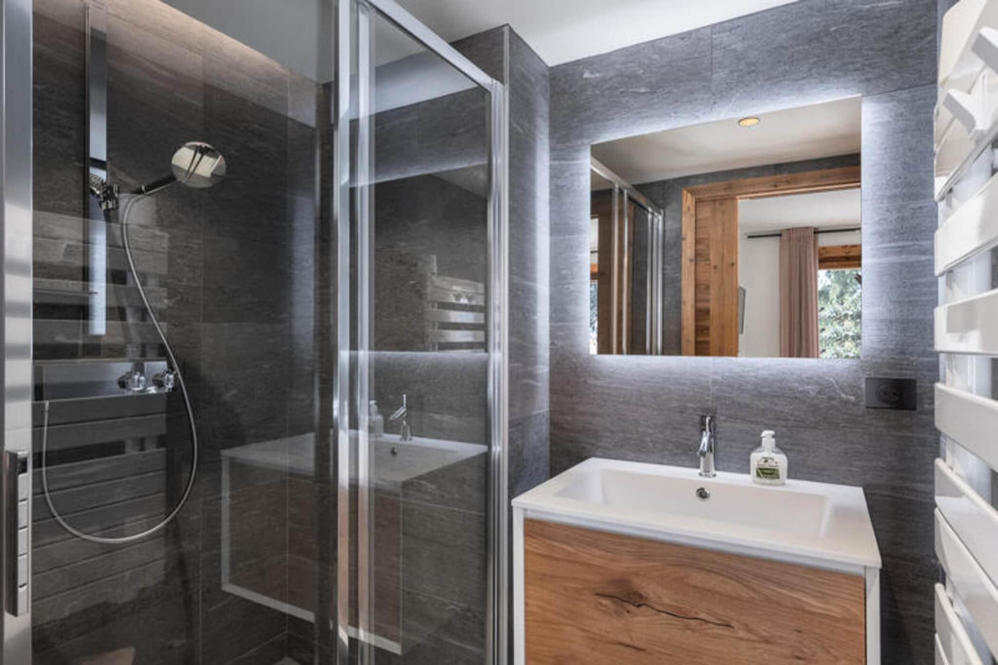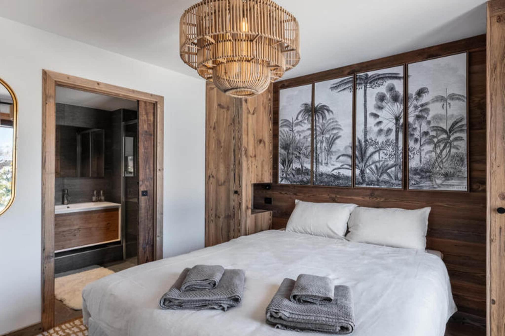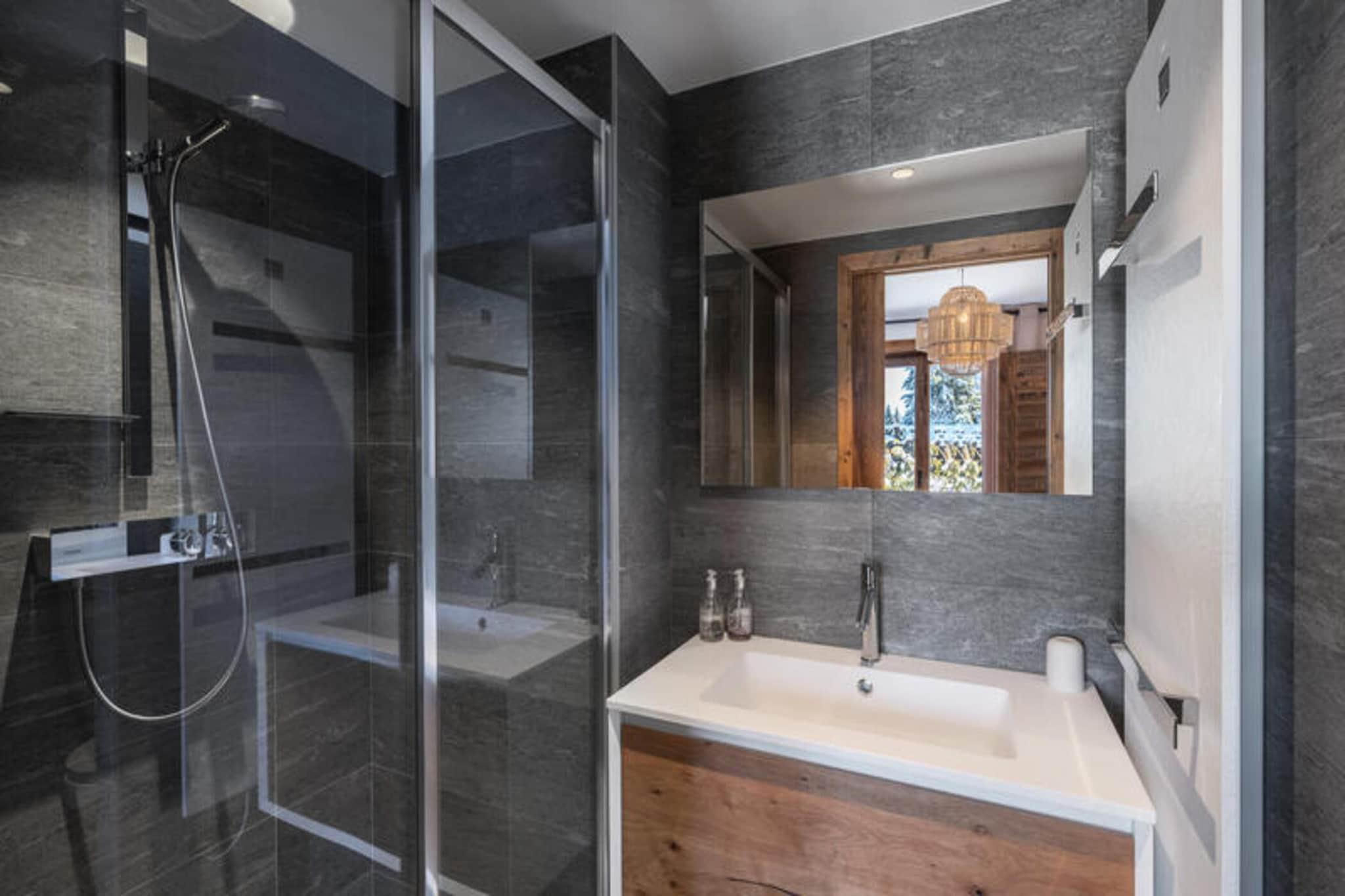 Beliggende kun få minutter fra Mont d'Arbois-svævebanen, tilbyder den prestigefyldte Ksar-residens en enestående alpeoplevelse i hjertet af Megève. Denne lejlighed på 80 m² er designet i stil med traditionelle Megève-hytter og kombinerer komfort og luksus med moderne bekvemmeligheder. Boligen er ideelt beliggende med nem adgang til Mont d'Arbois skilifter og et busstoppested kun 50 m væk, hvilket giver bekvem transport til centrum af Megève. Megève, der er kendt for sin charmerende landsbyatmosfære, er berømt for sin livlige bymidte, fine restauranter, kulturelle begivenheder og vintersport. Landsbyen er også hjemsted for en golfbane, der tilbyder rekreation året rundt. Med et skiskab, støvletørrere og en dedikeret parkeringsplads sikrer Ksar A01-lejligheden et problemfrit ophold for gæsterne. Kæledyr er velkomne, og ikke-rygere foretrækkes. Det har to soveværelser med dobbeltsenge og et kabineværelse med køjesenge, der komfortabelt kan rumme op til 6 gæster. Den rummelige opholdsstue omfatter en hyggelig lounge med tv og ethanol pejs, en spiseplads til op til 6 gæster og et fuldt udstyret køkken. Gæsterne kan slappe af i wellness-området, som omfatter sauna, hammam og fitnessrum.