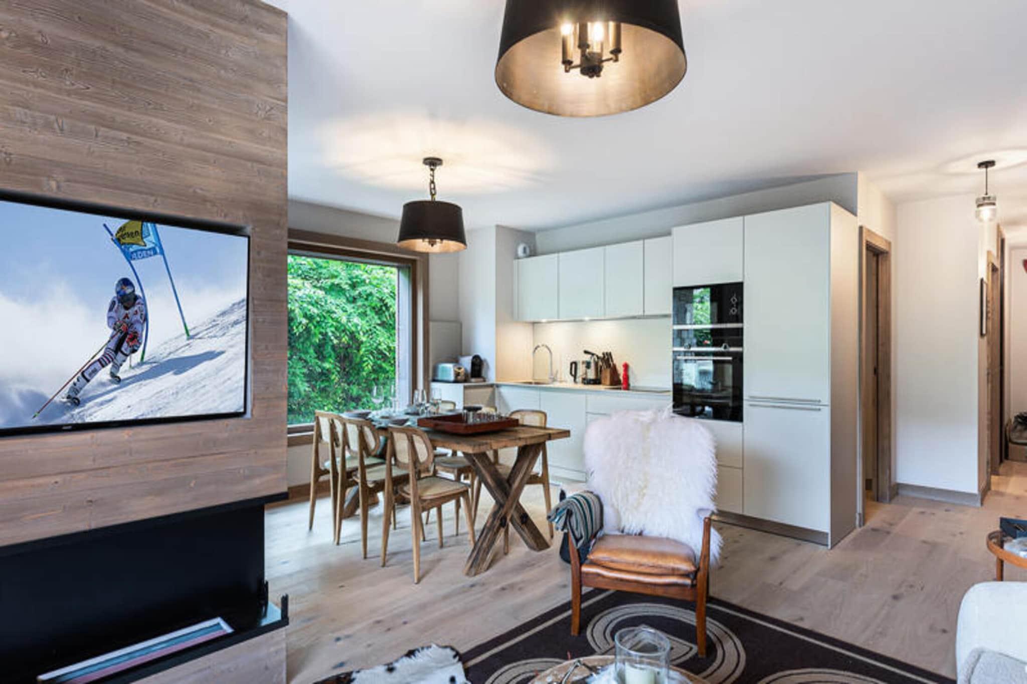 Denne charmerende lejlighed på 83 m² er beliggende i det fredelige Rochebrune-distrikt i Megève, kun 10 minutters kørsel fra det livlige centrum. Perfekt til familier eller små grupper, det tilbyder et hyggeligt, veldesignet opholdsrum med smuk udsigt over bjergene og direkte adgang til en privat have. Den rummelige stue i åbent plan har en ethanol-pejs, en spiseplads og et veludstyret køkken til fælles måltider. Lejligheden rummer komfortabelt op til 4 voksne og 2 børn, med to soveværelser med dobbeltsenge, et kabineværelse med køjesenge og to badeværelser. I nærheden kan den charmerende landsby Megève prale af en række butikker, restauranter og udendørs aktiviteter. Om vinteren byder området på fremragende skiløb, mens sommermånederne byder på vandreture og en betagende udsigt over Mont Blanc. Lejlighedens centrale, men rolige beliggenhed sikrer et afslappende, bekvemt ophold. Gæsterne kan nyde boligens afslapningsområde, som omfatter en swimmingpool, fitnesscenter, sauna og hammam, der tilbyder det perfekte tilflugtssted efter en dag på pisterne. Lejligheden ligger kun 150 meter fra det gratis MegBus-busstoppested og giver nem adgang til skilifterne og nærliggende attraktioner.