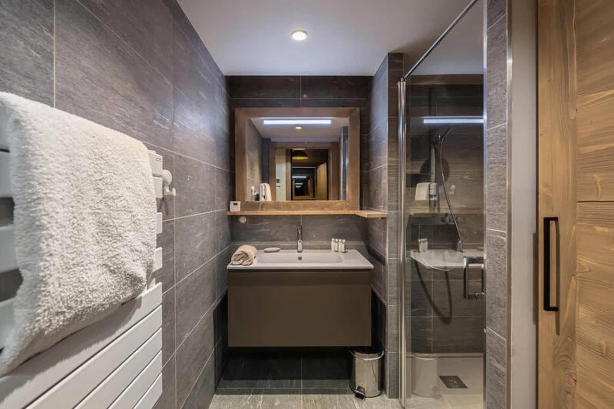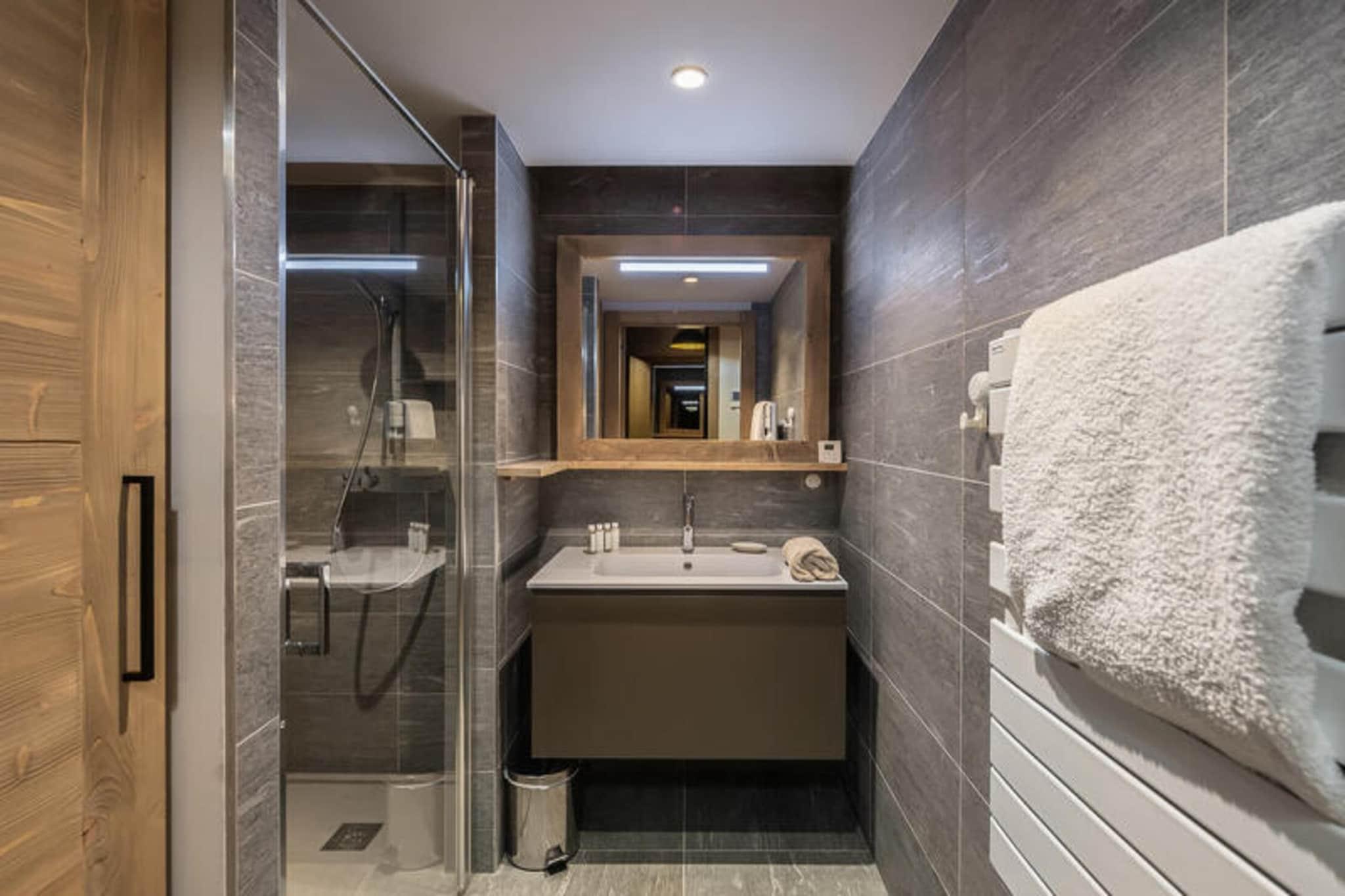 Ejendommen tilbyder sammen med dets moderne design en velindrettet lejlighed ideel til familier eller små grupper med plads til op til 4 gæster. Lejligheden indeholder en rummelig opholdsstue med åbent køkken, spiseplads og stue, der åbner ud til en privat terrasse. Sovearrangementerne består af et soveværelse med dobbeltseng med en adskillelig seng og et soveværelse med en stor 120x200 køjeseng. Badeværelset har et brusebad, og der er selvstændige toiletter for ekstra bekvemmelighed. Gæsterne kan nyde boligens kæledyrsvenlige politik, med yderligere tjenester såsom leje af spahåndklæder efter anmodning. Dette feriehus tilbyder en række tjenester, herunder regelmæssig rengøring to gange om ugen, og sengetøj (lagner og håndklæder) leveres ved ankomsten. Det gratis MegBus shuttlestoppested er bekvemt placeret kun 150 meter væk. Beliggende i det rolige Rochebrune-distrikt i Megève, tilbyder boligen en fredfyldt atmosfære, mens den kun er en kort 10-minutters kørsel fra byens centrum. For dem, der besøger i vintermånederne, er Rochebrune skilift kun et par minutter væk, hvilket giver nem adgang til pisterne. Gæster kan også drage fordel af boligens afslapningsområde i bygning D, som omfatter en swimmingpool, fitnesscenter, hammam og sauna (tilgængelig i bestemte måneder). Den gratis MegBus-shuttle giver bekvem transport til forskellige steder i området, hvilket gør det nemt at udforske de omkringliggende attraktioner. I nærheden vil gæsterne finde forskellige butikker, restauranter og udendørs aktiviteter, hvilket sikrer et godt ophold. Ud over sin førsteklasses beliggenhed er lejligheden udstyret med et fuldt funktionelt køkken, der inkluderer en ovn, køleskab og komfur, hvilket giver mulighed for en bekvem oplevelse med selvforplejning. For dem, der medbringer køretøjer, inkluderer lejligheden overdækket parkering med en specificeret størrelse samt et skiskab til opbevaring af udstyr. Boligen er en ikke-ryger ejendom, der sikrer et rent og behageligt miljø for alle gæster. Mens tjenester såsom almindelig rengøring og slutrengøring er inkluderet, er yderligere concierge-tjenester som Pass Snow og Pass Serenity også tilgængelige, hvilket giver skræddersyede oplevelser for gæster, der leder efter ekstra luksus under deres ophold.