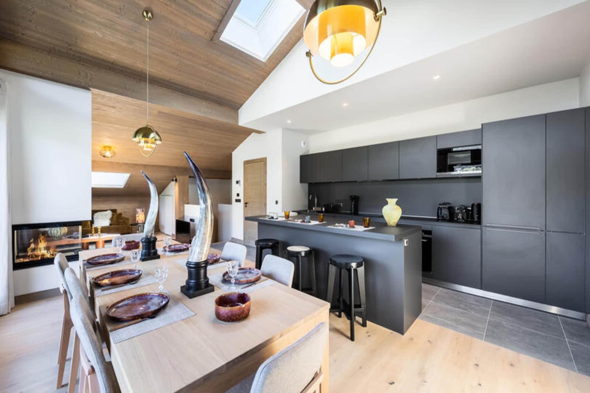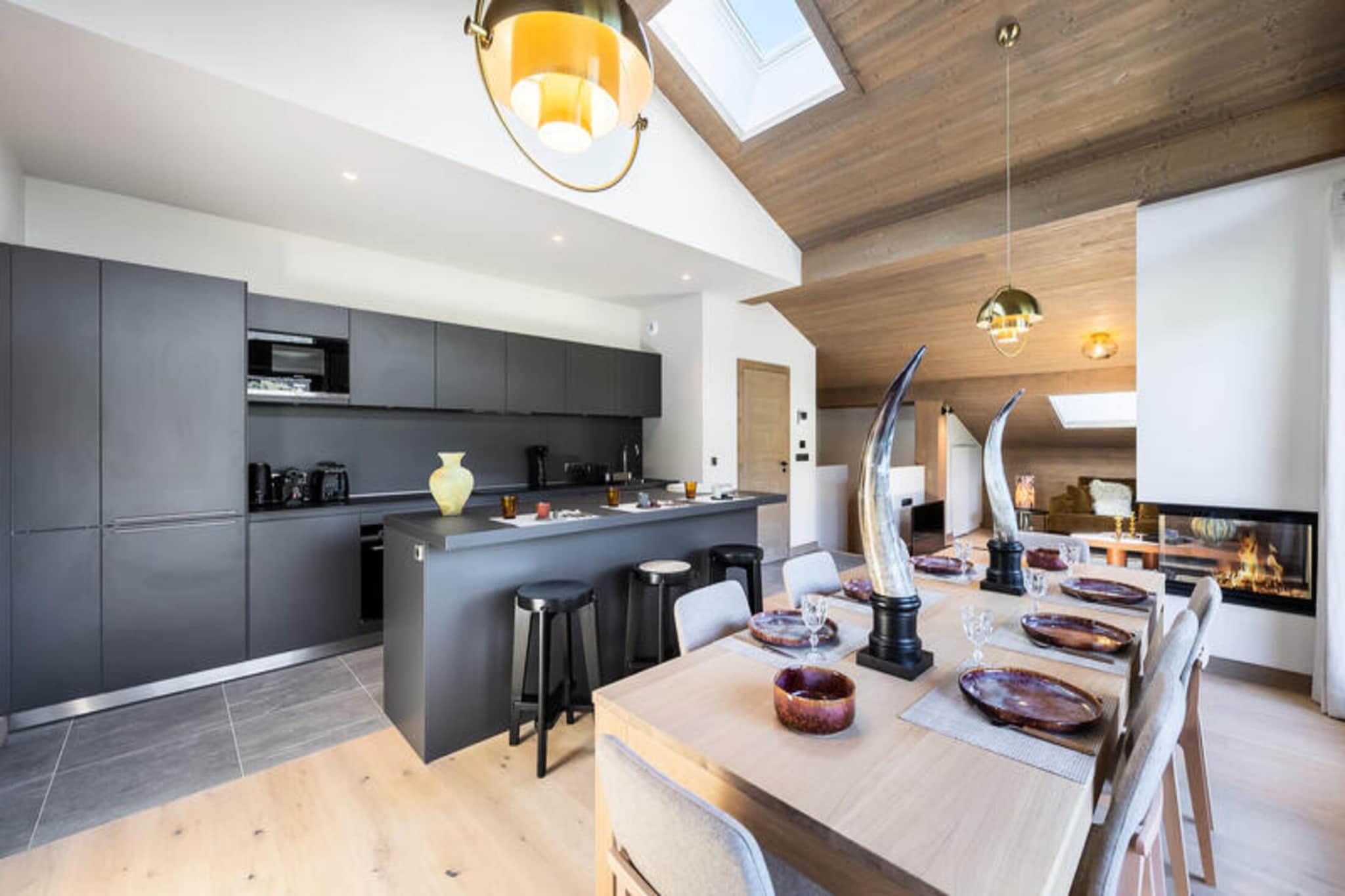 Ejendommen tilbyder sammen med sin charmerende atmosfære et rummeligt duplex-layout designet til den største komfort. Det har tre velindrettede soveværelser med dobbeltsenge, hver med en-suite badeværelse, komfortabelt med plads til op til seks gæster. Boligen er ikke-ryger og ikke kæledyrsvenlig. Et højdepunkt ved ejendommen er dens private balkon med panoramaudsigt over de omkringliggende tinder. Opholdsstuen i åbent plan omfatter en stue med en central pejs, en spiseplads og et åbent køkken, mens gæsterne kan nyde adgang til en række faciliteter på stedet, såsom en swimmingpool, fitnesscenter, sauna og hammam. Boligen tilbyder også gratis adgang til MegBus shuttle-service, som stopper kun 150 meter væk, og omfatter væsentlige tjenester såsom regelmæssig rengøring, velkomstgaver og sengetøj. Ejendommen ligger i det fredelige Rochebrune-distrikt i Megève, mindre end 10 minutter fra byens centrum i bil, hvilket giver et fredfyldt tilflugtssted tæt på lokale attraktioner. Det nærmeste busstoppested, Faucigny, ligger en kort gåtur væk, hvilket gør det nemt at komme til byen og nærliggende områder. Megèves vigtigste faciliteter, herunder butikker, restauranter og skiløjperne, er alle let tilgængelige med offentlig transport eller en kort køretur. For dem, der rejser med fly, er Genèves internationale lufthavn omkring 1,5 time væk, og tilbyder praktiske forbindelser til resortet. Ejendommen er fuldt udstyret til et behageligt ophold med et moderne køkken, der inkluderer alle nødvendige apparater til selvforplejning. Interiøret kan prale af smagfuld udsmykning og en hyggelig atmosfære overalt, med rigelig opbevaringsplads og et skiskab til vintergæster. Der tilbydes overdækket parkering, og boligen betjenes af et dedikeret team, der tilbyder regelmæssig rengøring og slutservice. Valgfri concierge-tjenester er også tilgængelige, hvilket sikrer en skræddersyet oplevelse for gæster, der ønsker at booke liftkort eller anmode om yderligere faciliteter.