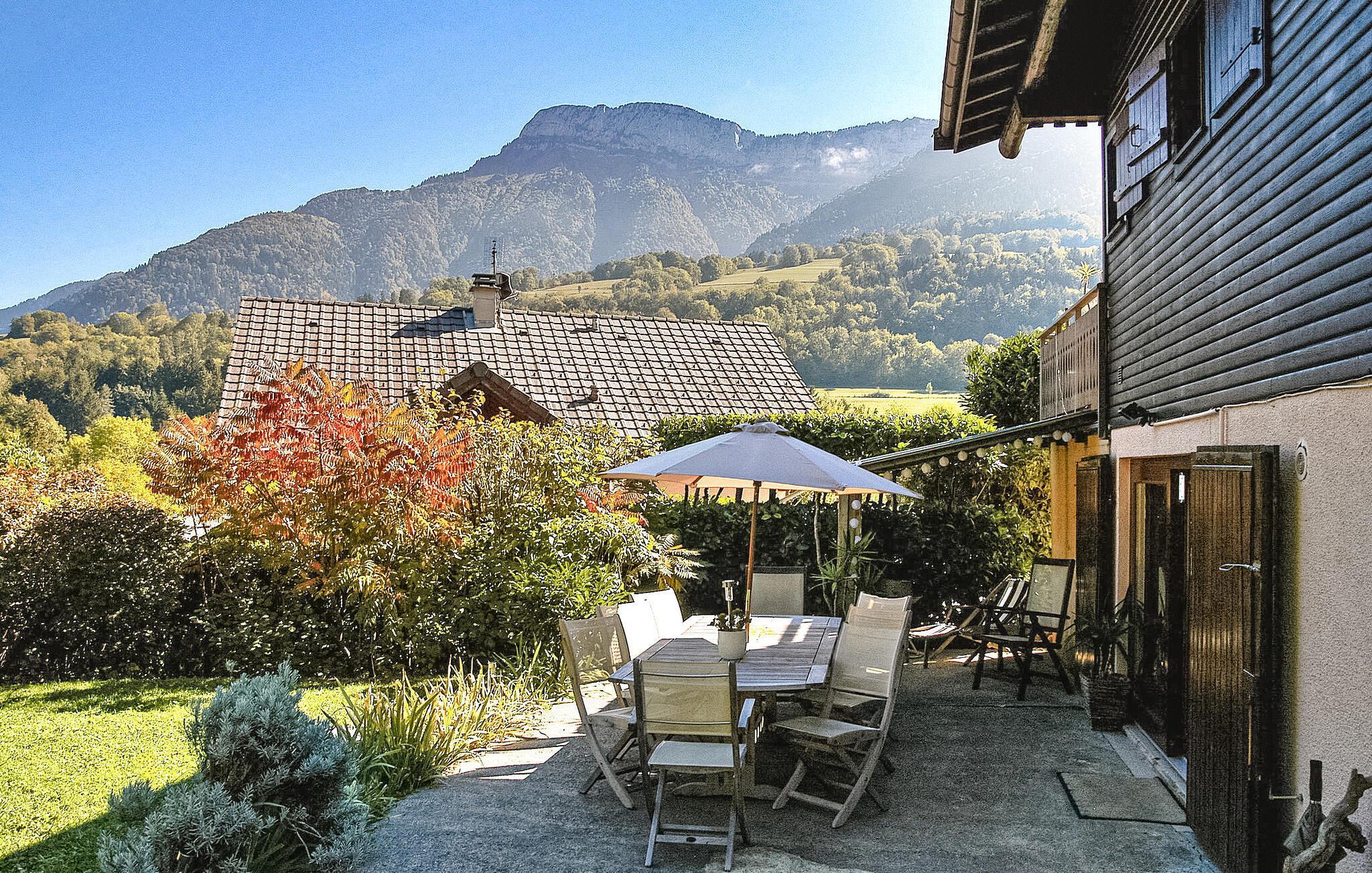 Alex chalet, nær Menthon Saint Bernard og Lake Annecy, tilbyder et behageligt ophold midt i naturlige omgivelser mellem Lake Annecy og Aravis-bjergkæden. Denne hytte har en stueetage med spiseplads med fuldt udstyret køkken og bar. Spisestuen åbner ud til en nordvendt terrasse, der tilbyder en køligere atmosfære i varmere perioder. En trappe fører til første sal, hvor der er et opholdsområde med TV (bemærk: loftshøjde er 2 m) og udgang til den sydøstlige terrasse med naturskøn udsigt over de omkringliggende bjerge Dents de Lanfon og Parmelan. Indgangen til hytten er tilgængelig fra både stueetagen og første sal. Udenfor grænser den ikke-aflukkede ejendom op til omkringliggende marker, der fungerer som en fremragende legeplads for børn i alle aldre. Derudover er der et husly til rådighed til opbevaring af cykler, ski osv. Landsbyen Alex ligger halvvejs mellem søen Annecy og Thônes, mellem bjerge og sø. Ideelle rammer for sports- og naturelskere. Nærmeste butikker og restauranter i Menthon Saint Bernard (3 km). Alex byder på et smukt landskab til lange gå- og cykelture i de omkringliggende bakker og bjerge. Nyd din ferie i en hytte din ferieudlejning i i Haute-Savoie i Savoies - franske alper. Barneseng og høj stol er tilgængelige efter anmodning.
