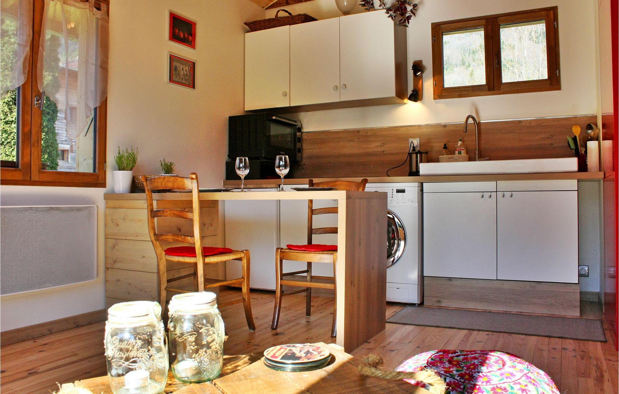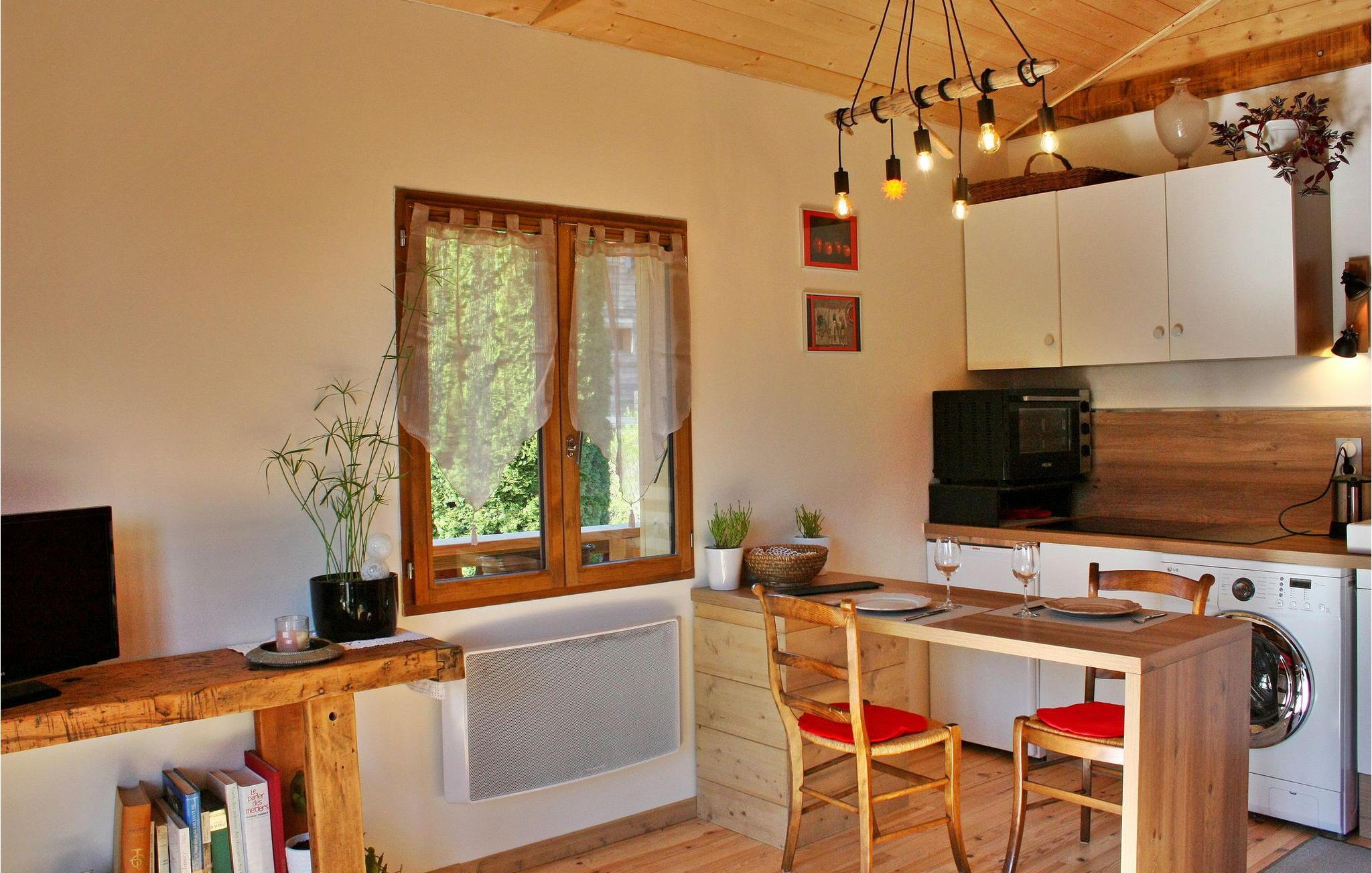 Denne charmerende hytte nær Annecy-søen er perfekt til et romantisk tilflugtssted og tilbyder et hyggeligt sted midt i de smukke Aravis-bjerge. Den er tilgængelig via en ekstern trappe og har opholdsstue, spiseplads samt veludstyret åbent. Soveværelset har et ensuite brusebadeværelse. Opholdsområdet strækker sig til en solrig terrasse med naturskøn udsigt over bjergene. Udendørs omfatter ejendommen et skovområde. Faciliteter såsom en barneseng (efter anmodning) og et strygesæt er tilgængelige. Om vinteren rådes gæsterne til at medbringe sneudstyr for et behageligt ophold. Hytten ligger i byen Alex, meget tæt på landsbyen Menthon Saint-Bernard og omkring 5 km fra Annecy-søen. Halvvejs mellem søen Annecy og Thônes er Alex det ideelle sted for en ferie mellem søen og bjergene. Hytten ligger mindre end 5 km fra Annecy-søen og 30 minutter fra Aravis-skisportsstederne. Nyd lange gåture i bjergene eller cykelture langs Annecy-søen fra din hytteudlejning i Alex.