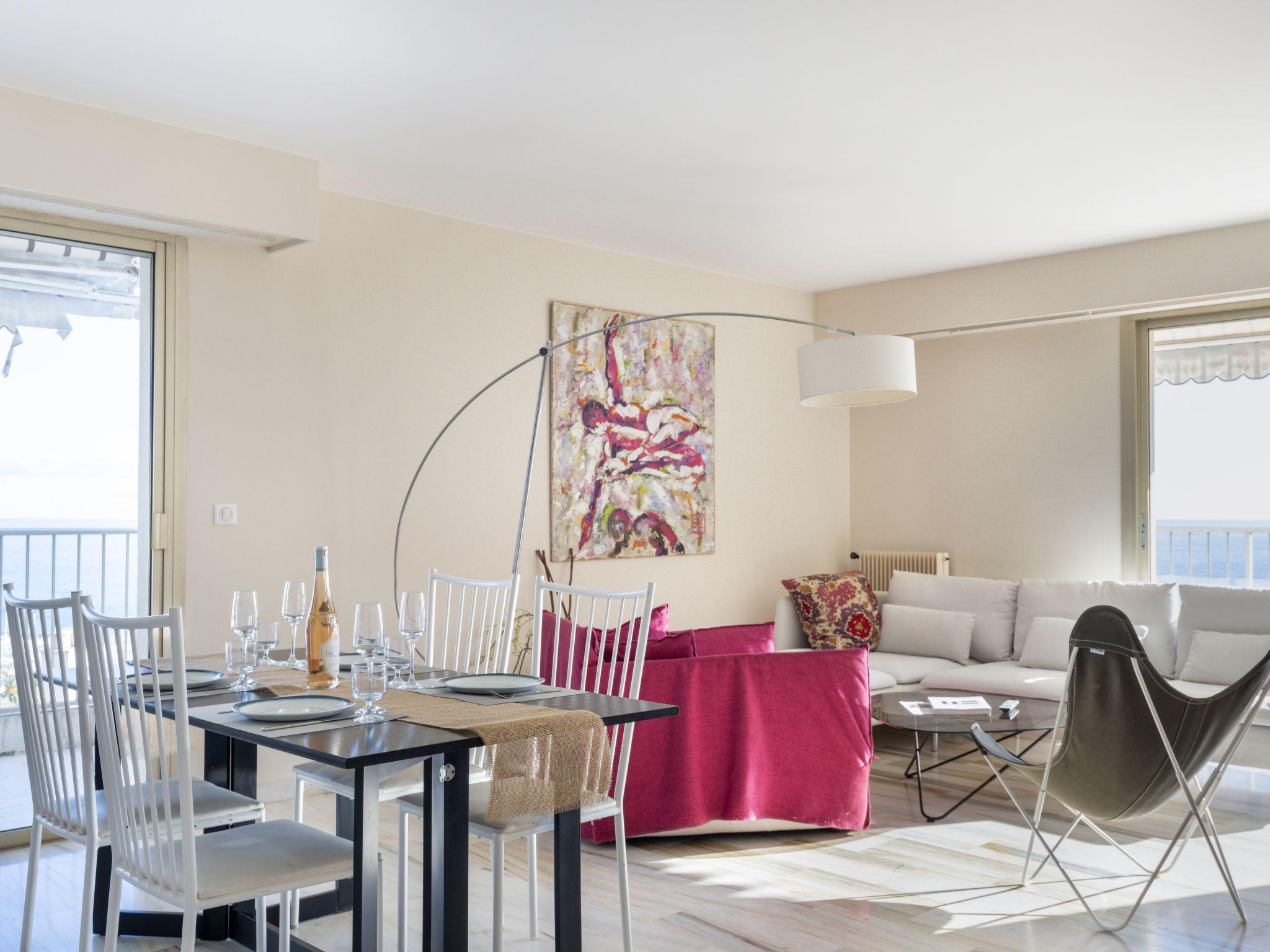 3-room apartment 115 m2 on 3rd floor, south facing position. Spacious, fully renovated, beautiful and modern furnishings: large living/dining room 40 m2 with panoramic window with TV (flat screen). Exit to the terrace. 1 room with 1 double bed (2 x 80 cm), shower/WC. Exit to the terrace. 1 room with 1 double bed (2 x 80 cm), bath/shower. Exit to the terrace. Open kitchen (4 hot plates, oven, dishwasher, toaster, kettle, microwave, freezer, electric coffee machine, Capsules for coffee machine (Nespresso) extra, cooking island). Exit to the terrace. Sep. WC. Terrace 20 m2, roofed, south facing position terrace 12 m2, roofed, east facing position. Terrace furniture, deck chairs. Marvellous panoramic view of the sea, the bay and the town. Facilities: washing machine, dryer, iron, hair dryer. Internet (WiFi, free). Parking space n 33 (1 car). Authorization number 06083000473A0. 06083000473A0