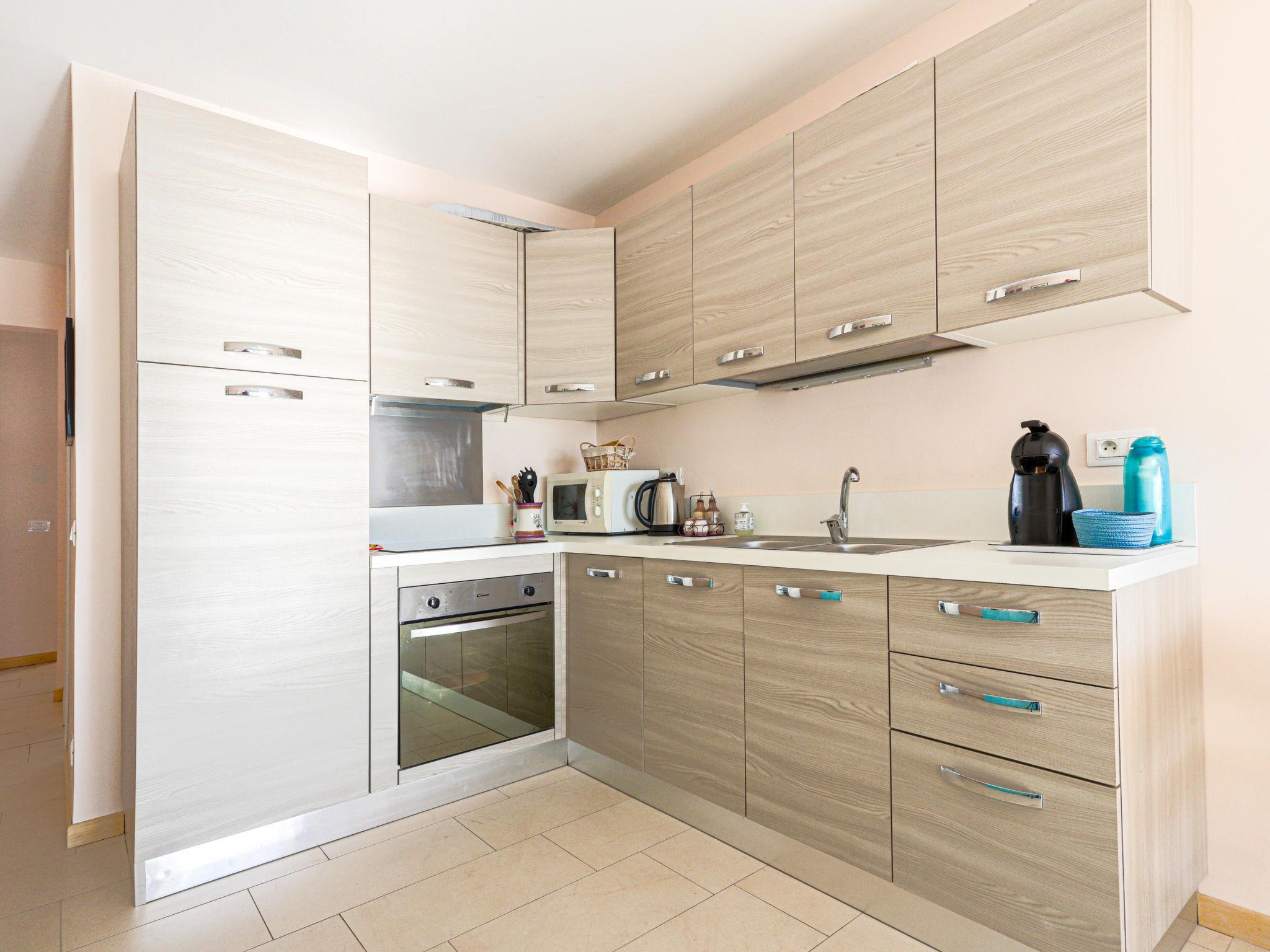 Residence "Le Diplomate", 6 storeys. In the district of Garavan, in a central, sunny position in the residential district, 50 m from the sea, 600 m from the beach, south facing position. In the house: lift, central heating system. Single garage. Shop 1 km, grocery, supermarket 800 m, restaurant 100 m, bakery 500 m, café 800 m, 20 minute walk to the centre, bus stop "Garavan 1 8 18" 100 m, railway station "Menton Garavan" 300 m, shingle beach "Hawai" 350 m. Sports harbour 50 m, golf course (18 hole) 23 km, tennis 3 km. Nearby attractions: Jardin botanique exotique du Val Rahmeh 800 m, Musée Jean Cocteau 2 km, Monaco 14 km, St Agnès 14 km, Ventimiglia (Italie) 10 km, Nice 32 km. Hiking paths: Parc National du Mercantour 30 km. Please note: car recommended.