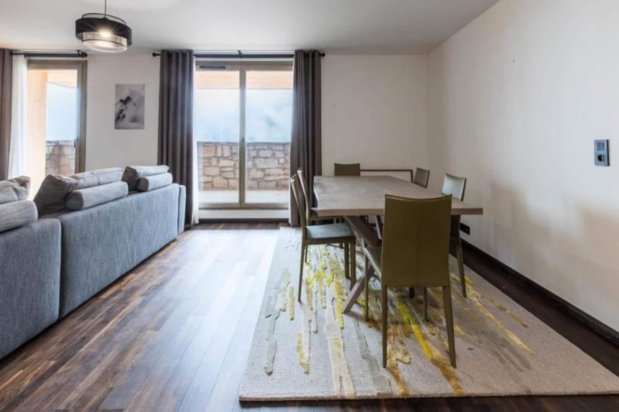 I hjertet af Méribel Mottarets charmerende Hameau-distrikt tilbyder denne helt nye, rummelige lejlighed det perfekte alpine tilflugtssted, kun 100 meter fra pisterne. Forestil dig at vågne op til den friske bjergluft, træde udenfor og være lige ved Perdrix-pisten, klar til at begive dig ud på en dag med spændende skiløb i det verdensberømte skiområde Les Trois Vallées. Med sit moderne design og gennemtænkte faciliteter lover denne bolig både komfort og bekvemmelighed til din bjergferie. Lejligheden kan prale af en rummelig opholdsstue med et stort spisebord og en hyggelig sovesofa, perfekt til at slappe af efter en dag på pisterne. Det fuldt udstyrede køkken indeholder alt, hvad du behøver til et hjemmelavet måltid, fra et stort køleskab til en Nespresso-kaffemaskine. To veludstyrede soveværelser tilbyder fleksible sovemuligheder: et med en kingsize-seng og et andet med to enkeltsenge. De to badeværelser imødekommer alle behov, hvor det ene har et brusebad og det andet et rummeligt badekar, der er tilgængeligt for personer med nedsat mobilitet. Yderligere bekvemmeligheder inkluderer et separat toilet og en vaskemaskine til længere ophold. Lejligheden ligger kun få skridt fra pisterne og en kort gåtur eller gondoltur til butikkerne og restauranterne i sneen. I nærheden finder du et Carrefour-supermarked og lokale spisesteder som L'Hermine. Den gratis shuttlebus, der kører hvert 15. minut, sikrer nem adgang til hele dalen, hvilket gør dit ophold problemfrit. Uanset om du er her for at grave dig gennem uberørt sne, slappe af med en privat kok eller forkæle dig selv med en beroligende massage i hjemmet, tilbyder denne lejlighed en problemfri blanding af luksus og praktisk anvendelighed. Med liftkort, lektioner og udlejning af udstyr tilgængeligt via vores concierge-service, er der taget hånd om hver eneste detalje i din ferie. Oplev magien i Les Trois Vallées fra denne exceptionelle alpine base.
