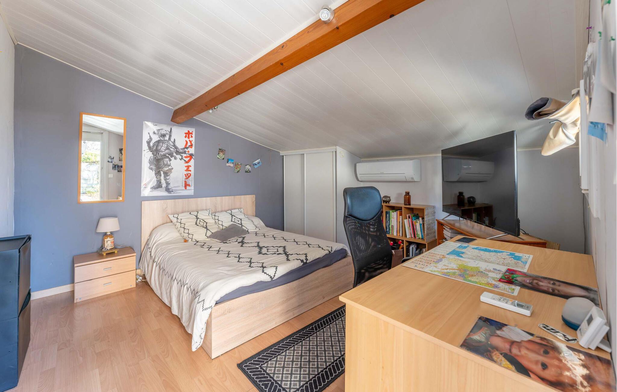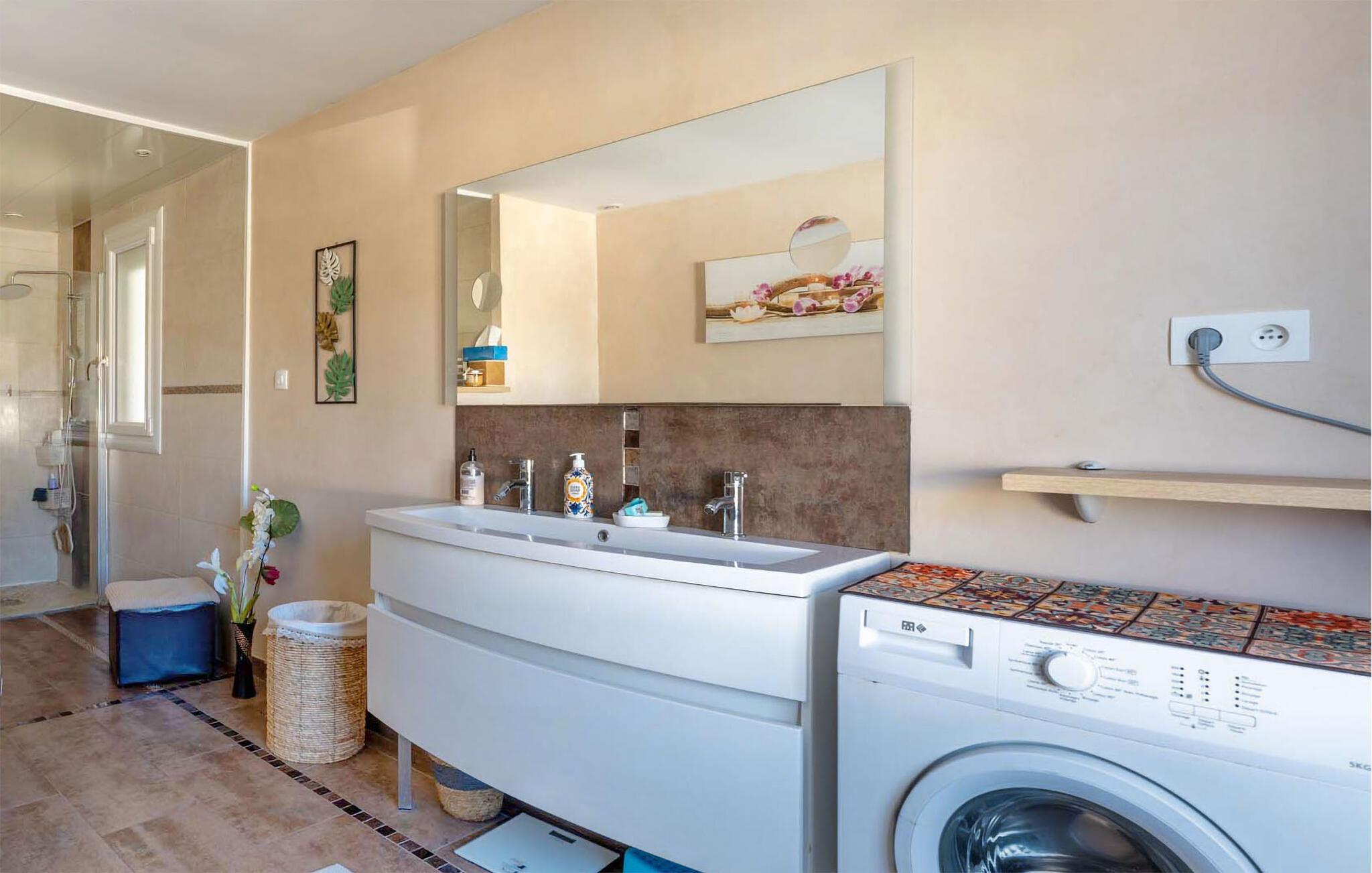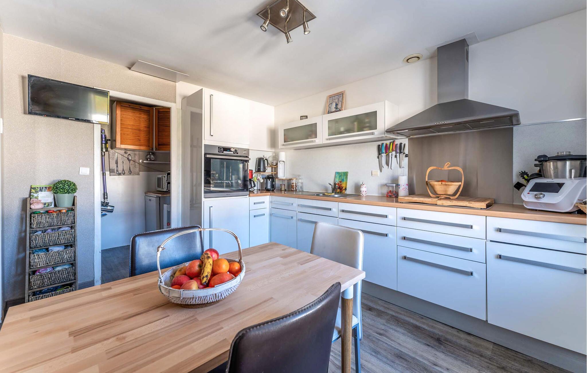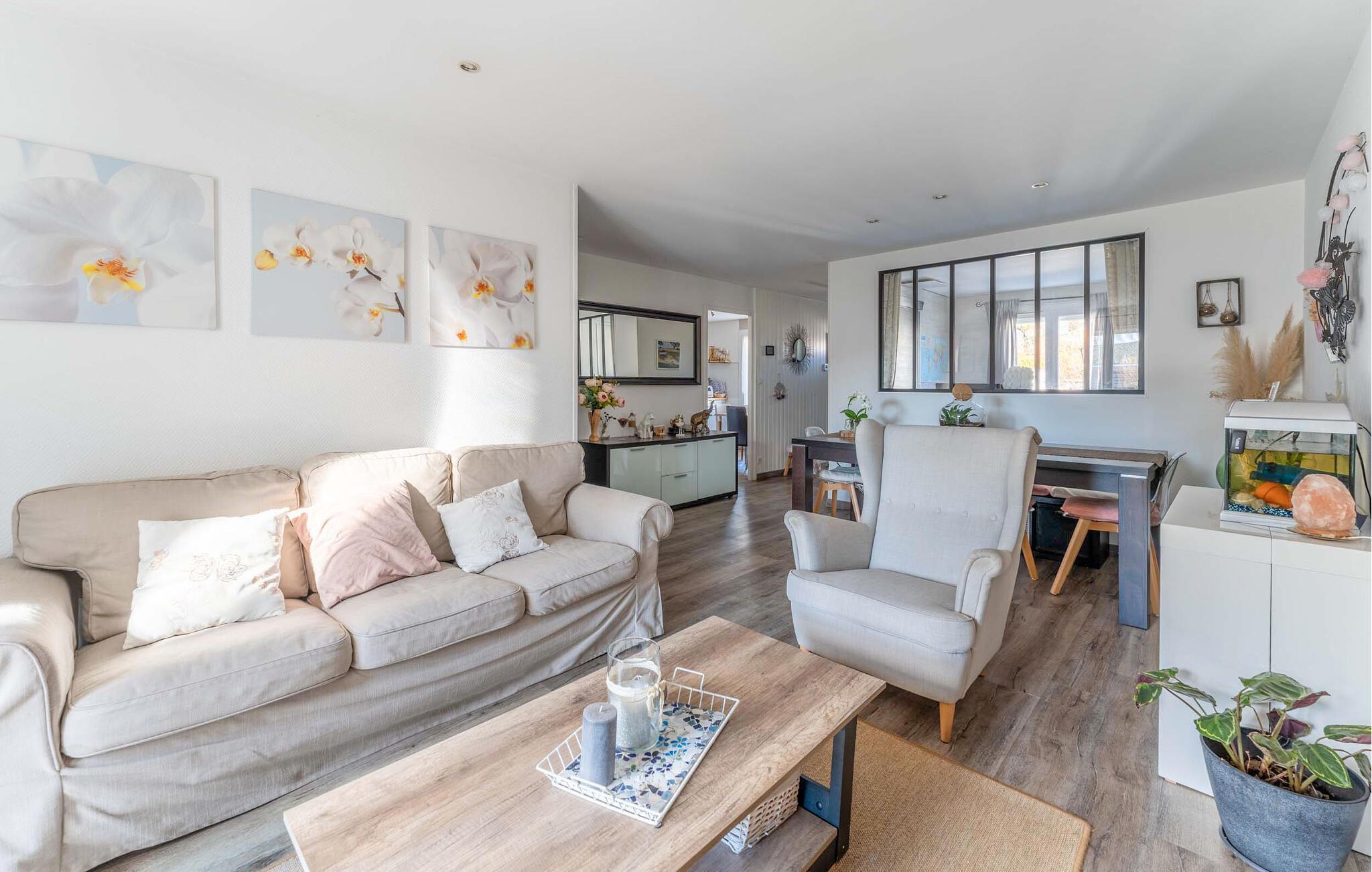 Dette charmerende en-etagers feriehus tilbyder jer en stilfuld og hyggelig atmosfære til et afslappende ophold. Den lyse opholdsstue lægger op til at blive hængende med sine moderne møbler og varme farver. I kan nemt tilberede lækre måltider i det åbne, veludstyrede køkken, som I så kan nyde ved spisebordet eller udenfor. De hyggelige værelser lover afslappende nætter, mens badeværelset med behagelig indretning sikrer ekstra komfort.