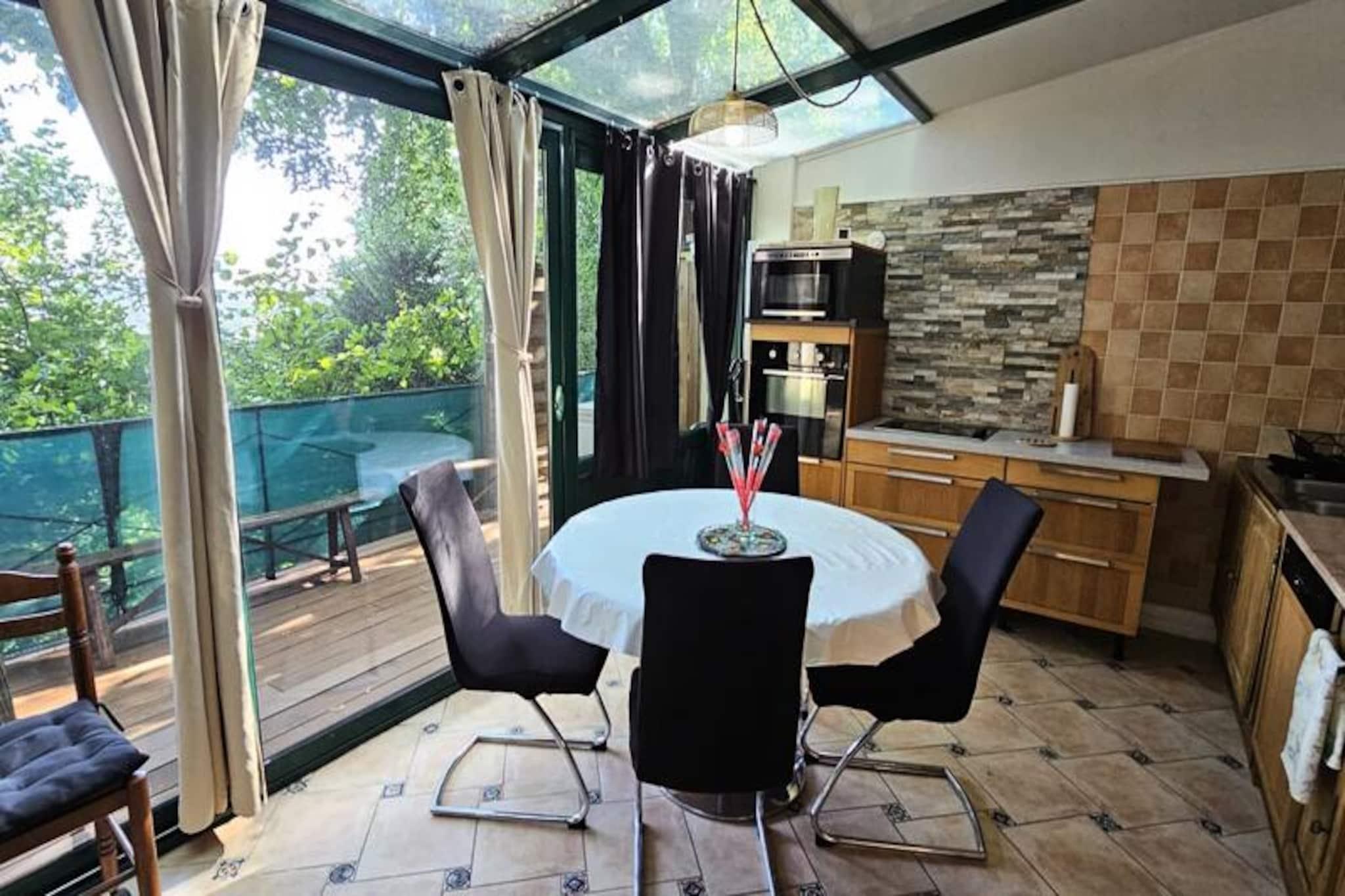 Beliggende på de naturskønne bakker over Meulan-en-Yvelines tilbyder denne fantastiske loftslejlighed på 54 m² en rolig oase med betagende panoramaudsigt over Seinen. Omgivet af natur, men kun en kort gåtur fra det pulserende bycentrum, balancerer dette tilflugtssted perfekt ro og bekvemmelighed. Forestil dig at nippe til din morgenkaffe på den private 18 m² store træterrasse, mens du soler dig i solskinnet og den fredelige atmosfære på landet. Med Paris kun 45 minutter væk med tog kan du nyde det bedste fra begge verdener: en fredfyldt oase og hovedstadens spænding. Loftslejlighedens lyse og luftige interiør er designet til komfort og stil. Store karnapvinduer oversvømmer rummet med naturligt lys, mens den sydvendte orientering sikrer varme og lysstyrke hele dagen. Det åbne køkken er fuldt udstyret, hvilket gør det nemt at tilberede måltider, og badeværelset har et charmerende badekar med løvefødder til ultimativ afslapning. Den rummelige enkeltværelsesindretning inkluderer en luksuriøs queensize-seng (160 cm) og reversibel aircondition, der sikrer et afslappende ophold i enhver sæson. Højhastigheds fiberoptisk internet holder dig forbundet, uanset om det er til arbejde eller fritid. Bekvemt beliggende kun 800 meter fra bymidten og 10 minutter fra Thun-le-Paradis togstation, er loftet let tilgængeligt med offentlig transport. For dem, der rejser i bil, er en privat parkeringsplads i et lukket område inkluderet, med yderligere parkering udenfor. Den omkringliggende Terres de Seine-region tilbyder et væld af historiske og kulturelle steder at udforske, hvilket gør dette til en ideel base for dine eventyr. Uanset om du søger en romantisk ferie, et fredeligt tilflugtssted eller et bekvemt knudepunkt for at udforske Paris og omegn, lover dette loft et uforglemmeligt ophold. Lad Seinens charme og det franske landskabs skønhed inspirere din næste flugt.