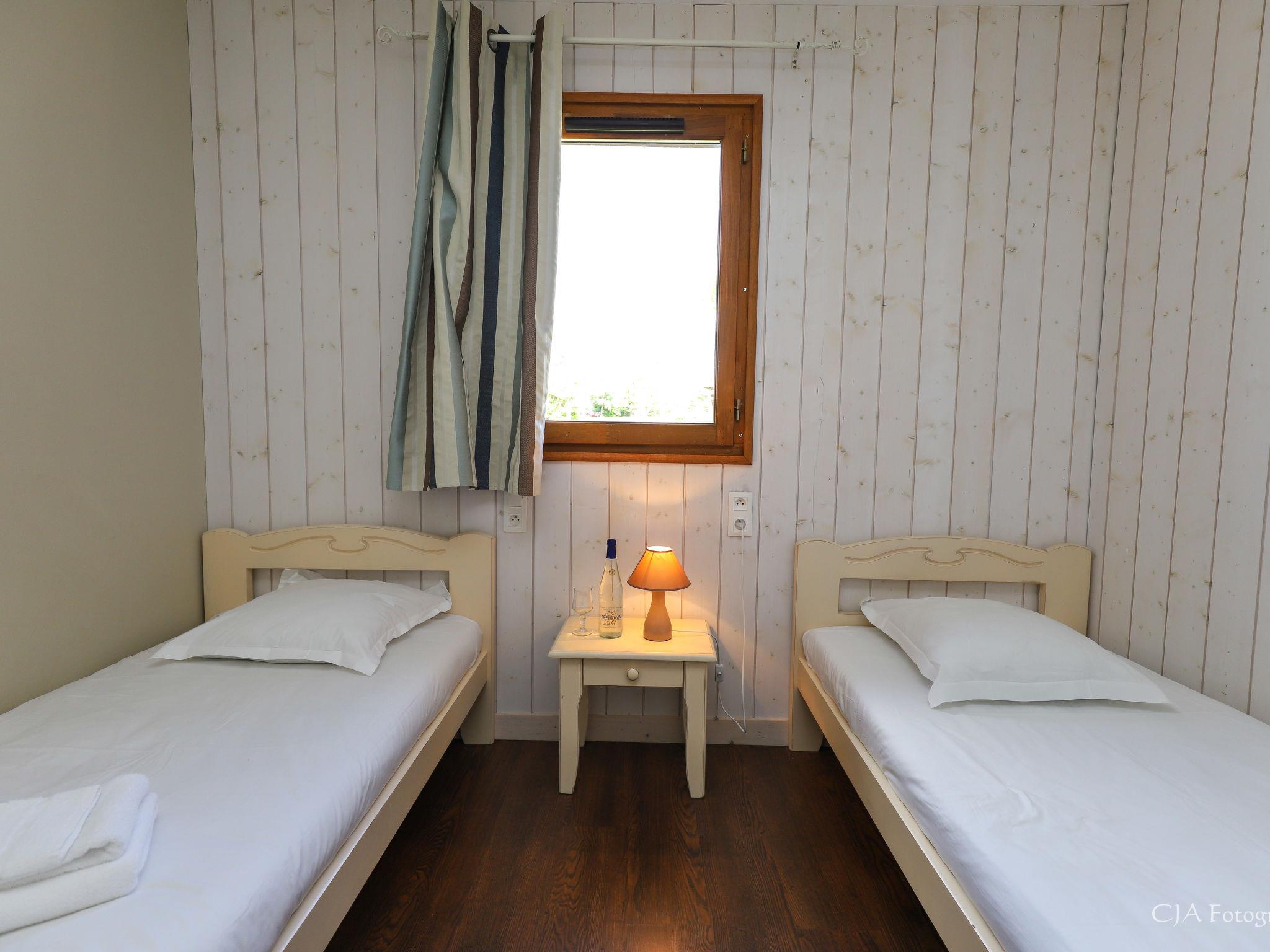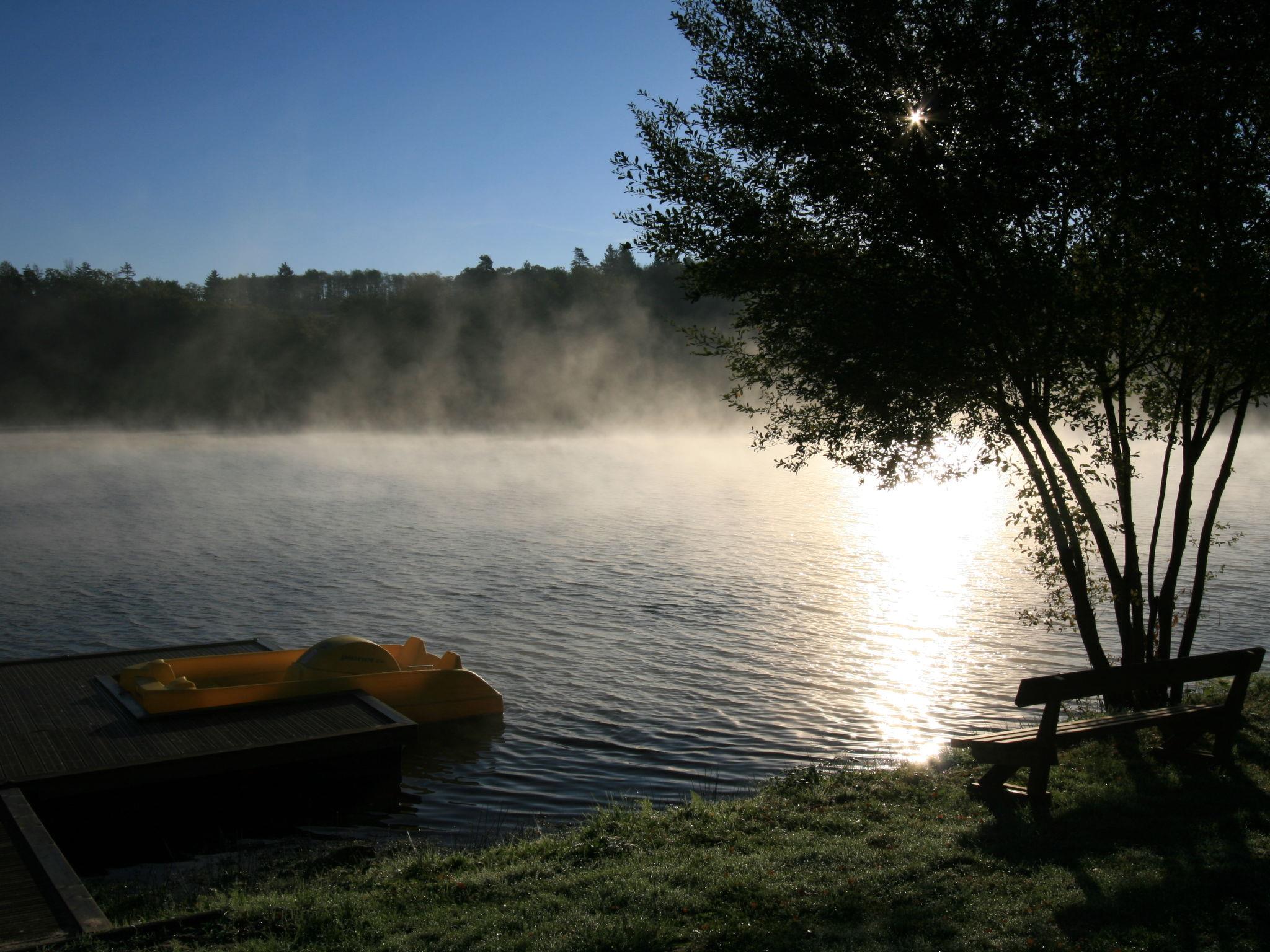 Beautiful farm estate "Les Monédières", surrounded by meadows. 70 houses in the resort. On the outskirts, 2 km from the centre of Meyrignac, in a quiet position, in the countryside, in a pedestrian area. For shared use: property 12 ha, lawn for sunbathing, pond, swimming pool heated (25 x 6 m, seasonal availability: 15.Jun. - 15.Sep.). Tennis, table tennis, boccia, children's playground. In the complex: reception, restaurant, bar, sauna (extra). Massage (extra). Spa area (extra) hamam, washing machine, tumble dryer (for shared use, extra). Room cleaning daily on request (extra). Parking on the premises. Shop 5 km, grocery 5 km, supermarket 20 km. Walking paths from the house 200 m. Nearby attractions: Corrèze 5 km, Sarran (Musée Jacques Chirac) 12 km, Tulle 24 km, Brive-la-Gaillarde 54 km, Collonges la Rouge 65 km. Hiking paths: Plateau de Millevaches. Please note: suitable for families, baby equipment on request. Suitable for events. The photograph shows a typical example. Note: A heated indoor swimming pool (10mx6m) is also available in the relaxation area all year round. The baby kit (on request) includes a cot and a high chair. Possibility to rent electric bikes on site. Small nautical base for canoeing and pedal boating, direct access to the estate's lake. For information: the chalets can be individual or twinned. No PRM accommodation.