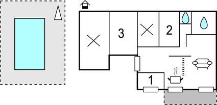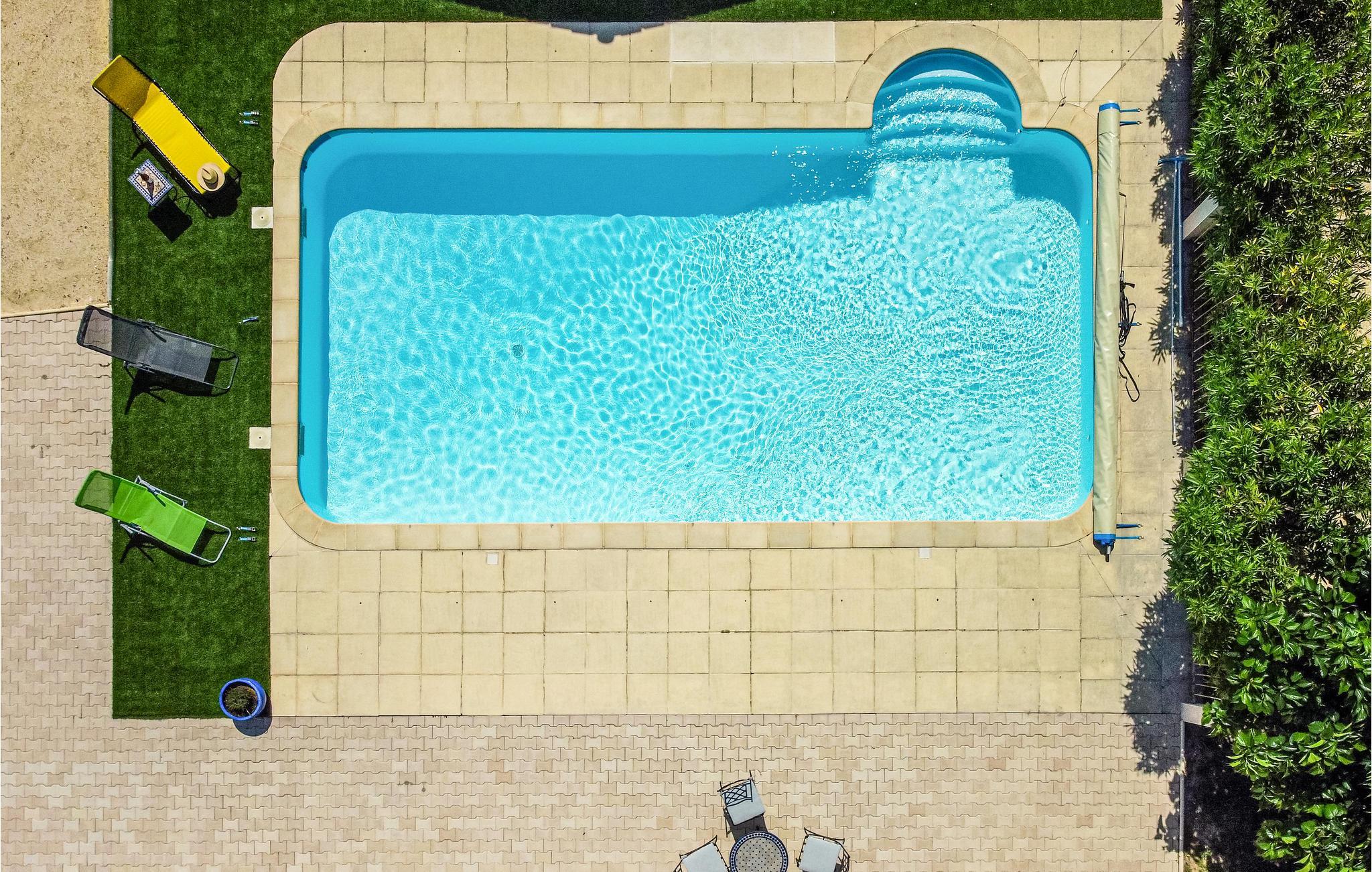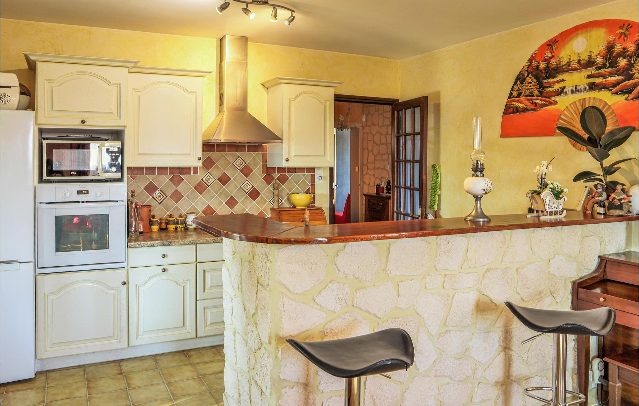 Der er en privat pool, omgivet af liggestole og tæt på grillen, samt en delvis overdækket åben terrasse. Det rummelige, livlige og dekorative interiør er meget behageligt, og indretningen fremstår rustik og naturlig.