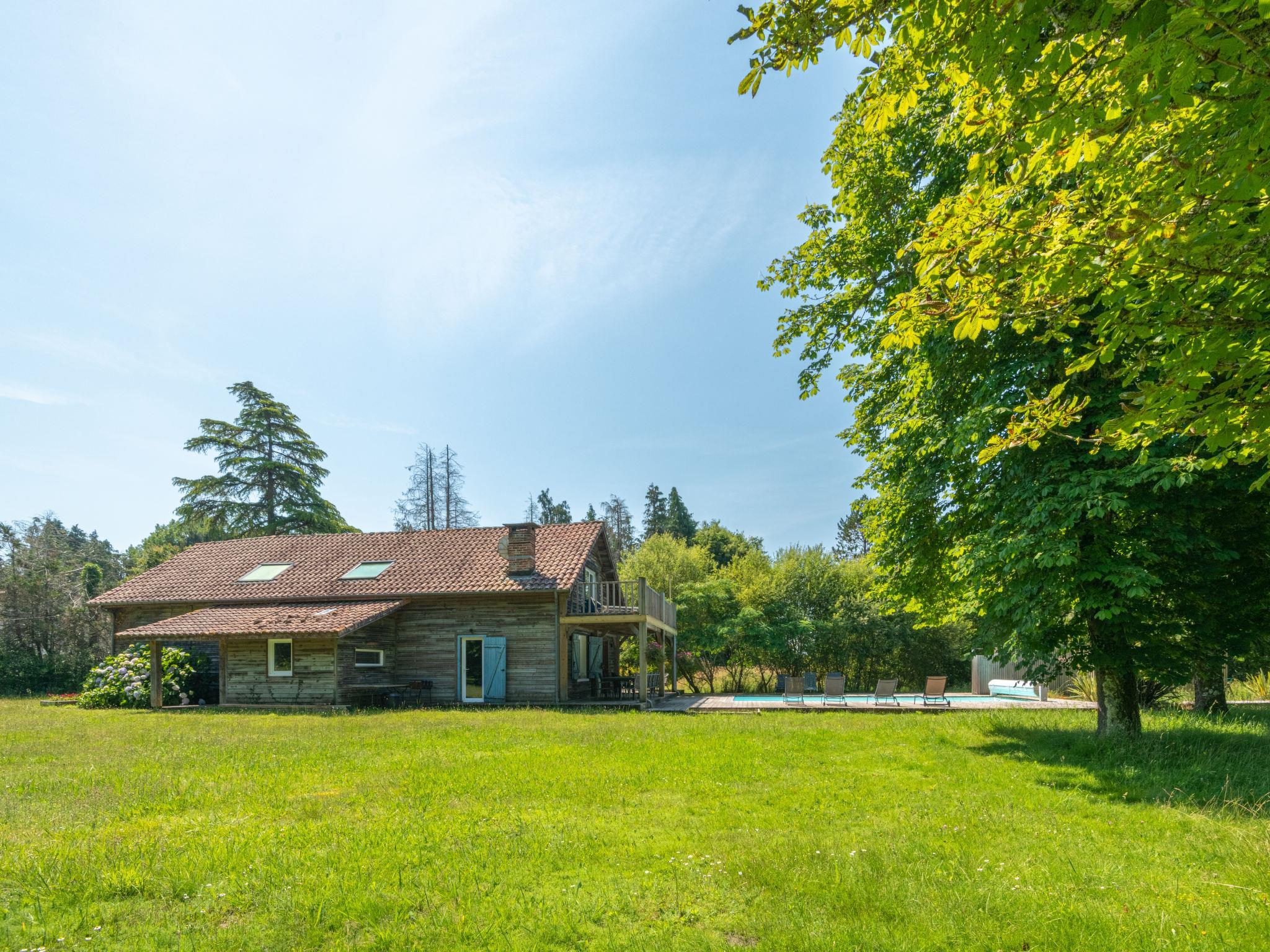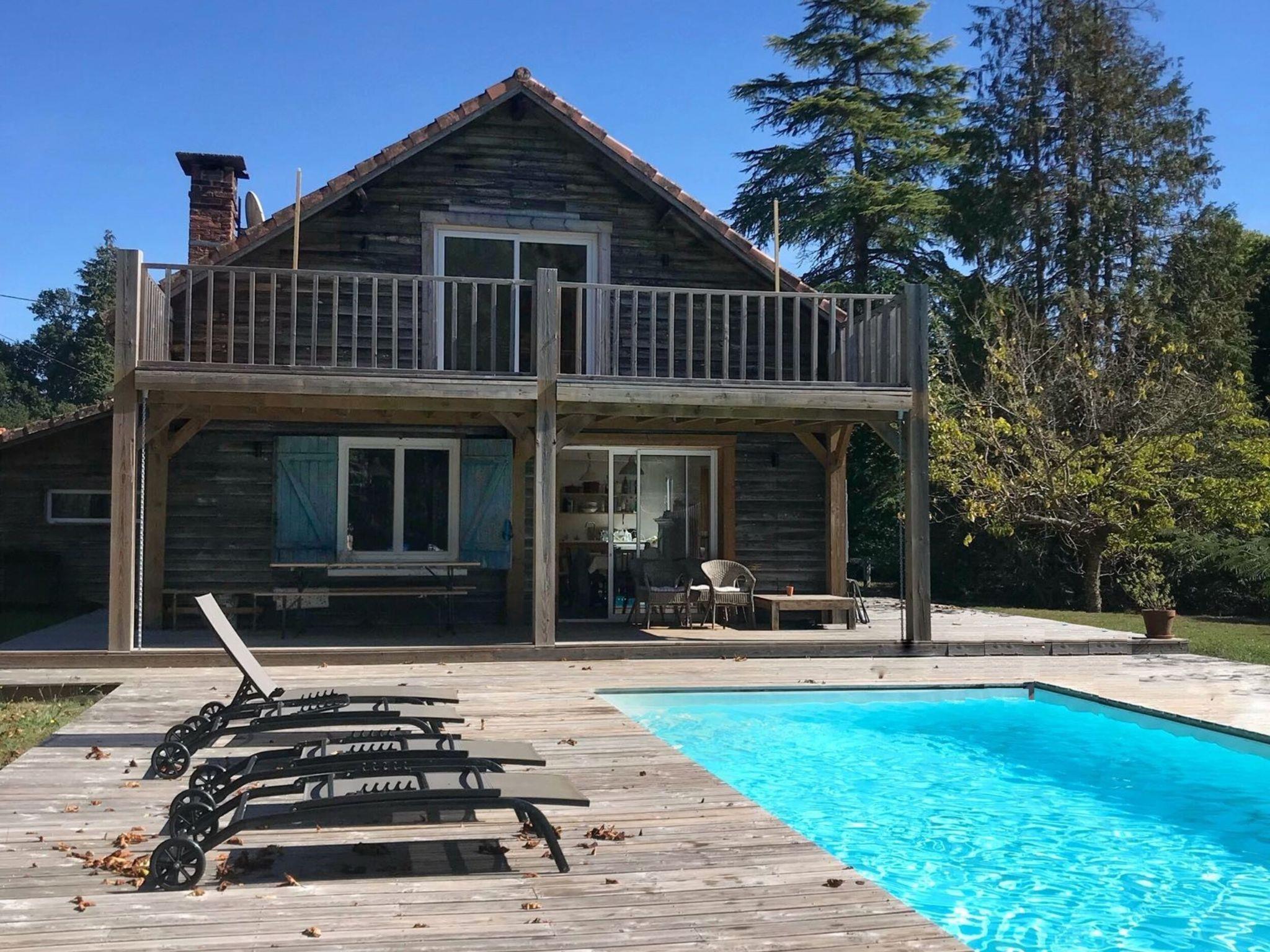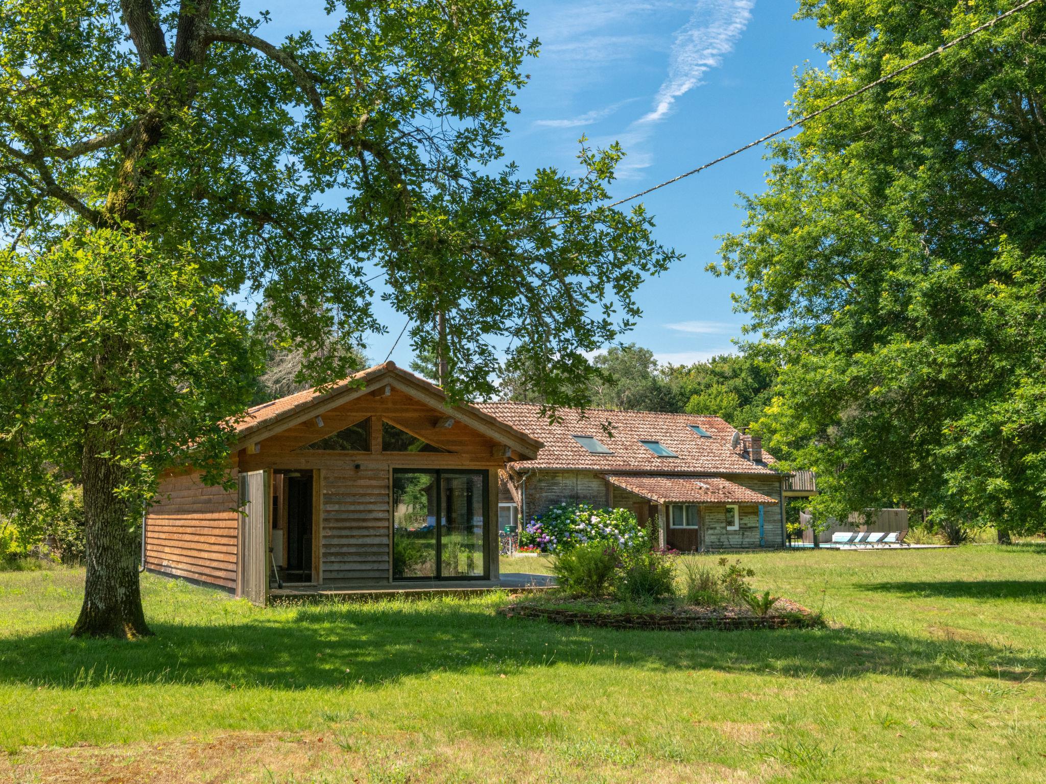 Beautiful single-family house "La Grange du Belon". Property composed of main house and outbuilding, in the hamlet Le Belon 2.5 km from the centre of Mézos, 5.5 km from the centre of Saint Julien en Born, 10 km from the centre of Contis Plage, in a quiet position, 10 km from the sea. Private: natural state property 800 m2 with trees, swimming pool heated (10 x 4 m, depth 150 cm, seasonal availability: 01.May. - 30.Sep.) with internal staircase and shutter cover. Outdoor shower, pool maintenance by the owner/gardener. Parking (for 3 cars) at the house on the premises. Shop 2.5 km, supermarket 5 km, bus stop "Gare de Saint Julien en Born" 4 km, sandy beach "Contis Plage" 10 km. The owner does not accept any youth groups.