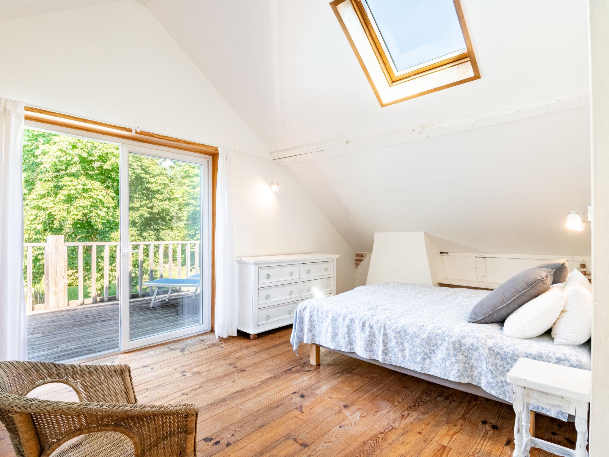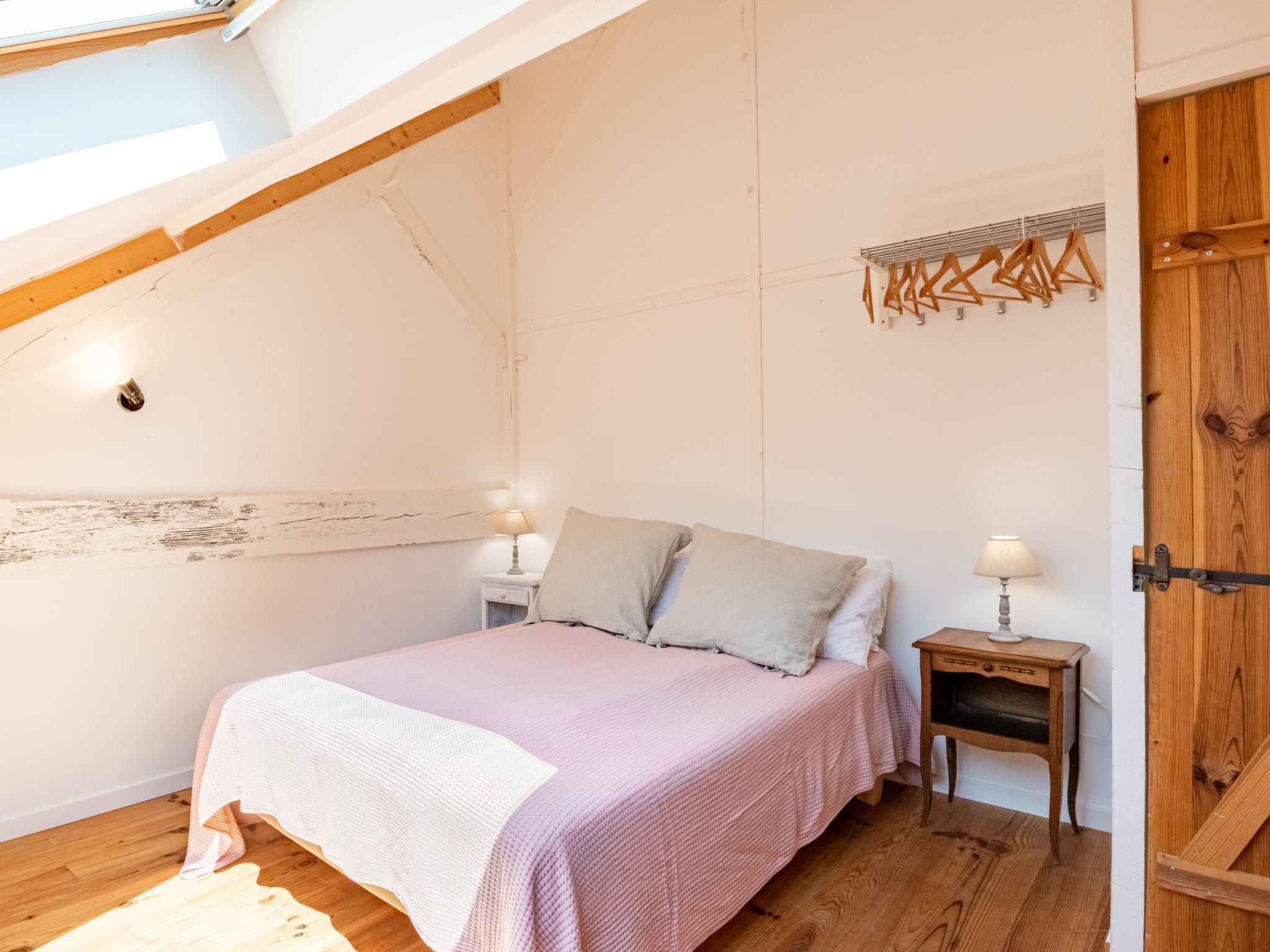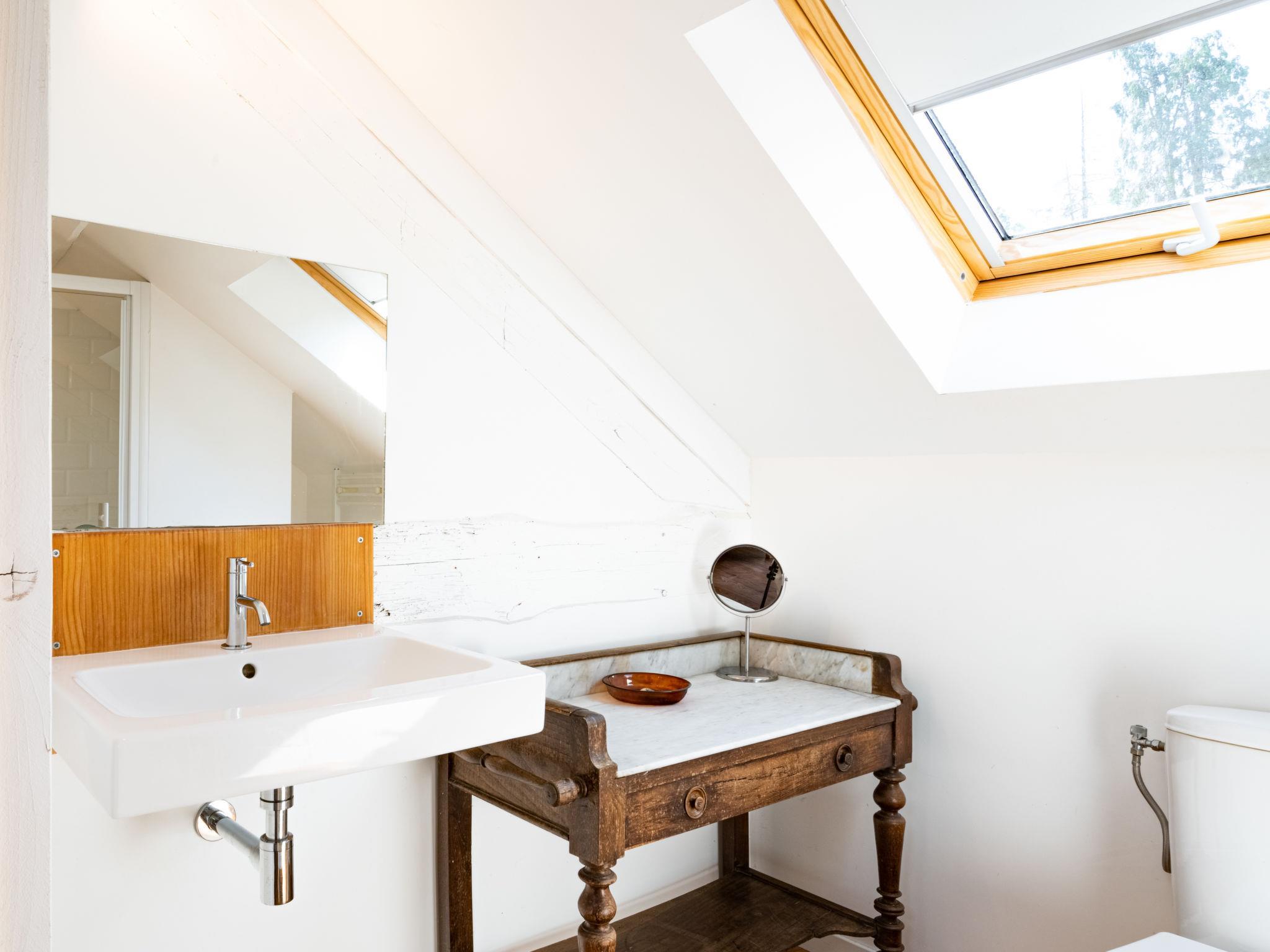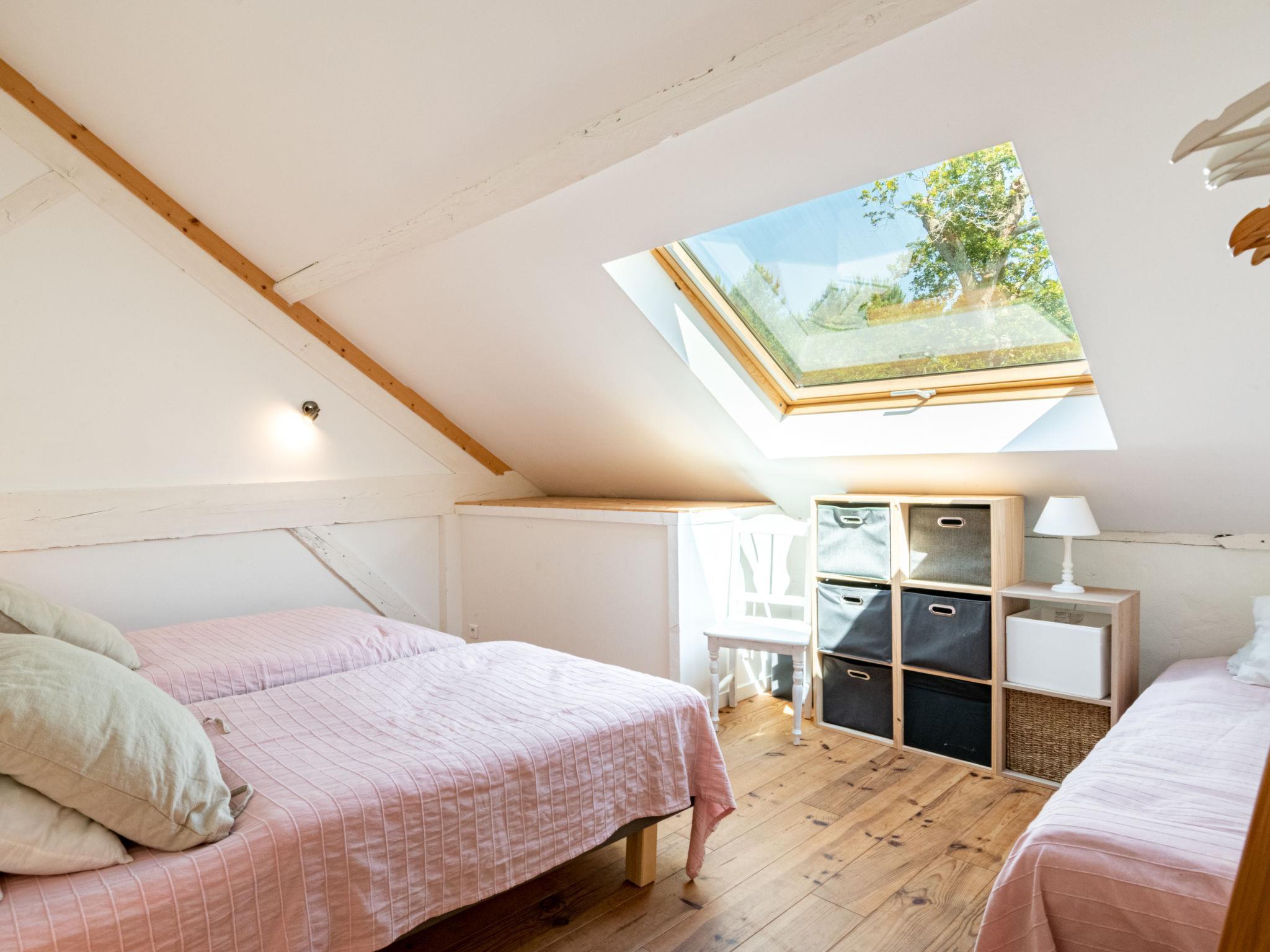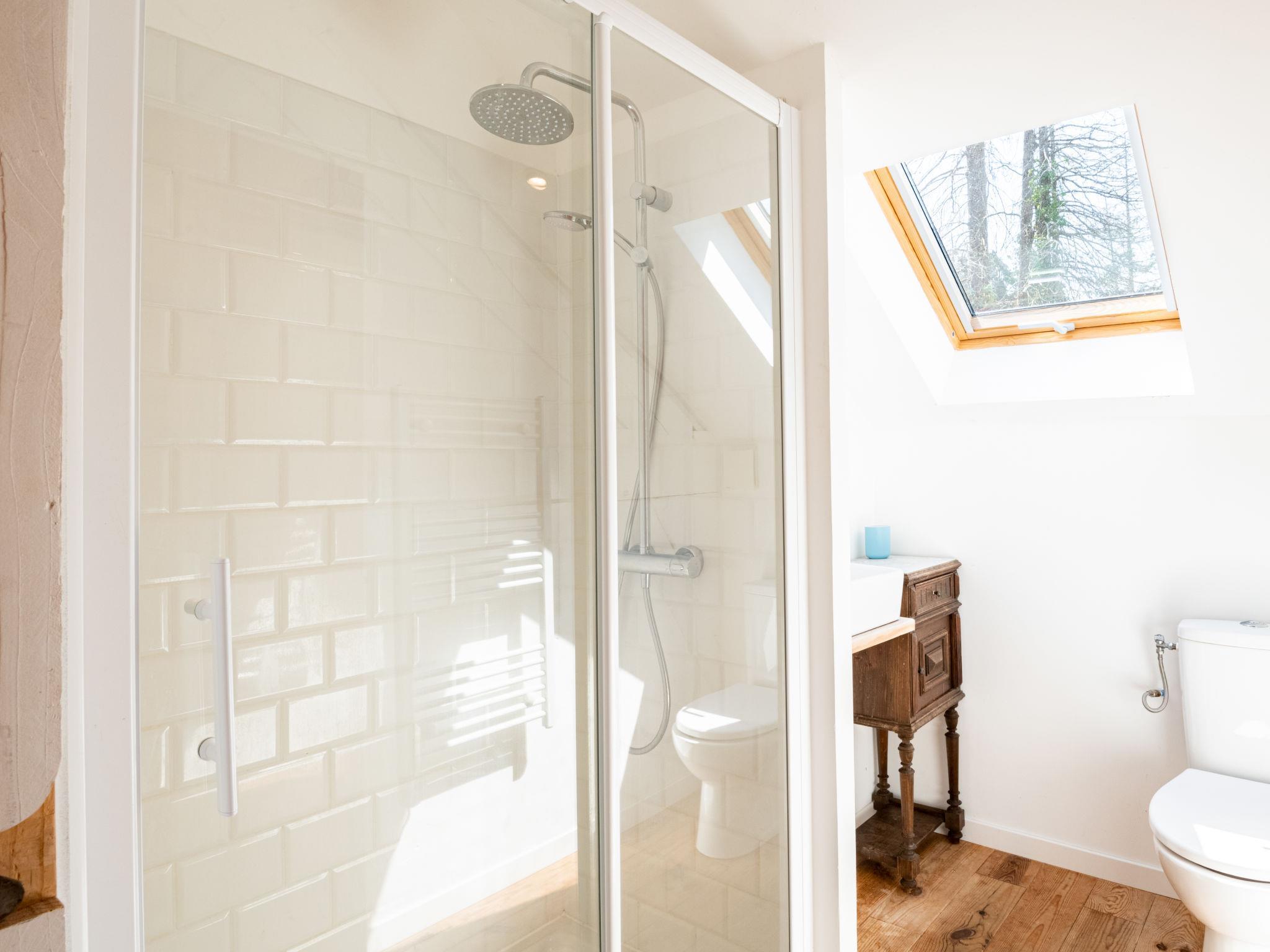 "La Grange du Belon", 7-room villa 220 m2 on 2 levels. Spacious and bright, comfortable furnishings: large living/dining room with dining table, wood-burning stove and fan. Exit to the terrace. 1 room with 1 french bed (140 cm, length 190 cm). Studio with 1 french bed (140 cm, length 190 cm), dining table, kitchen corner and shower/WC. Exit to the garden. Large, open kitchen (oven, dishwasher, 4 gas rings, toaster, kettle, microwave, freezer, electric coffee machine). Shower/WC. Upper floor: 2 rooms with sloping ceilings, each room with 1 french bed (140 cm, length 190 cm). 1 room with sloping ceilings with 3 beds (90 cm, length 190 cm). 1 room with sloping ceilings with 2 beds (90 cm, length 190 cm), shower/WC. Exit to the balcony. Shower/WC. Electric heating. Balcony, large terrace. Terrace furniture, barbecue electric barbecue (portable), deck chairs (6). View of the forest. Facilities: washing machine, iron, children's high chair, baby cot. Internet (WiFi, free). Please note: one double bedroom is outside the apartment. Non-smoking house. Maximum 1 pet/ dog allowed. Smoke alarm. When there are less than the maximum number of guests staying at the property, the annex will not be available for use. Offer by a private individual according to Art. 155, IV of CGI.