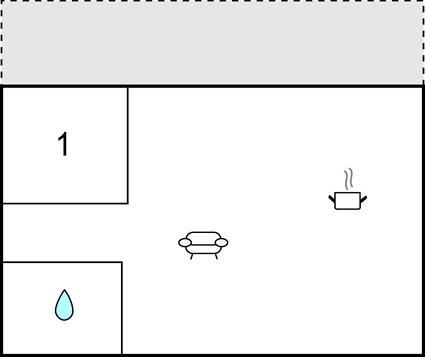 Soveværelse (nr. 1) - 1 Soveplads. (Enkeltseng(e)). 2 Sovepladser. (Sofa, madras eller lignende).