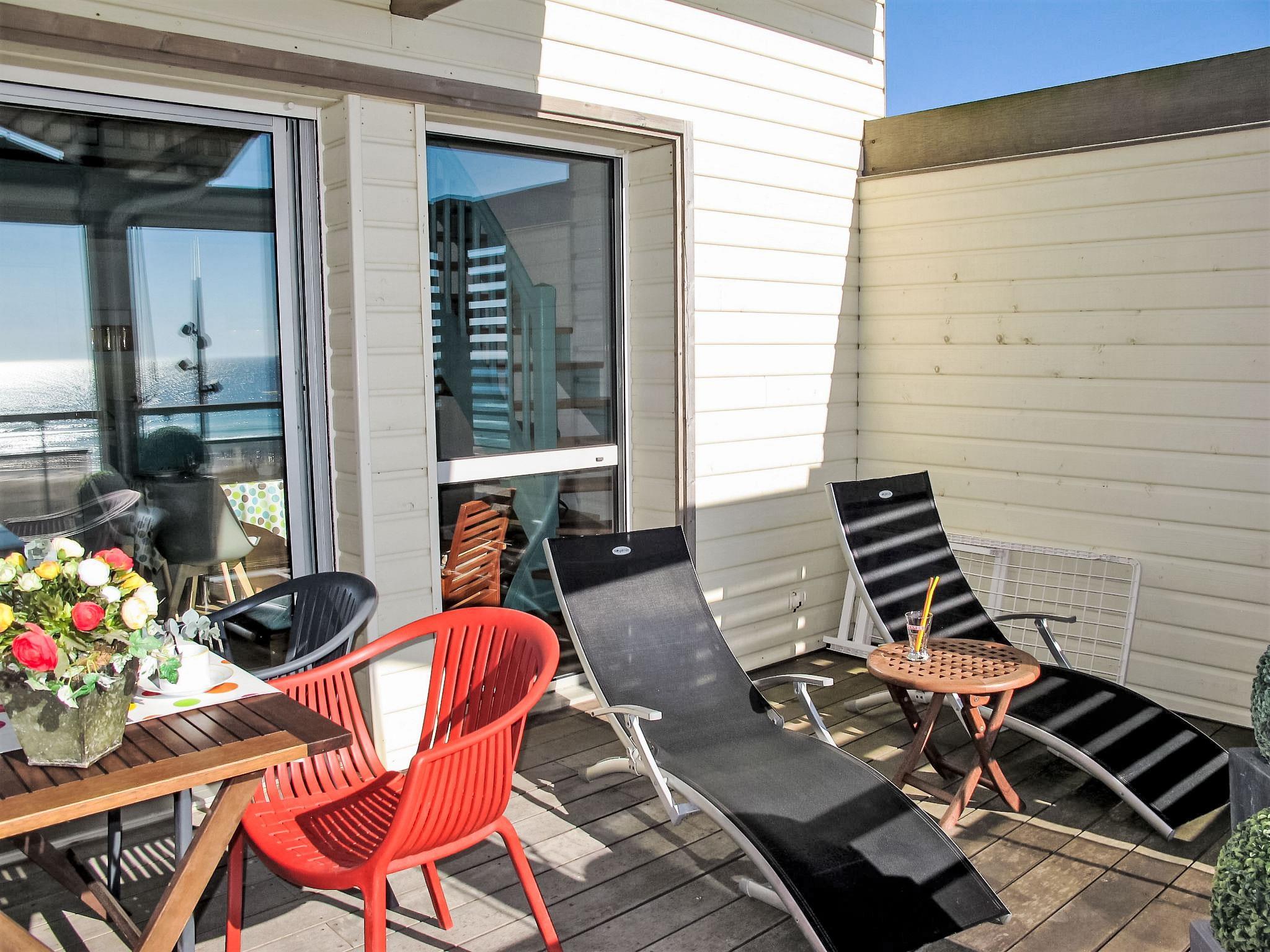 2-room apartment 55 m2 on 2 levels on 3rd floor. Comfortable and beautiful furnishings: living/dining room with TV (flat screen), DVD. Exit to the balcony. 1 room with 1 french bed (1 x 140 cm, length 190 cm). Exit to the balcony. Kitchenette (3 induction hot plates, toaster, kettle, microwave, electric coffee machine). Shower, sep. WC. Upper floor: gallery with 2 beds (90 cm, length 190 cm), hand-basin and TV (flat screen). Electric heating. Balcony 6 m2, south facing position and west facing position. Terrace furniture, deck chairs (2). Beautiful view of the sea. Facilities: washing machine. Internet (WiFi, extra). Parking space n 15. Please note: non-smokers only. Maximum 1 pet/ dog allowed. Smoke alarm. Instead of an enclosed bedroom, some sleeping areas are located in an open-plan area (gallery, alcove, etc.). Offer by a private individual according to Art. 155, IV of CGI.