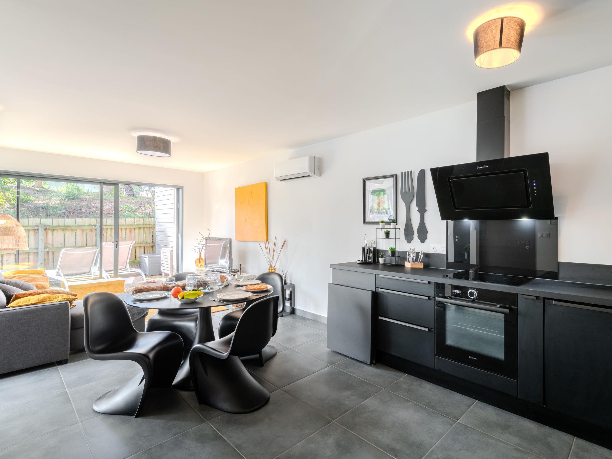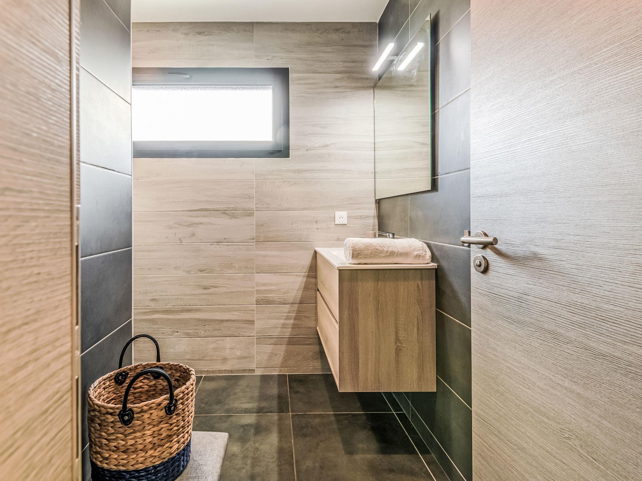 3-room house 67 m2. Modern furnishings: living/dining room with 1 sofabed (130 cm, length 190 cm), TV and international TV channels (flat screen), air conditioning and electric shutters. Exit to the terrace. 1 room with 1 french bed (160 cm, length 200 cm). 1 room with 1 french bed (160 cm, length 200 cm). Open kitchen (oven, dishwasher, 3 induction hot plates, microwave, electric coffee machine, Capsules for coffee machine (filtre) extra). Shower, sep. WC. Electric heating. Wooden floors. Terrace furniture, barbecue. Facilities: washing machine, iron. Internet (WiFi, free). Parking (1 car). Please note: non-smoking house. Smoke alarm. The subdivision is under construction. Buildings around.