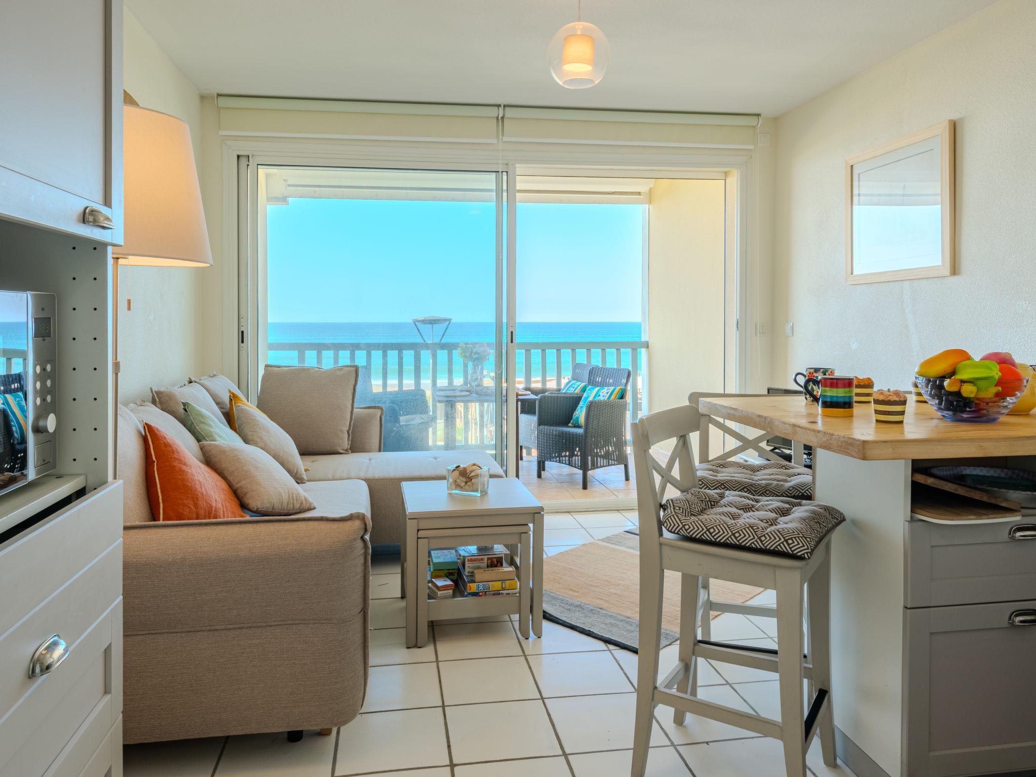 3-room apartment 50 m2 on 2nd floor, south-west facing position. Beautiful and modern furnishings: living/dining room with TV (flat screen). 1 room with 1 french bed (1 x 140 cm, length 190 cm). 1 room with 1 french bed (1 x 140 cm, length 190 cm). Open kitchen (oven, dishwasher, 1 induction hot plates, toaster, kettle, microwave, freezer, electric coffee machine). Shower, sep. WC. Heating, electric heating. Balcony 6 m2, south-west facing position. Terrace furniture. Beautiful view of the ocean. Facilities: washing machine, iron, hair dryer. Internet (WiFi, free). Parking space n 203. Please note: non-smokers only. Smoke alarm. Offer by a private individual according to Art. 155, IV of CGI.