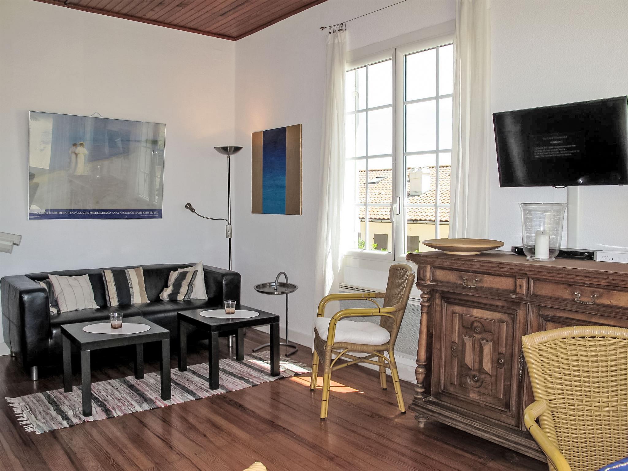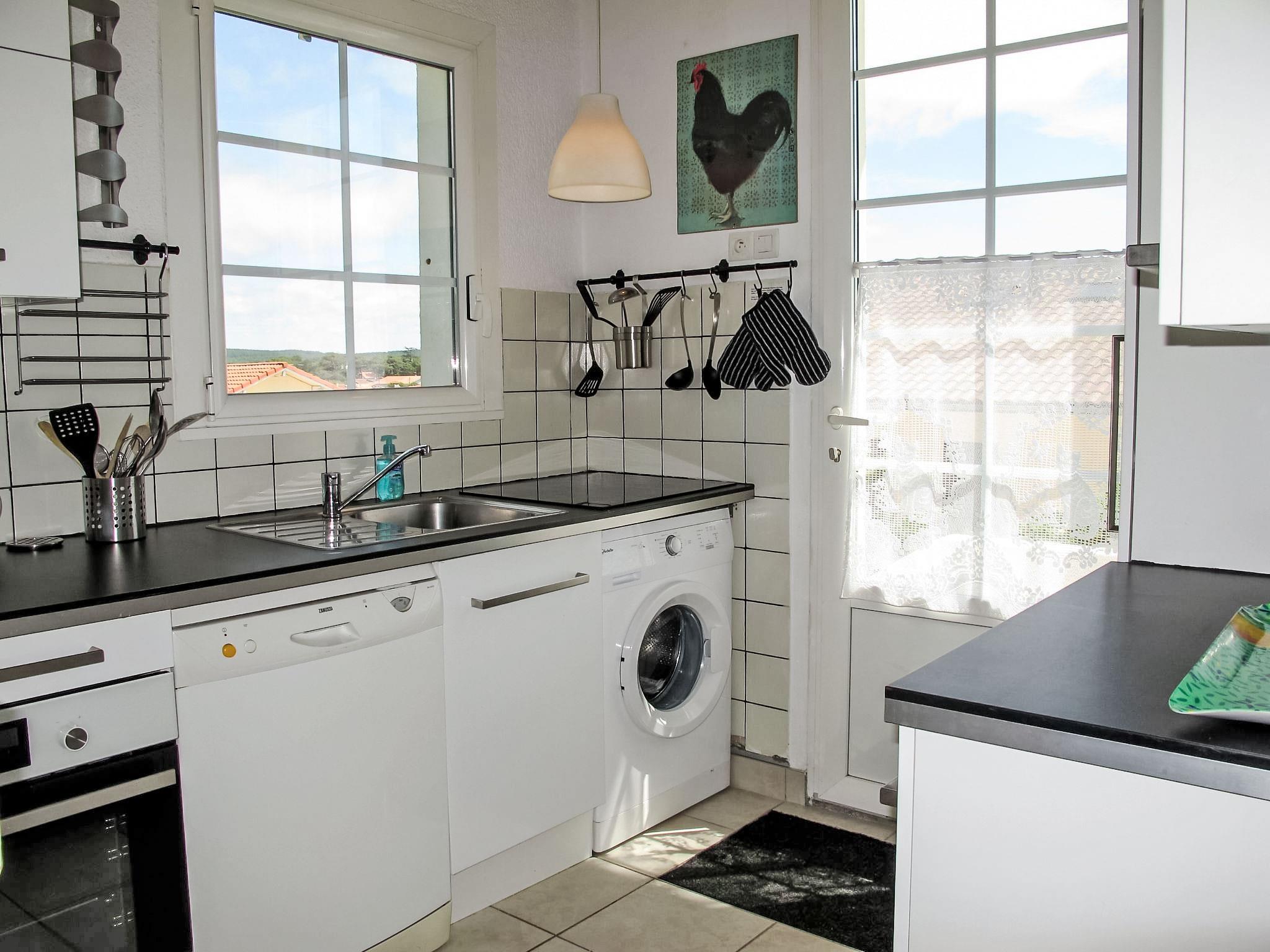 3-room apartment 65 m2, on the upper ground floor. Simple and beautiful furnishings: living/dining room with 2 double beds (2 x 140 cm, length 190 cm), TV (flat screen), radio and CD-player. Exit to the terrace. 1 room with 1 french bed (1 x 140 cm, length 190 cm), shower. 1 room with 1 french bed (1 x 140 cm, length 190 cm), shower. Kitchen (oven, dishwasher, 4 induction hot plates, microwave, freezer). Sep. WC. Electric heating. Large terrace 20 m2, south facing position and west facing position. Terrace furniture, deck chairs (2). Partial view of the sea. Facilities: washing machine. Internet (WiFi, free). Please note: non-smokers only. TV only DE, FR. Smoke alarm. separate entrance, accessible from the terraces.
