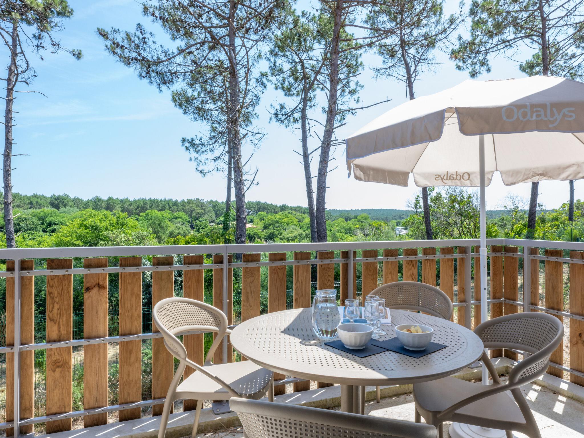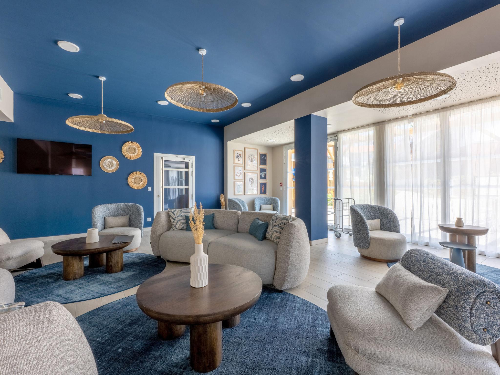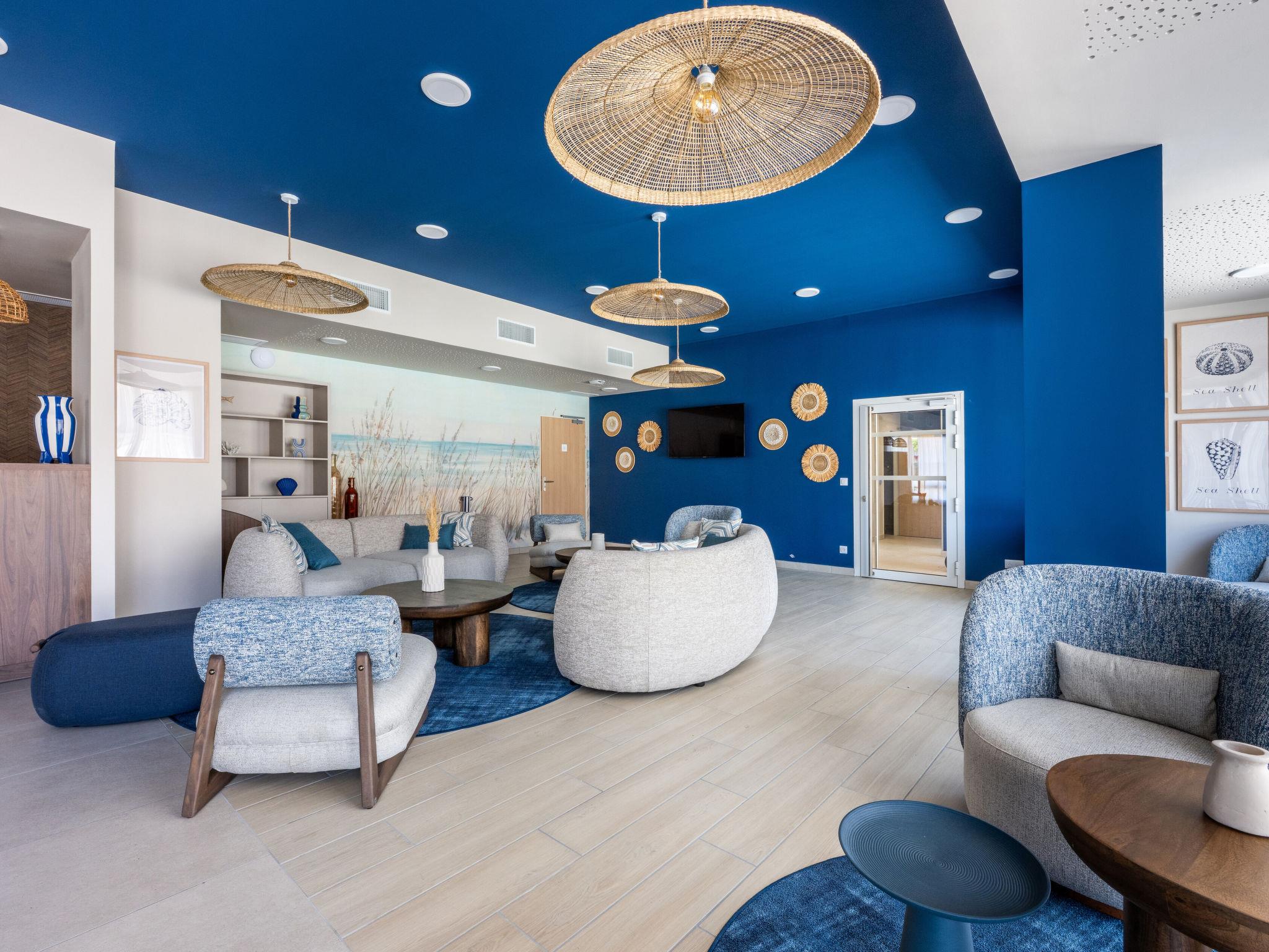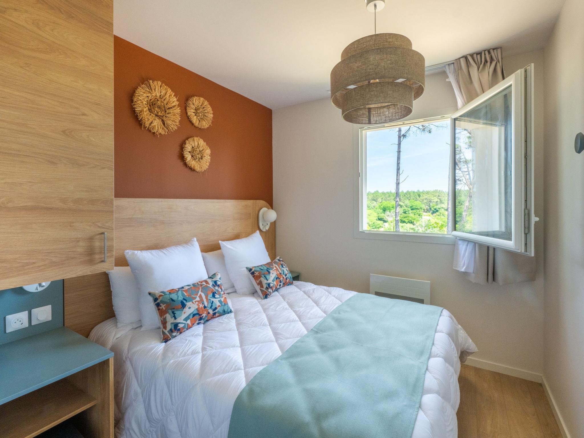 Residence "Bleu Canopée", 3 storeys, built in 2025. 100 apartments in the residence. 5 km from the centre of Mimizan, in the residential district, 650 m from the sea, 650 m from the beach. For shared use: property with lawn, swimming pool fenced (98 m2, depth 80 - 140 cm, seasonal availability: 01.May. - 30.Sep.) with internal staircase. Children's pool. In the complex: reception, WiFi, sauna (extra). Fitness room, washing machine, tumble dryer (for shared use, extra). Parking. Supermarket 1.4 km, restaurant 1 km, bus stop "Office de tourisme Mimizan" 1.3 km, railway station "Labouheyre" 30 km, sandy beach 650 m, park "Landes aventures" 6 km, bathing lake "Aureilhan" 10 km. Golf course (9 hole) 7 km. Nearby attractions: Bassin Arcachon 70 km, Biscarrosse 35 km, Casino Mimizan - Plage 1 km, Centre Nautique 6 km, Bordeaux 110 km. Please note: the photograph shows a typical example.