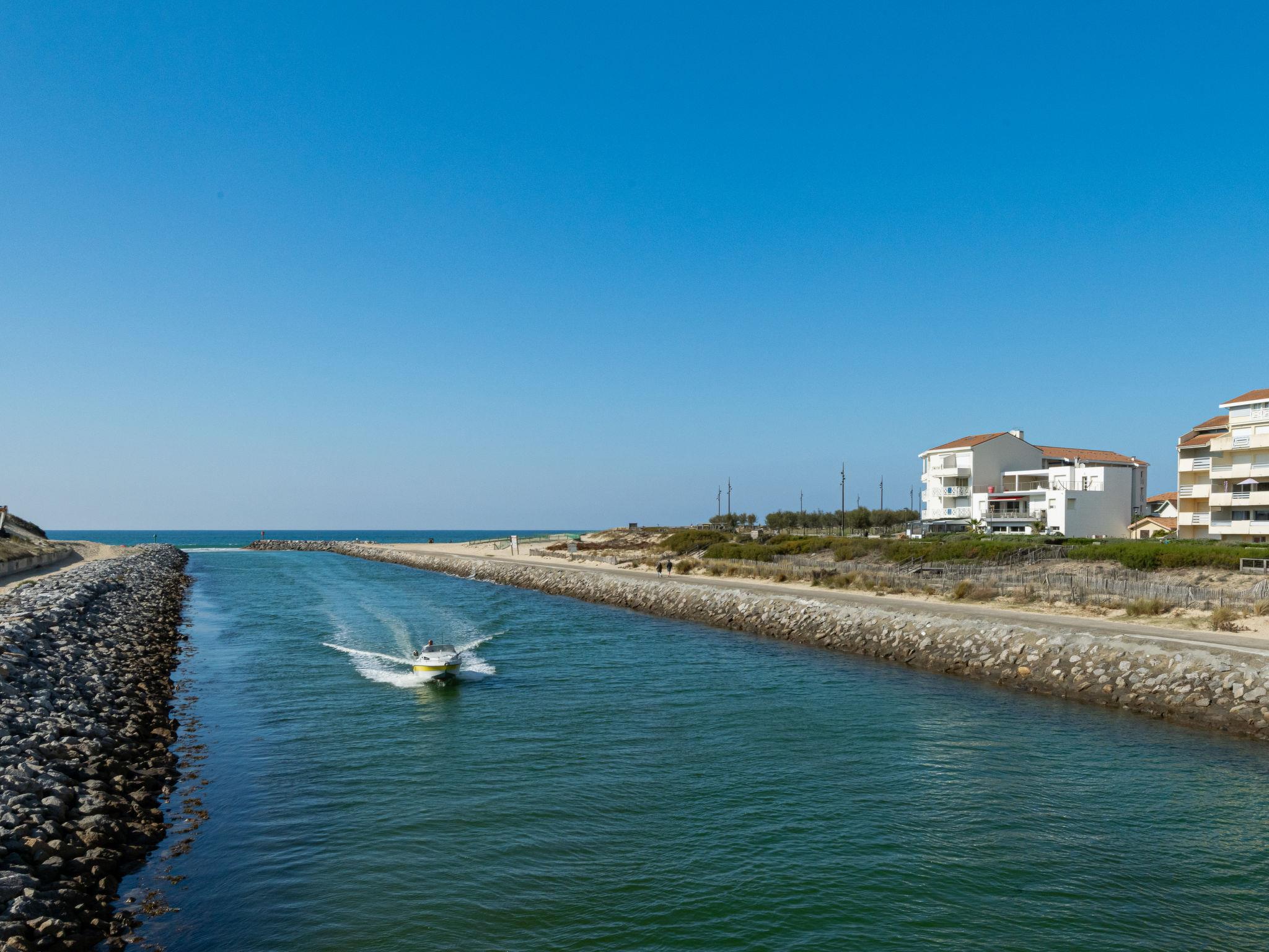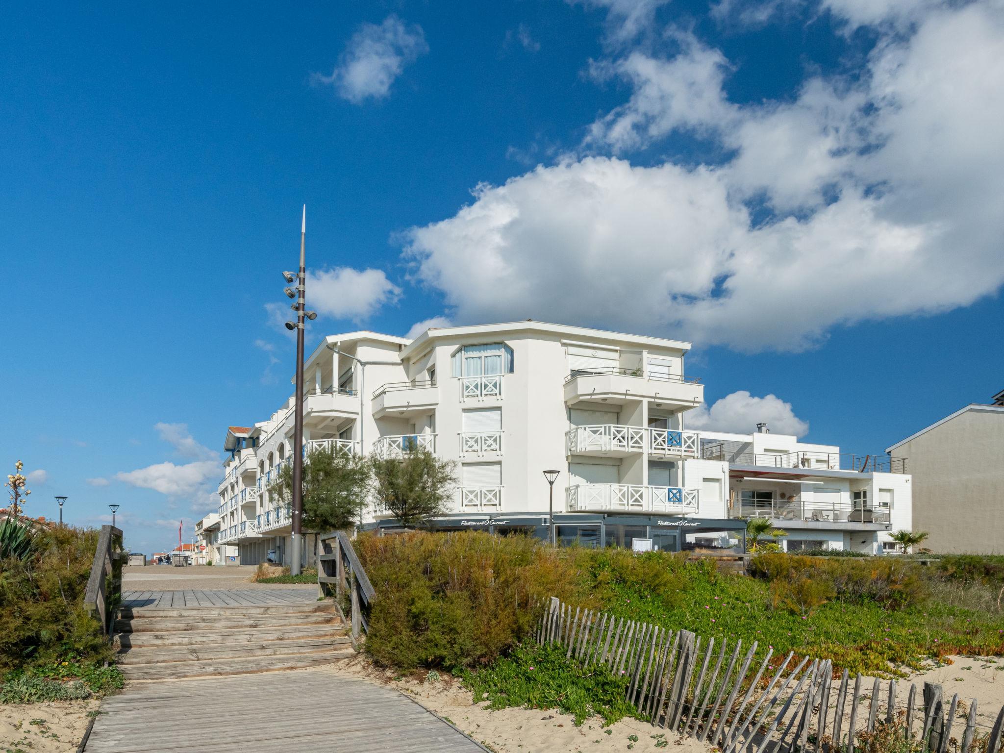 Mimizan-Plage: Residence "Grand Pavois", 3 storeys, built in 1987. In the resort 100 m from the centre of Mimizan Plage, in a central, busy position, 100 m from the sea, 10 km from the lake, 100 m from the beach, 30 m from the river. In the complex: lift. Shop 100 m, grocery 150 m, supermarket 600 m, restaurant 10 m, bar 100 m, bakery 150 m, bicycle rental 300 m, bus stop 450 m, railway station "Labouheyre" 30 km, sandy beach "la garluche" 150 m, park "Landes Aventure" 6 km, indoor swimming pool 6 km, bathing lake "Aureilhan" 10 km. Golf course (9 hole) 6 km, surf school 350 m, riding stable 10 km. Nearby attractions: Bordeaux 120 km, Arcachon 70 km, Biscarrosse 40 km, Centre Nautique 7 km, Casino Mimizan Plage. Hiking paths: Parc naturel régional des Landes 45 km.